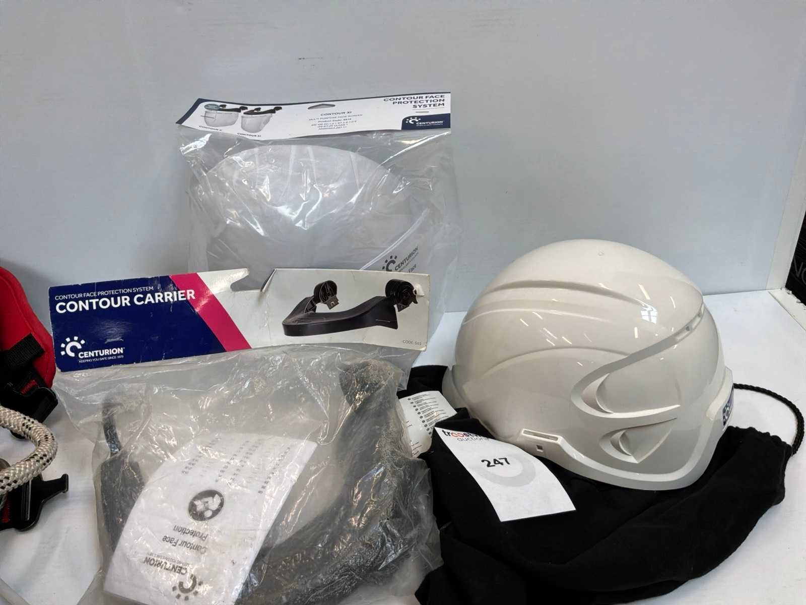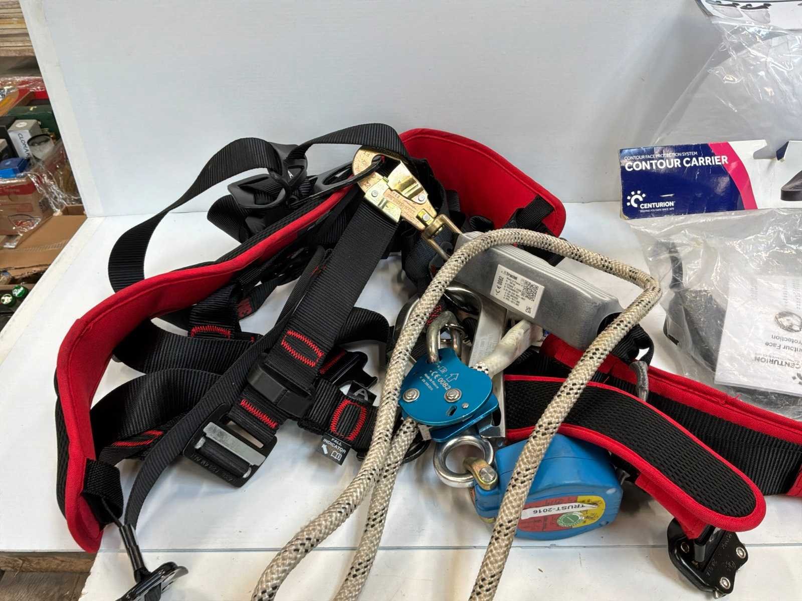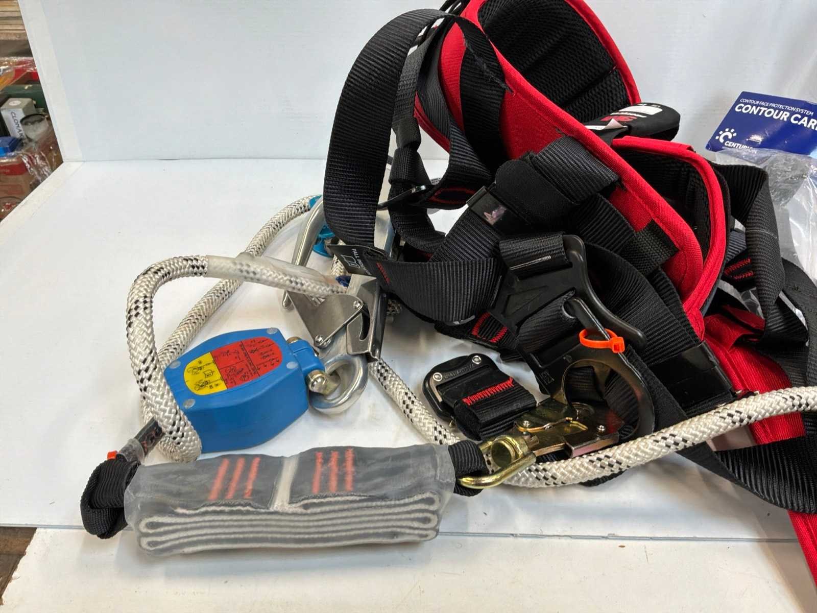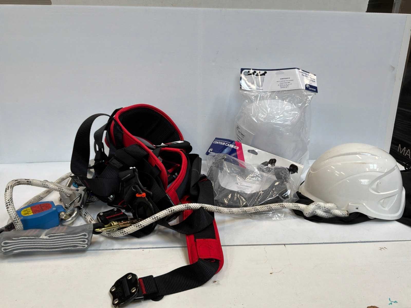 Waaronder onder andere 2x veiligheidshelm met gezichtscherm, 2x valharnas, 2x Tractel blocfor valstopapparaat, 2x leeflijn