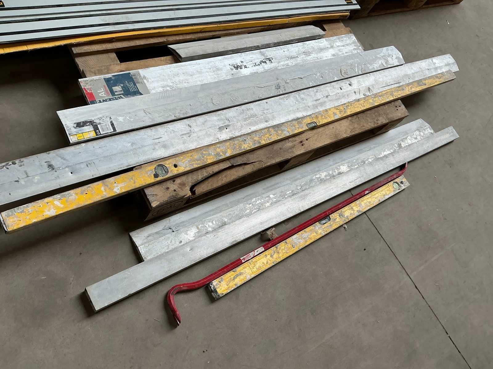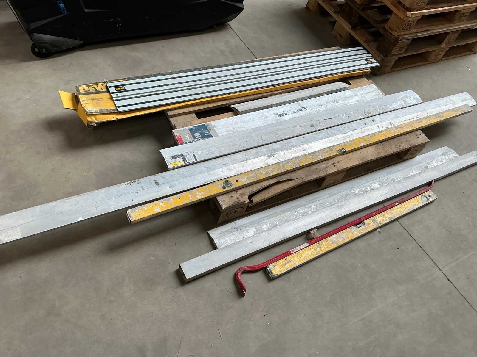 Zijnde waterpassen, koevoet, DeWalt geleiderail, diverse afrijlatten