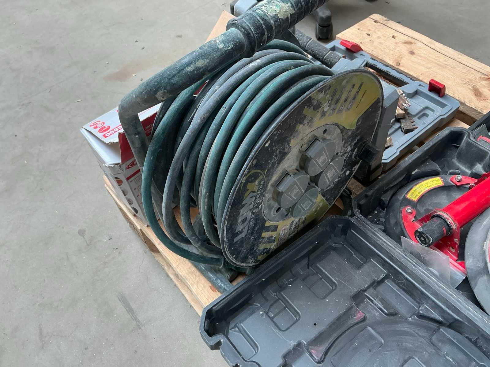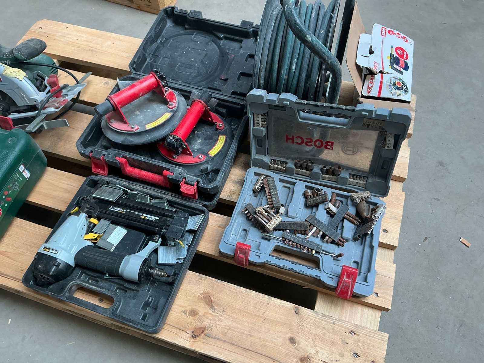 Zijnde verlengsnoer op haspel, Powerplus pneumatische tacker, 2 zuignappen, partij bits en gasbrander