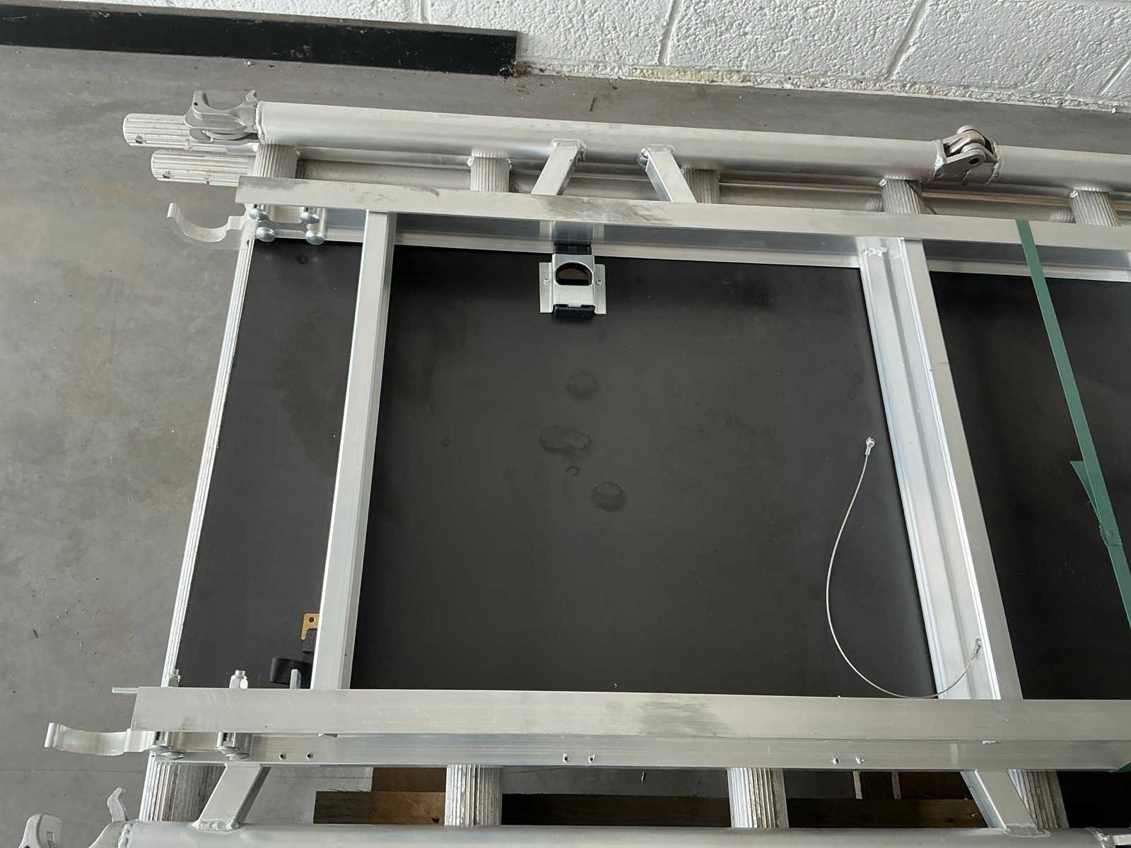 Plooisteiger afmeting 75x190cm. - Stahoogte: 1meter. - Werkhoogte: 3meter. - Plooiunit met vloer, luik en 4 wielen. - ongebruikt. - De eerste foto is louter ter illustratie. De werkelijke samenstelling en uitvoering van de kavels kunnen afwijken.