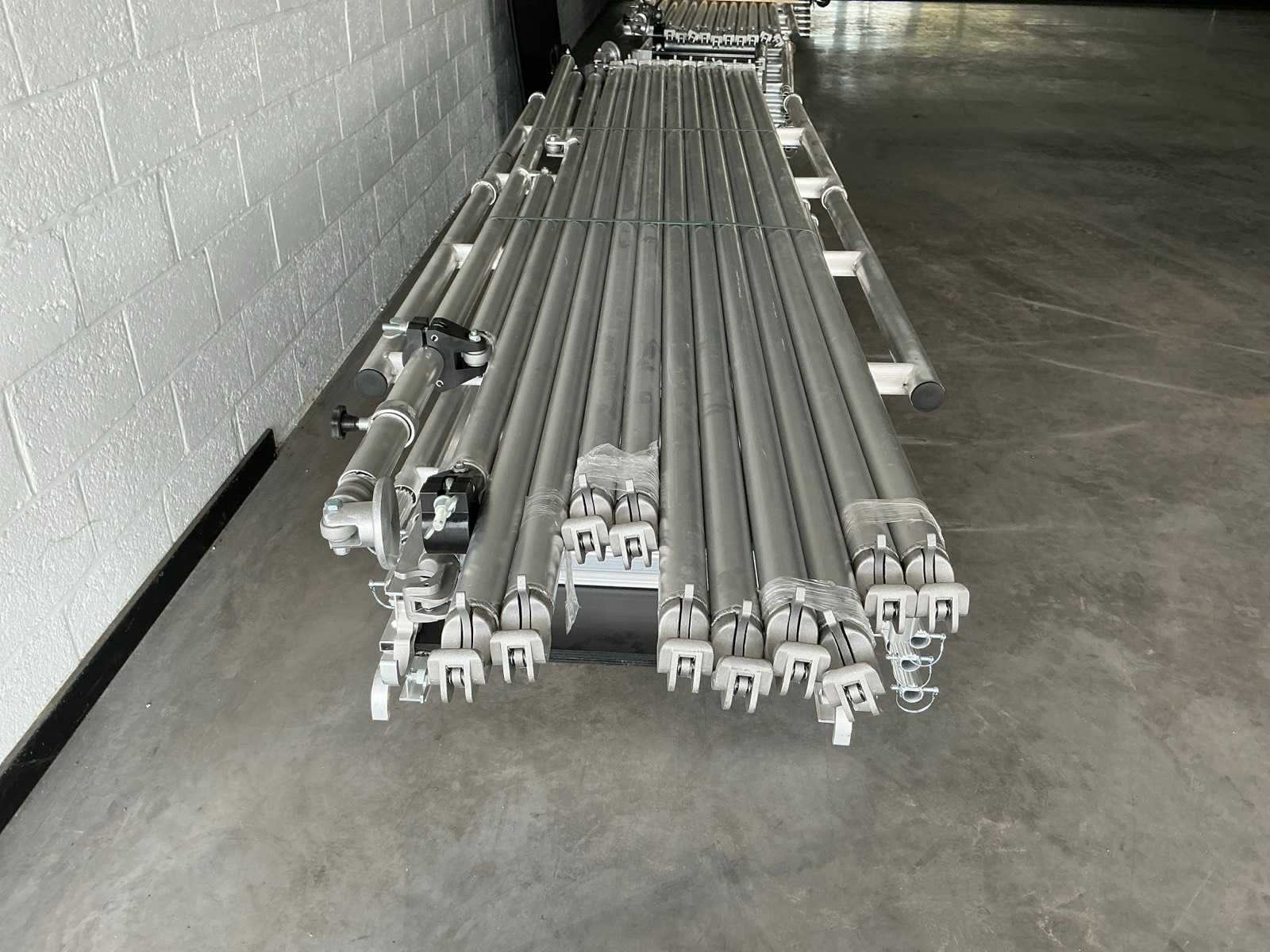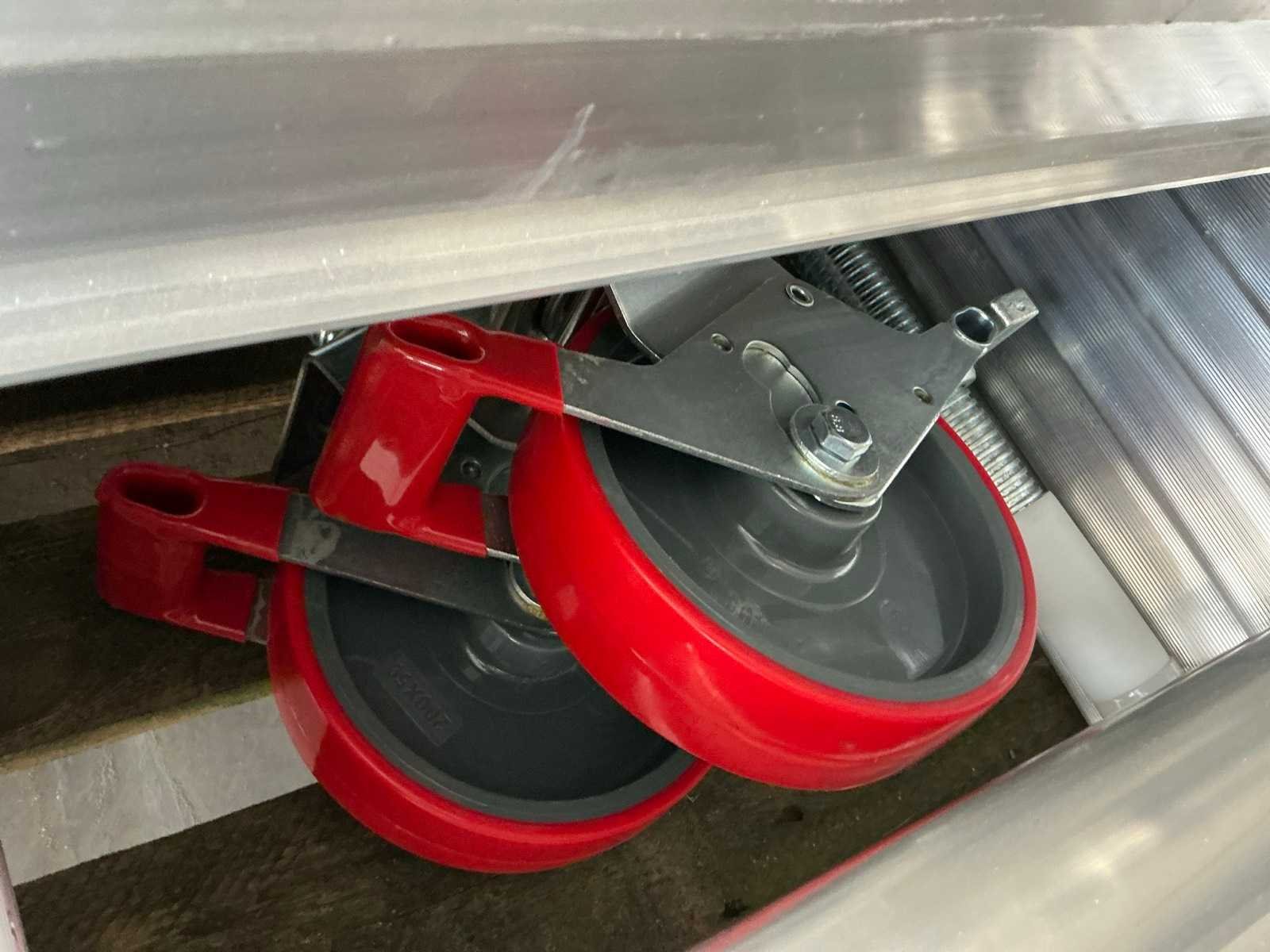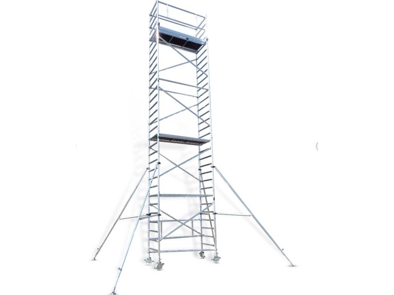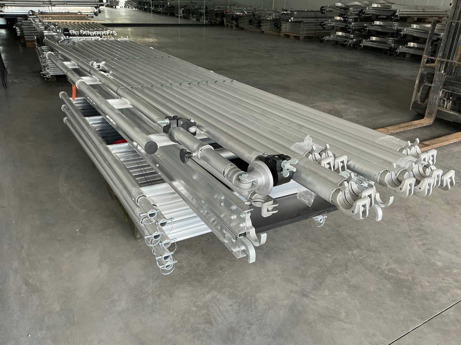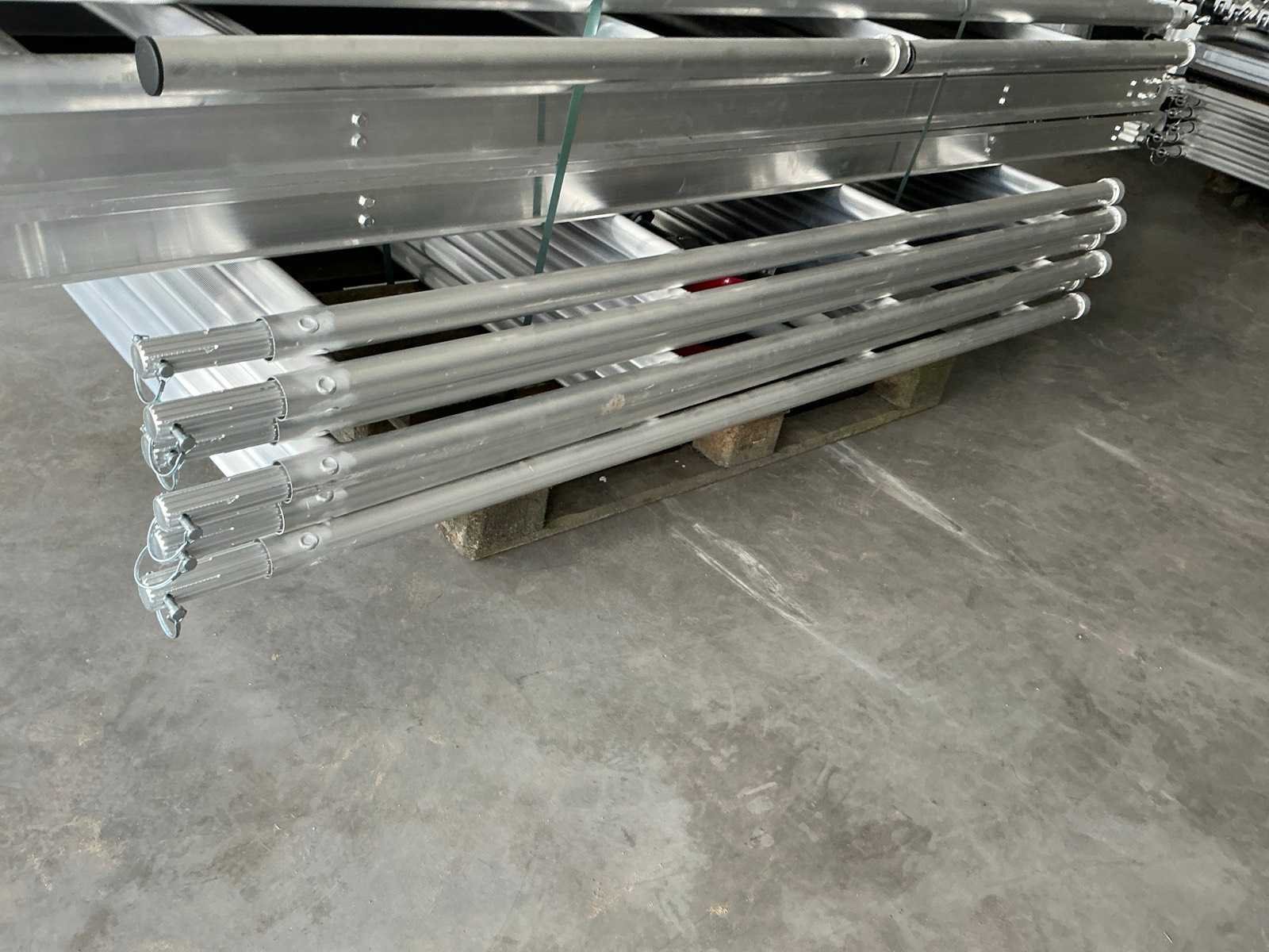 Afmeting 90 x 300cm. - Stahoogte: 6,25meter. - Werkhoogte: 8,25meter. Bestaande uit: - 6 elementen 90x 200cm. - 2 elementen 90x100cm. - 2 platform met luik. - 6 diagonaal 3meter. - 4 horizontaal 3meter. - 4 regelbare wielen dia 200 met rem. - 12 borgpennen. - 2 grote zijsteunen. - Ongebruikt. - De eerste foto is louter ter illustratie. De werkelijke samenstelling en uitvoering van de kavels kunnen afwijken.