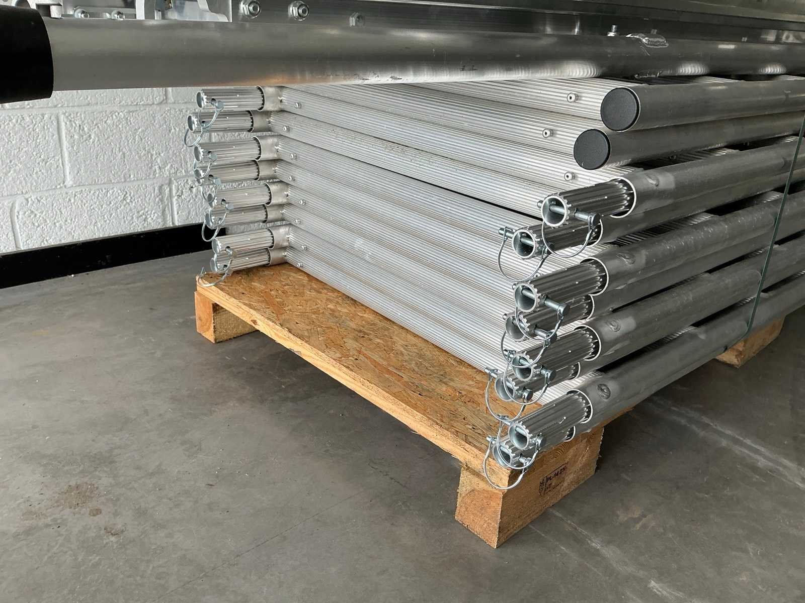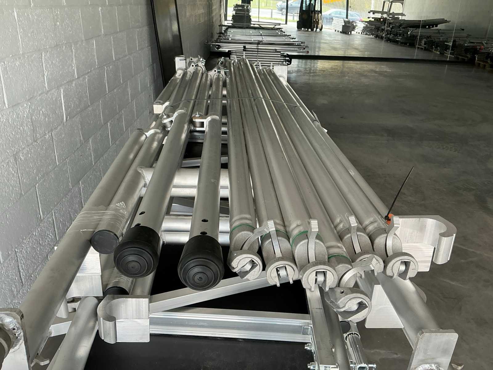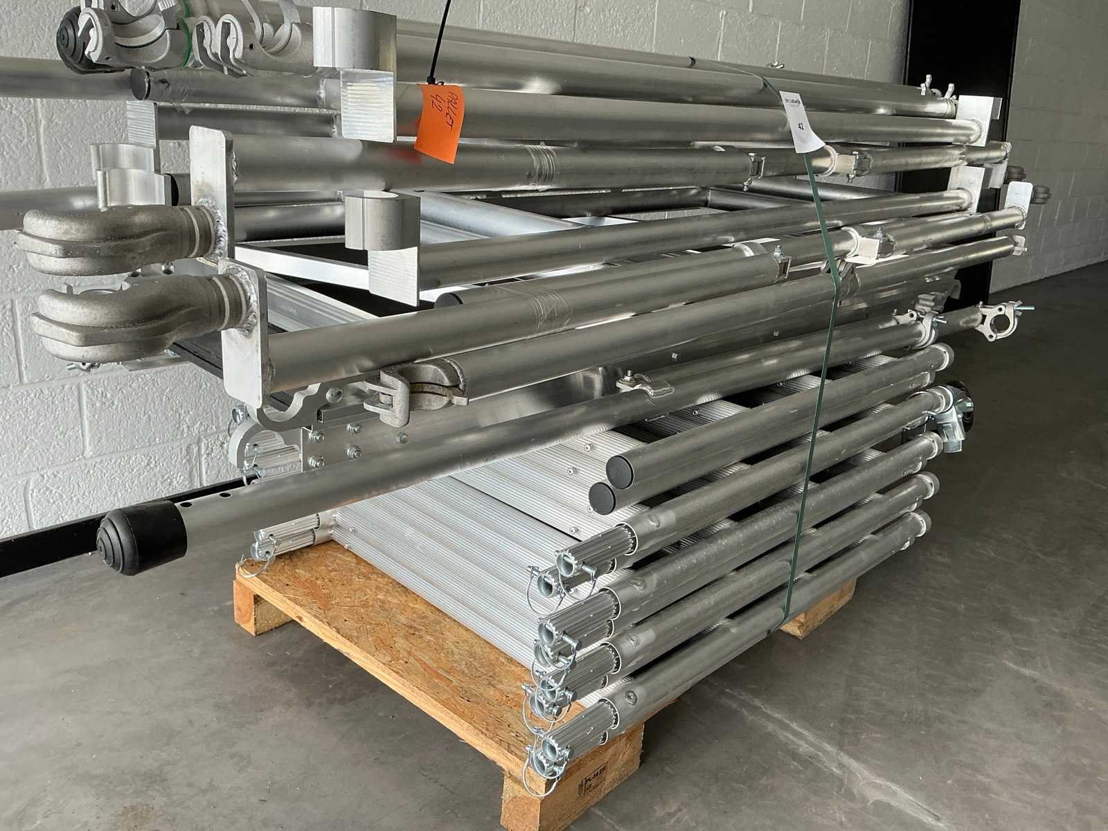 90x200cm. - Stahoogte: 4,25meter. - Werkhoogte: 6,25 werkhoogte. Bestaande uit: - 10 elementen 0,9 x 1m plooi. - 4 wielen dia 125mm. - 1 plooielement 2meter. - 4 voorloopleuning 2meter. - 4 diagonaal 2meter. - 2 borgpennen. - 2 horizontaal 2meter. - 4 zijsteunen. - ongebruikt. - De eerste foto is louter ter illustratie. De werkelijke samenstelling en uitvoering van de kavels kunnen afwijken.