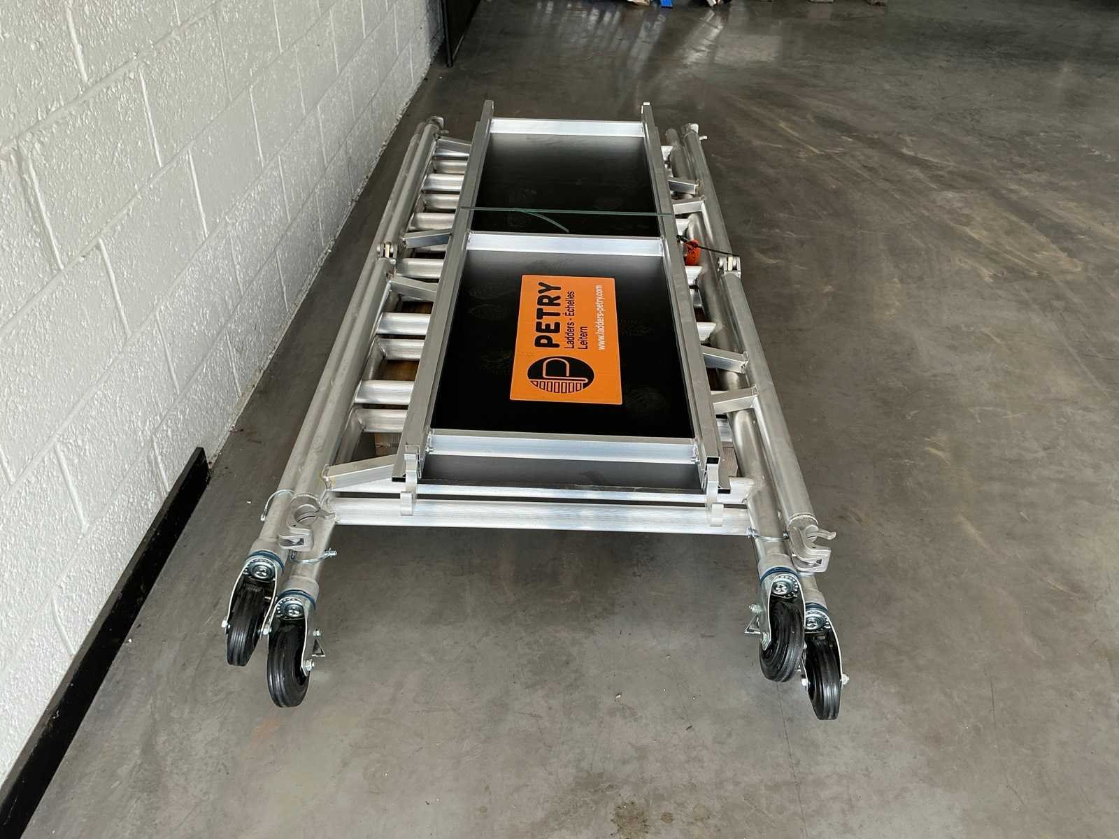 Plooisteiger afmeting 75 x 190 cm. - Stahoogte: 1meter. - Werkhoogte: 3meter. - plooiunit met vloer en 4 wielen. - Zonder luik. - Ongebruikt. - De eerste foto is louter ter illustratie. De werkelijke samenstelling en uitvoering van de kavels kunnen afwijken. Merk: Petry