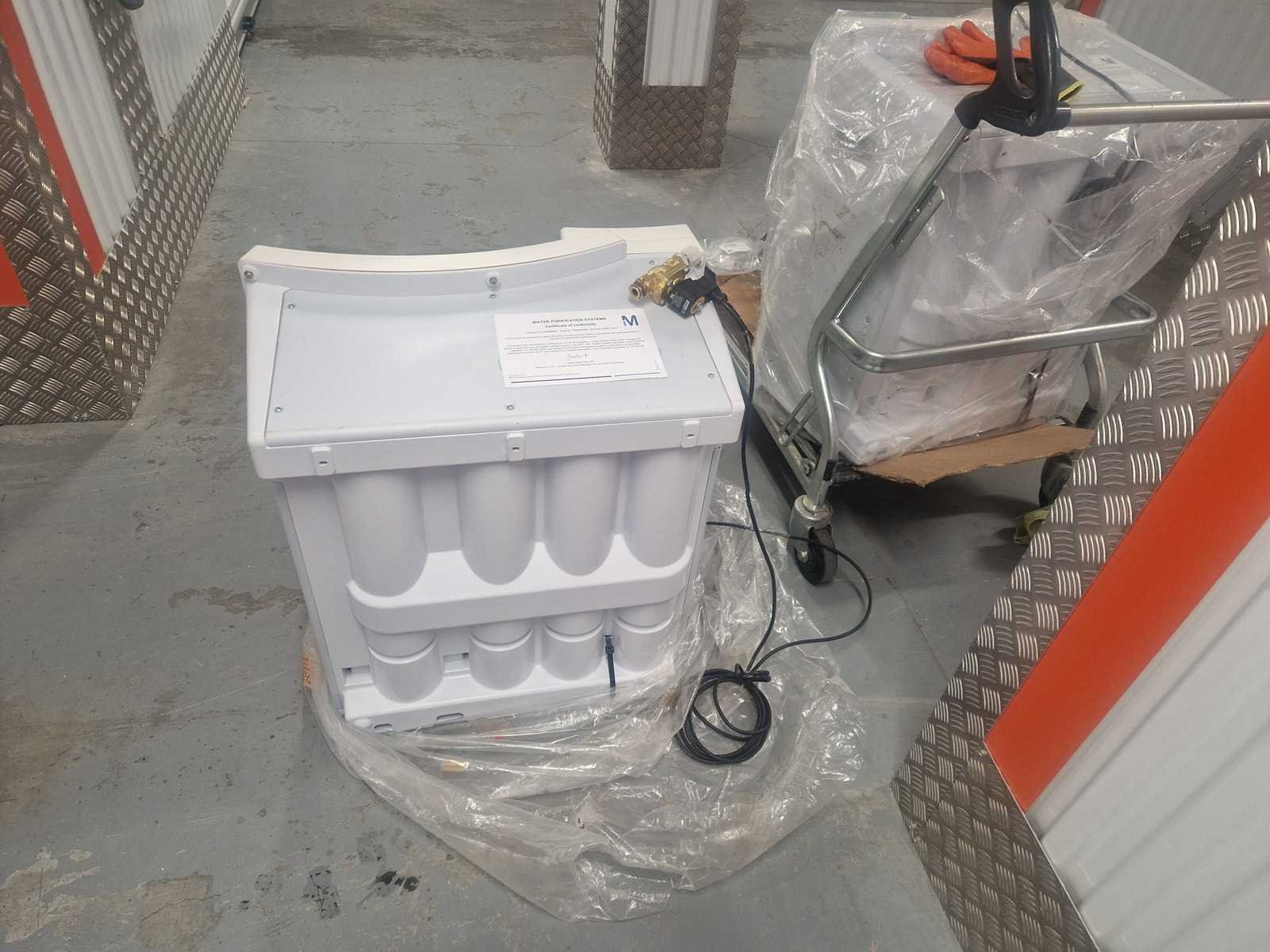 Purificateur d'eau à osmose inversée professionnel, nouveau, jamais servi, certificat de conformité. Millipore Rios 200: débit de 200 litres/heure numéro de série F7NA63324 B, F7N63324 C Merk: Merck Millipore Leveringsvoorwaarden: Per koerier