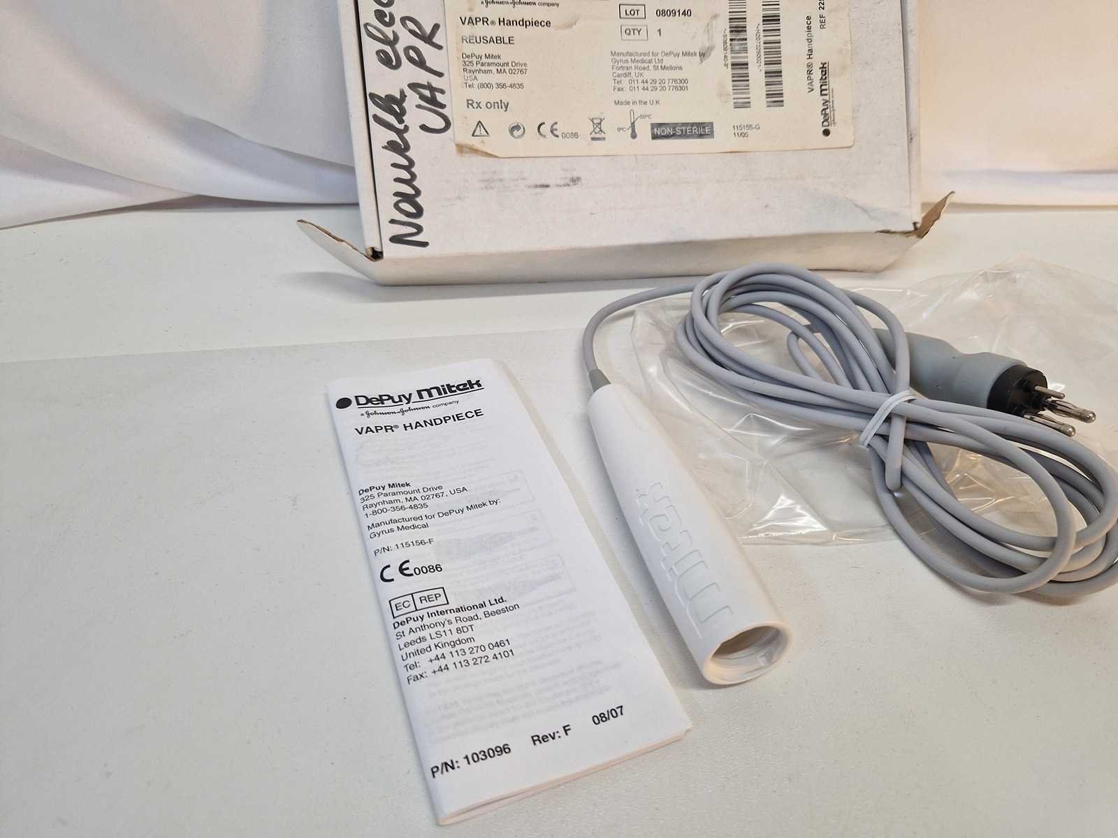 Pièce à main VAPR DePuy Mitek neuve (référence REF 225002). Il s'agit d'un dispositif médical réutilisable utilisé dans le cadre du système d'électrodes de radiofréquence VAPR Merk: Depuy Mitek Leveringsvoorwaarden: Per koerier