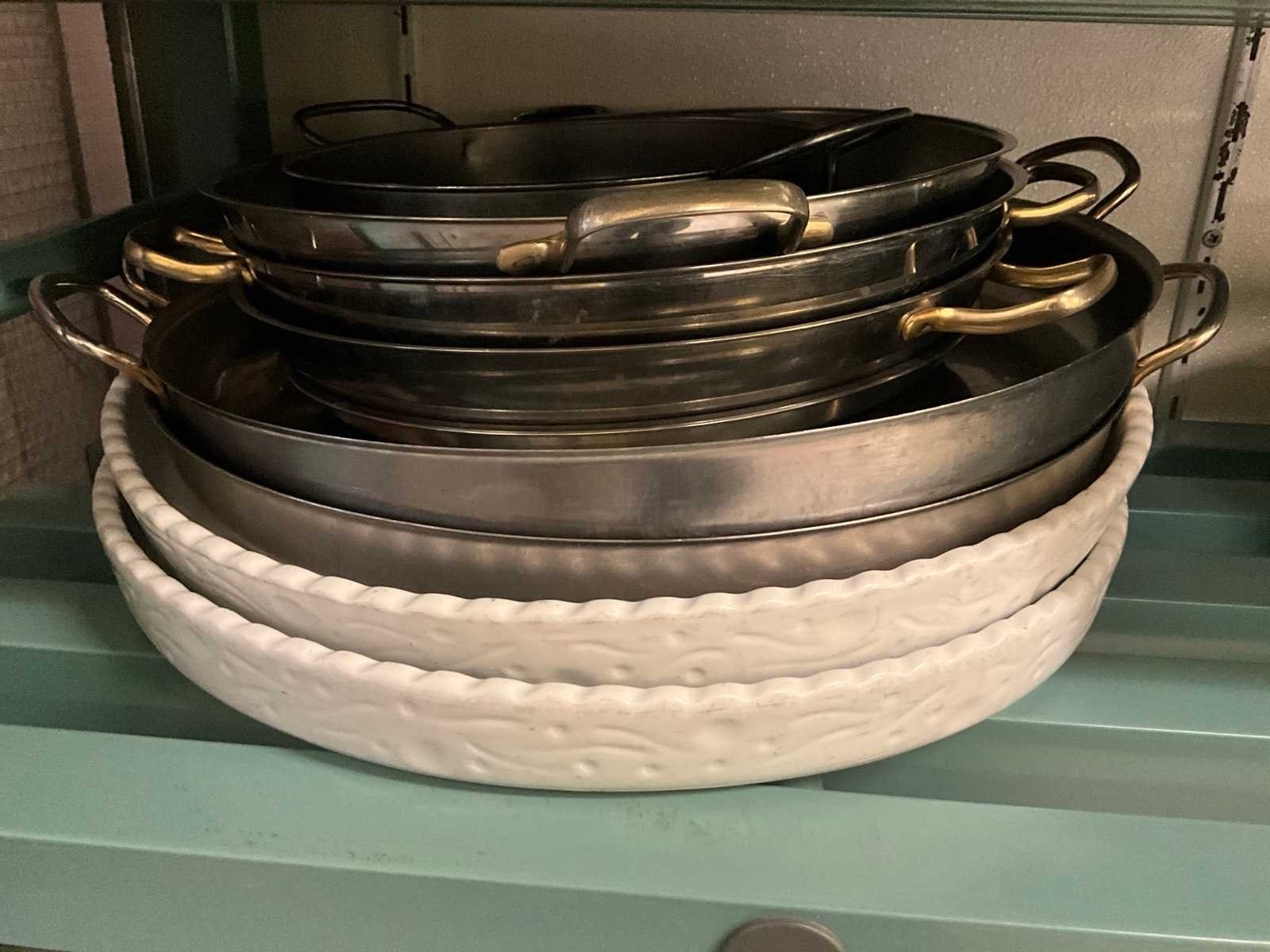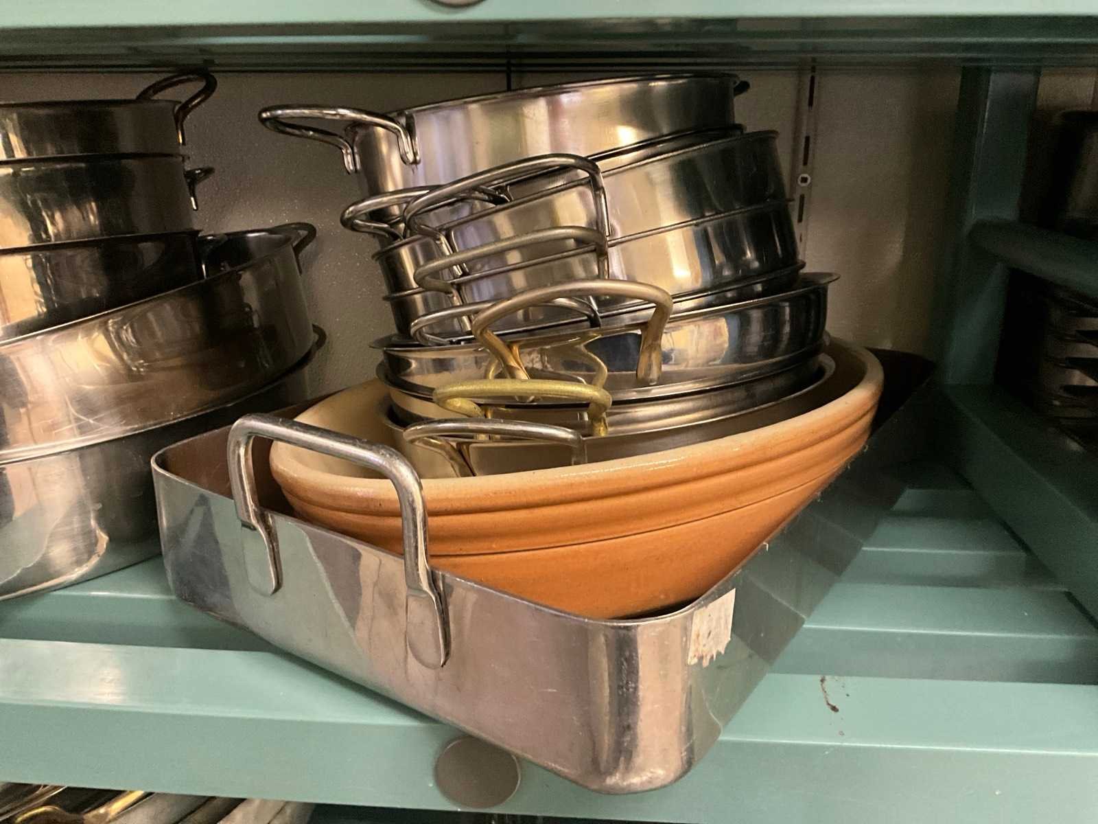 Diverse schalen kommen en kookpotten