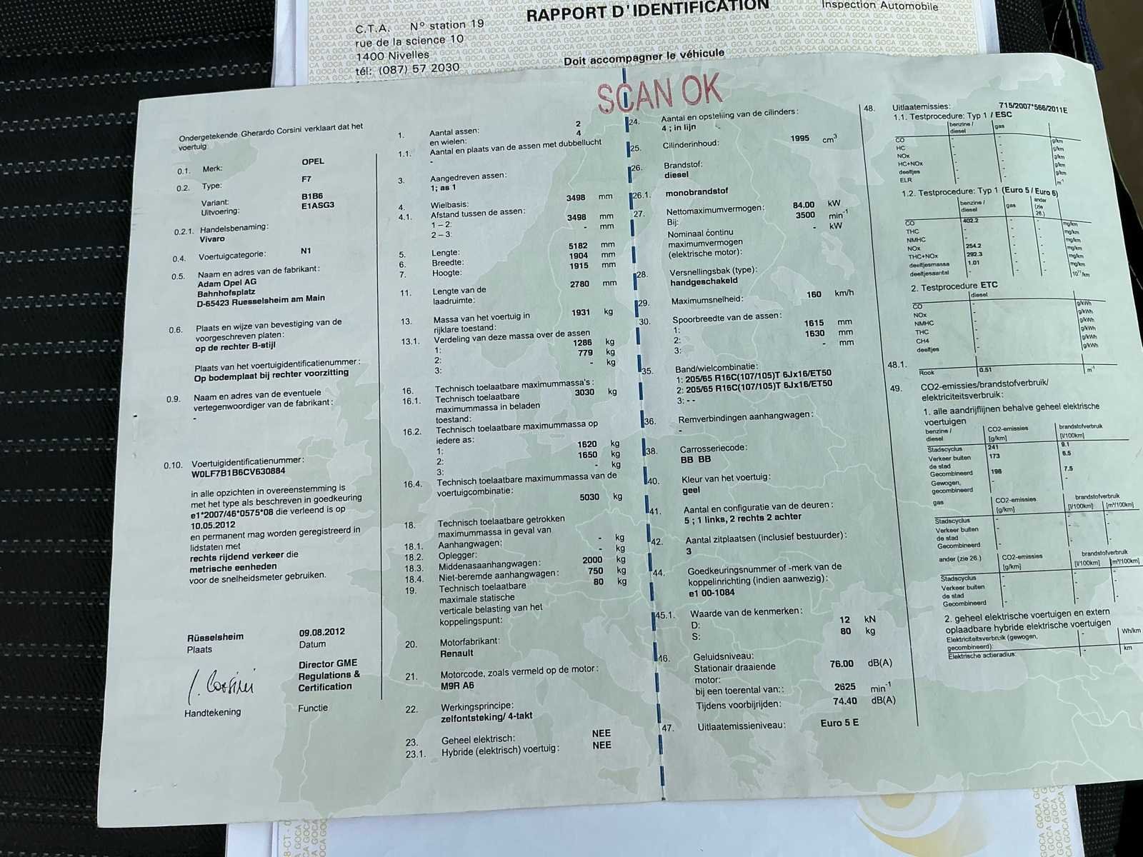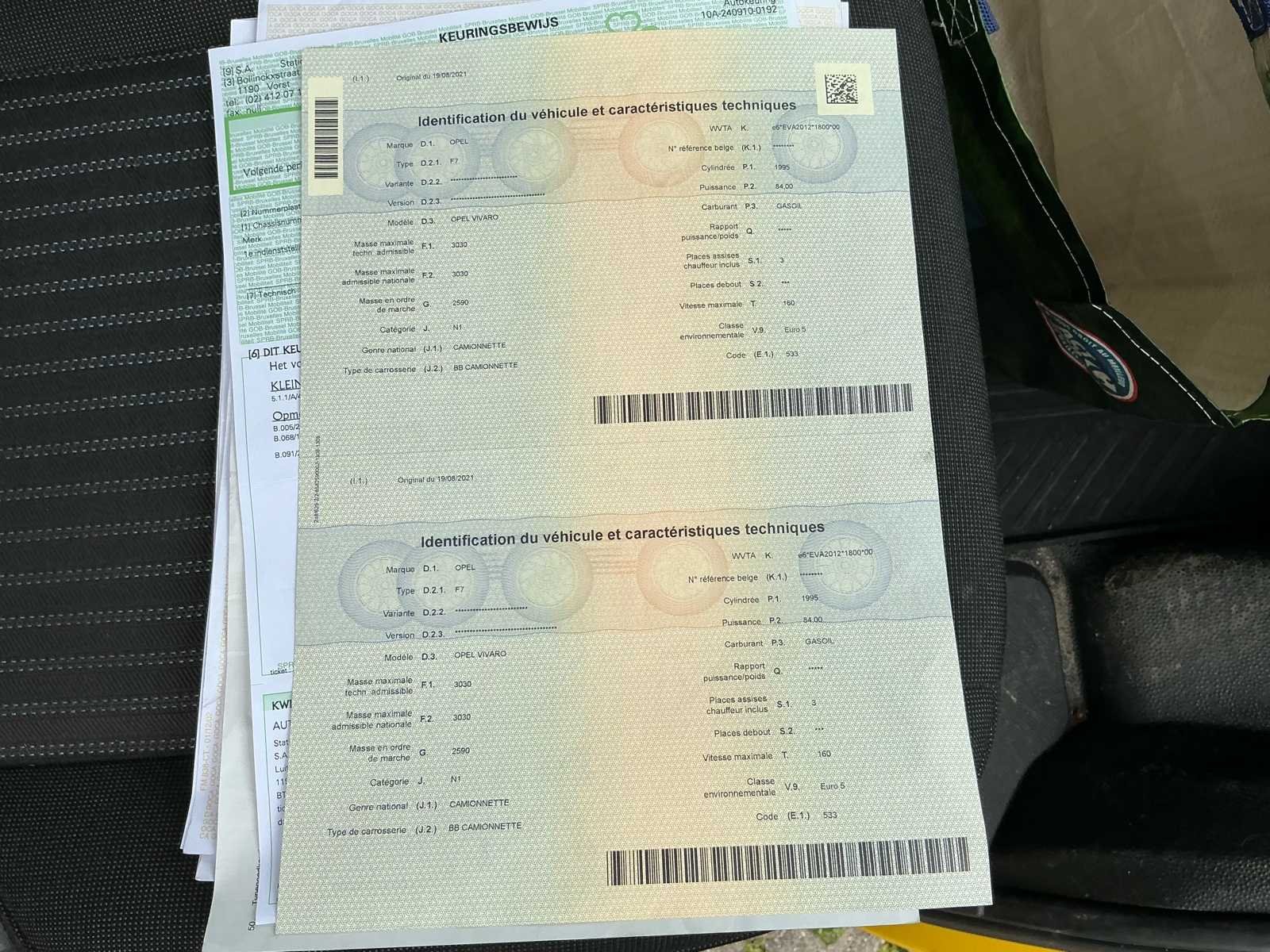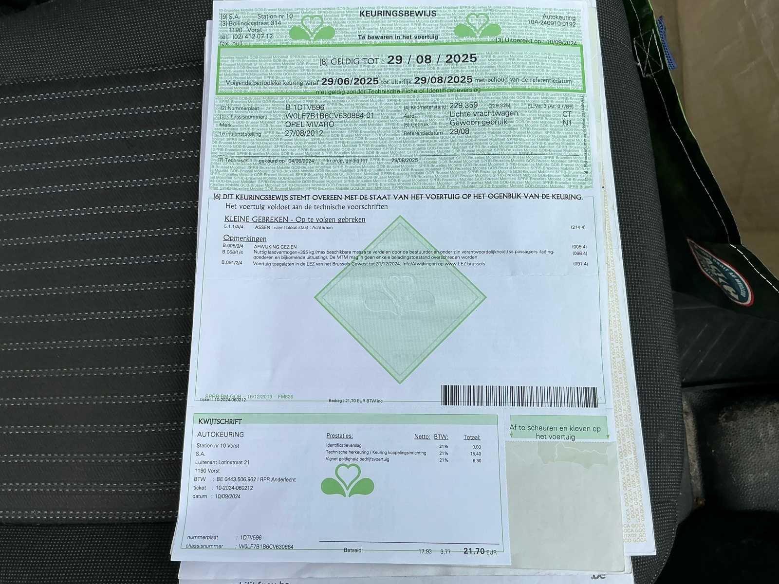 Correcte lichte vracht camionette met airco en veel mogelijkheden, bekijk foto’s, proper interieur gezien zijn leeftijden en goed onderhouden. Merk: Opel Type: Lichte vracht Model: Vivaro Bouwjaar: 2012 Chassisnummer: WOLF7B1B6CV630884(01) Cilinderinhoud: 1995cc Vermogen (kW): 84kW Brandstof: Diesel Datum eerste inschrijving: 27/08/2012 Datum eerste toelating: 27/08/2012 Aandrijving: Voorwielaandrijving Transmissie: Handgeschakeld Drive type: Front wheel Aantal zitplaatsen: 3 Kleur: Geel-blauw Nationaliteit documenten: België Accessoires - checkbox: Camera Stuurwiel: Links Aantal deuren: 4 Aantal sleutels: 3 Ledig gewicht: 1650kg Laadvermogen: 1200kg Vermogen (pk): 114 Aantal cilinders: 4 Boorddocumenten aanwezig?: true Onderhoudshistorie: Ok Startinformatie: Ok Maximaal trekgewicht ongeremd: 750 Maximaal trekgewicht geremd: 2000