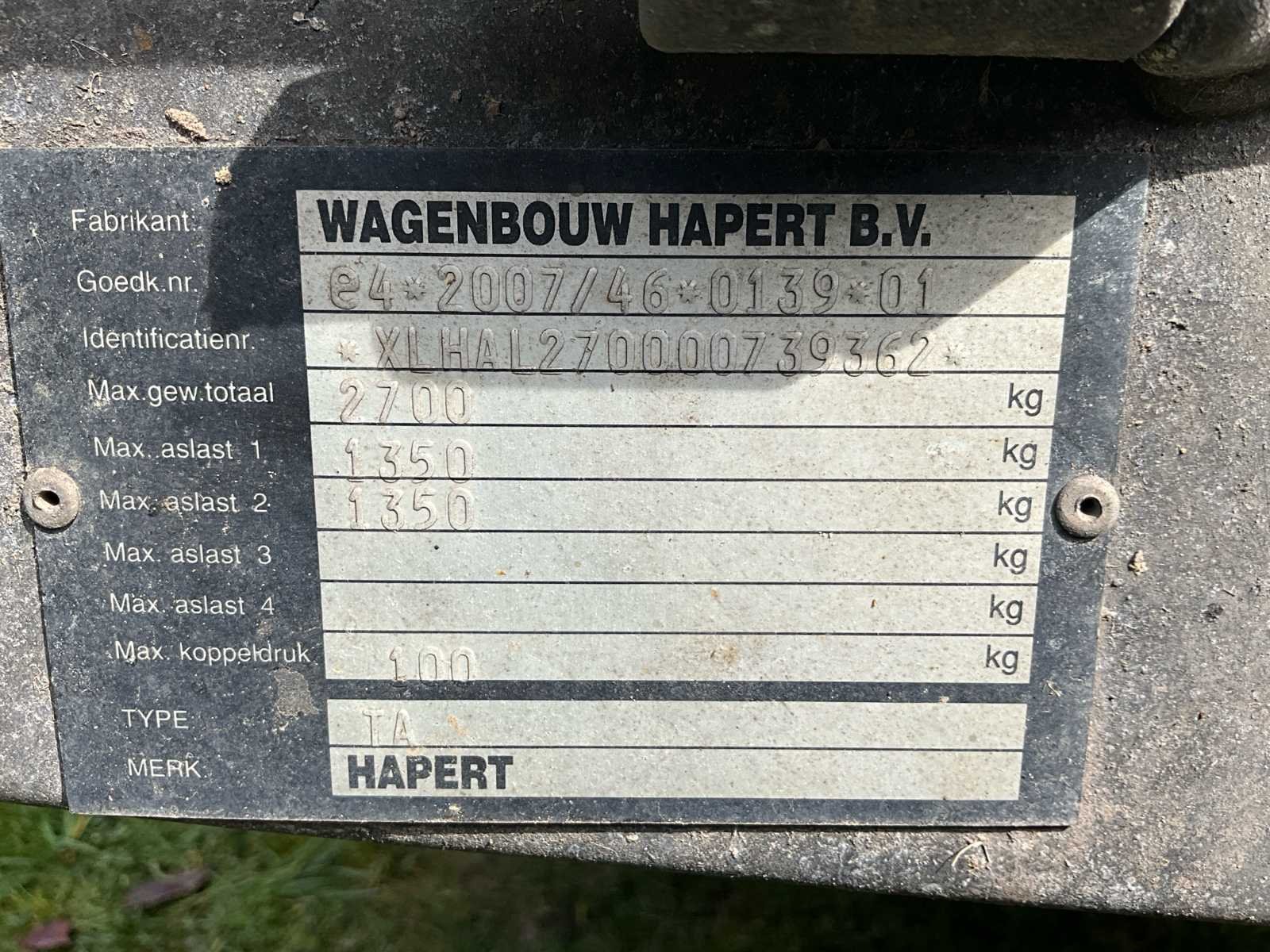 2012 hapert ta / al aanhangwagen mtm 2700kg