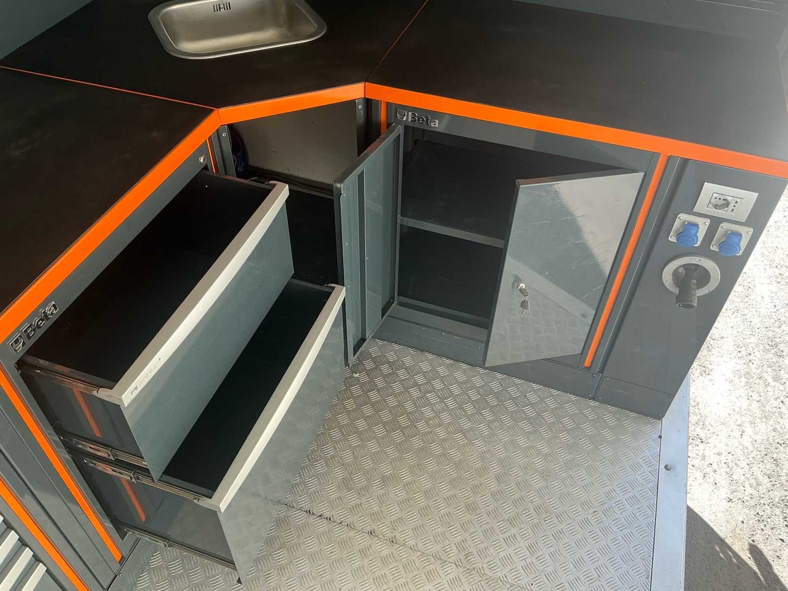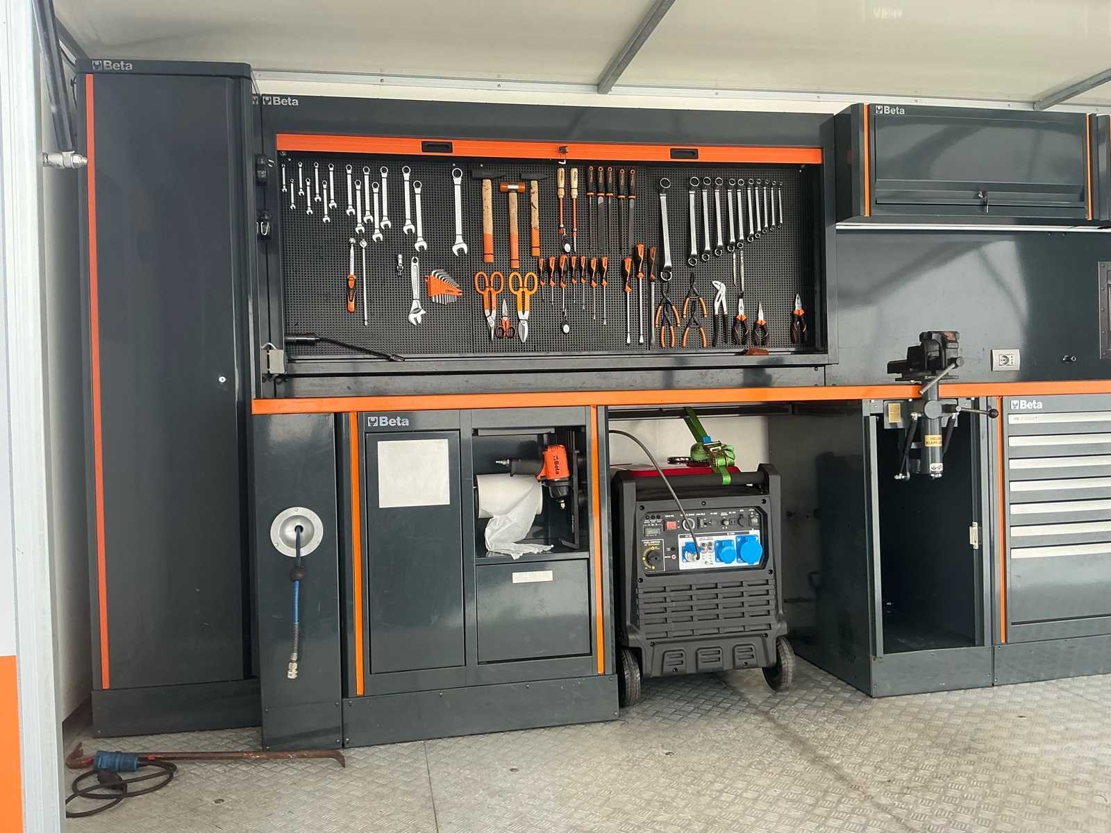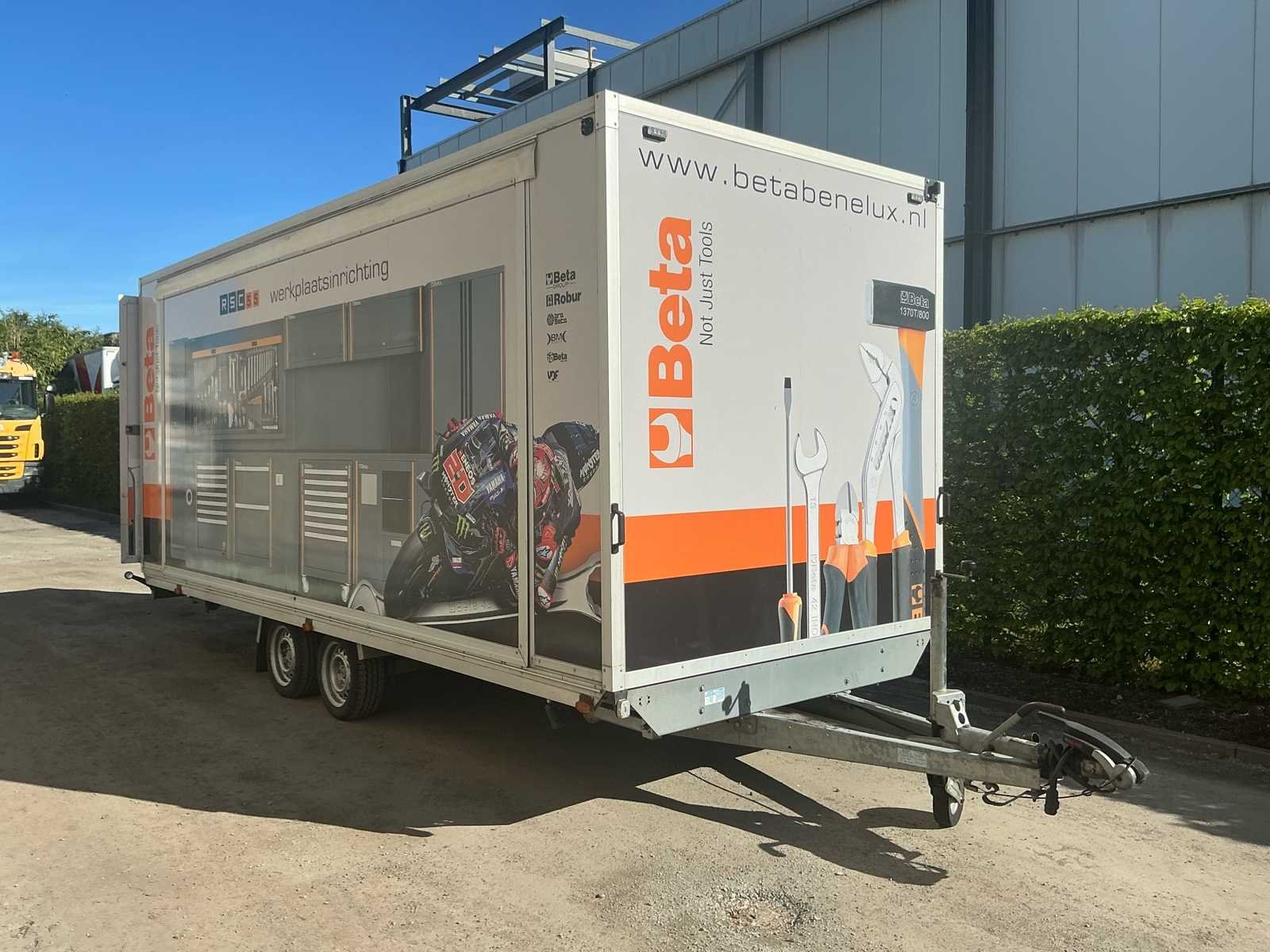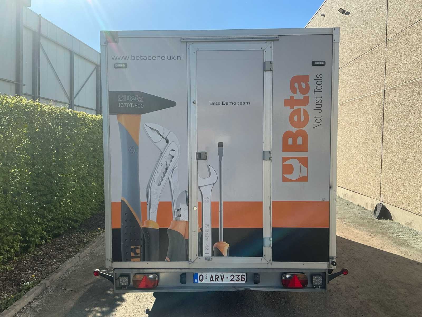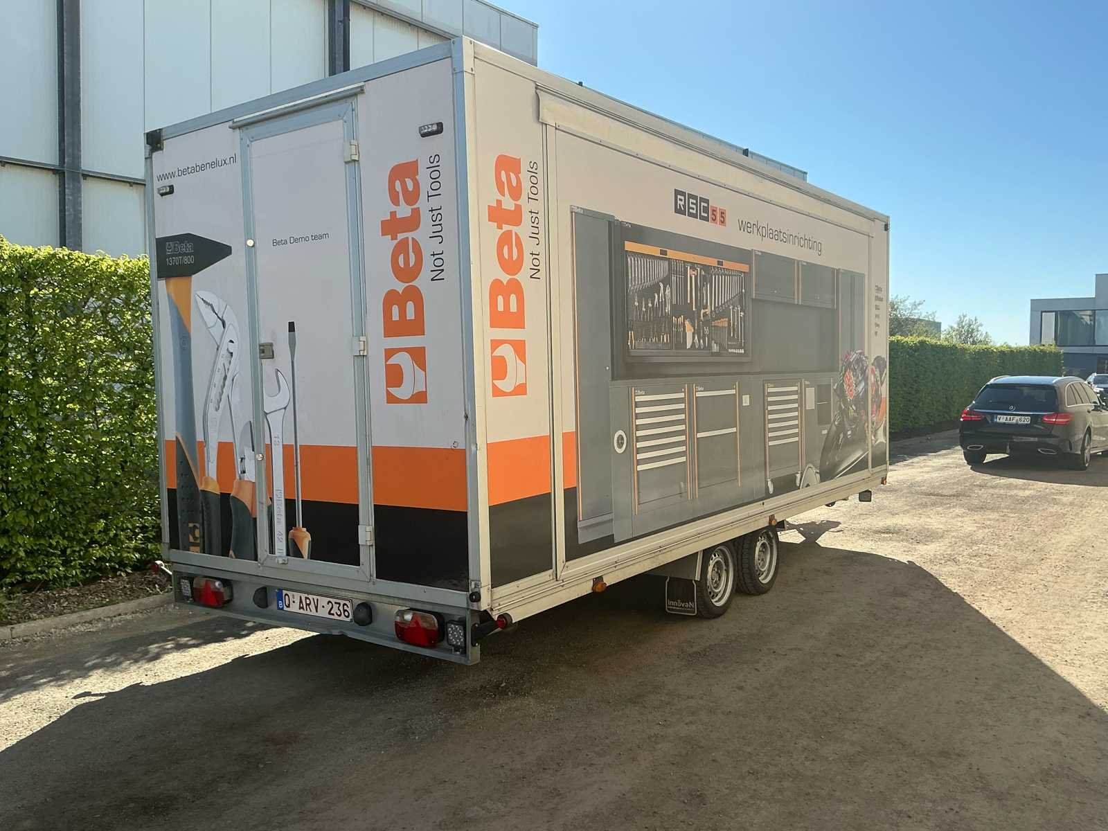 Zeer nette en professioneel ingerichte WM Meyer gesloten aanhangwagen, uitgevoerd als mobiele werkplaats. Dit betreft een ex-Beta demo voertuig, volledig uitgerust met hoogwaardige Beta werkplaatsinrichting en klaar voor onmiddellijk gebruik. De trailer verkeert in zeer goede technische en mechanische staat en is steeds correct onderhouden. Uitvoering / inrichting: Volledig ingerichte Beta werkplaats met werkbanken, opbergsystemen, ladenkasten en gereedschapswand. Voorzien van binnenverlichting, zijluik (opklapbaar) en achterdeur. Aansluitingen voor stroom aanwezig inclusief stroomaggregaat, luchtcompressor en omvormer. Volledig operationeel inzetbaar. Extra troeven: - Ex Beta demo trailer - 4 nieuwe banden met versterkt karkas - Technisch en mechanisch volledig in orde - Keuring geldig tot 19/02/2026 - Ideaal voor service, techniekers, motorsport of mobiele interventies Opmerkingen: <b> Gasveren van het zijluik worden vervangen voor verkoop waardoor de steunbalk niet meer nodig is. Verlichting voor montage aan het luik is aanwezig. Deze mobiele werkplaats is onmiddellijk inzetbaar en perfect voor professioneel gebruik. Merk: WM Meyer Bouwjaar: 2017 Chassisnummer: WWC263C30GW000001 Aantal assen: 2 Laadbak afmeting l: 550cm Laadbak afmeting b: 221cm Ledig gewicht: 2360kg Laadvermogen: 640kg Gesloten opbouw: true Datum eerste toelating: 15/12/2017 Kentekenpapieren compleet?: true Hoogte: 283cm Lengte: 710cm Breedte: 221cm Nationaliteit documenten: BE