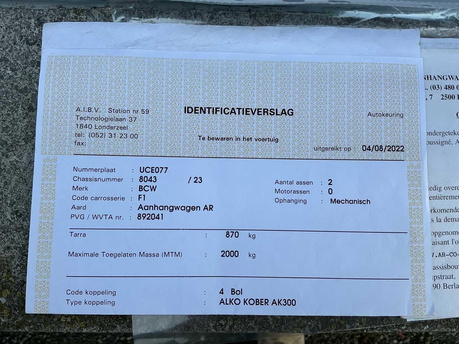 BCW paardentrailer uit 1996 in goede staat met goede vloer. Merk: BCW Chassisnummer: 8043 Gewicht: 870kg Nationaliteit documenten: België Bouwjaar: 1996