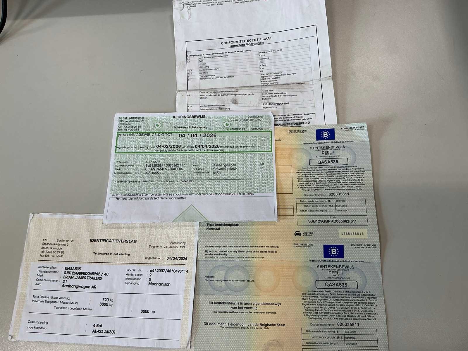 Merk: Brian James Trailers Type: P-DRAW-3400 Bouwjaar: 2024 Chassisnummer: SJB125GBPRD065962 Aantal assen: 2 Laadbak afmeting l: 450cm Laadbak afmeting b: 200cm Ledig gewicht: 720kg Datum eerste toelating: 03/04/2024 Nationaliteit documenten: Belgisch