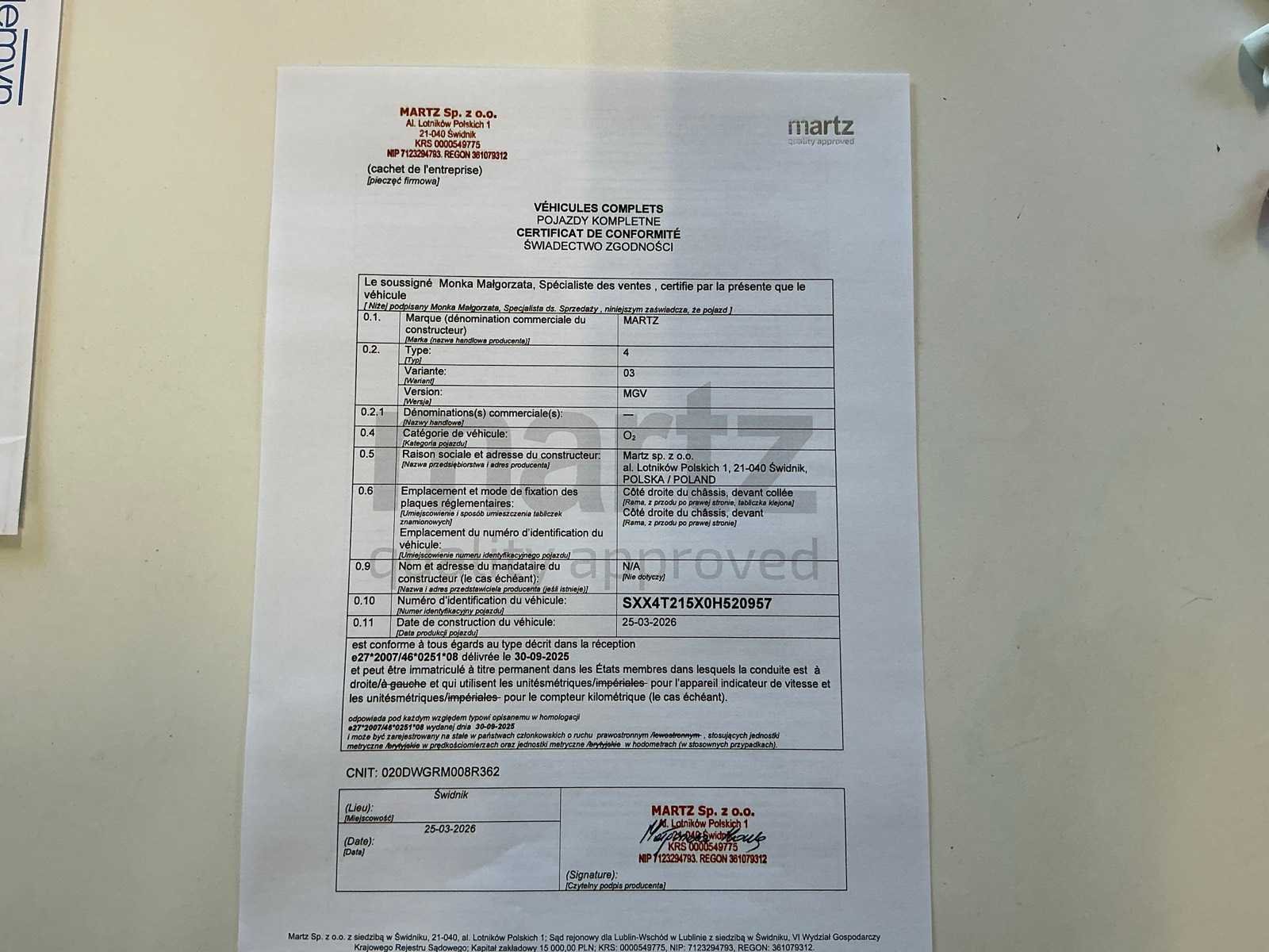 Merk: Martz Bouwjaar: 2026 Chassisnummer: SXX4T215X0H520957 Aantal assen: 2 Laadbak afmeting l: 440cm Laadbak afmeting b: 199cm