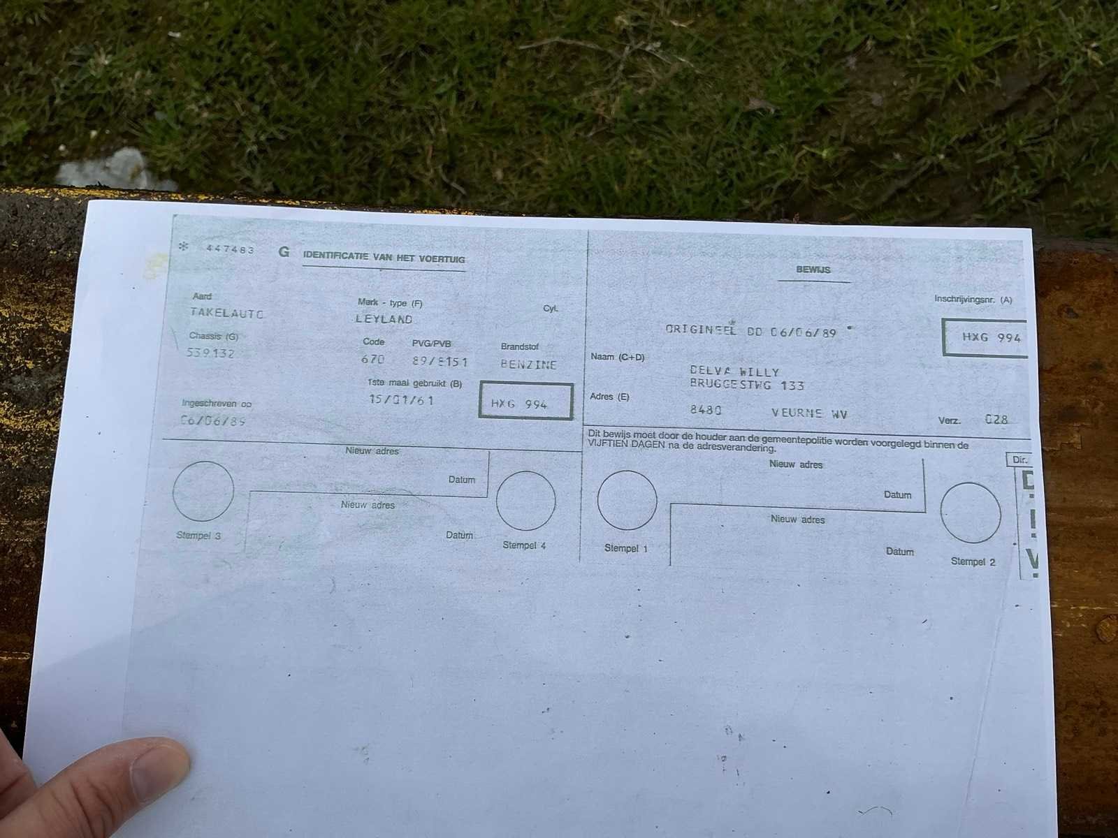 Originele inschrijvingsbewijzen voorlopig nog niet gevonden Merk: Leyland Marsian Bouwjaar: 1961 Chassisnummer: 539132 Cilinderinhoud: 10000cc Brandstof: benzine