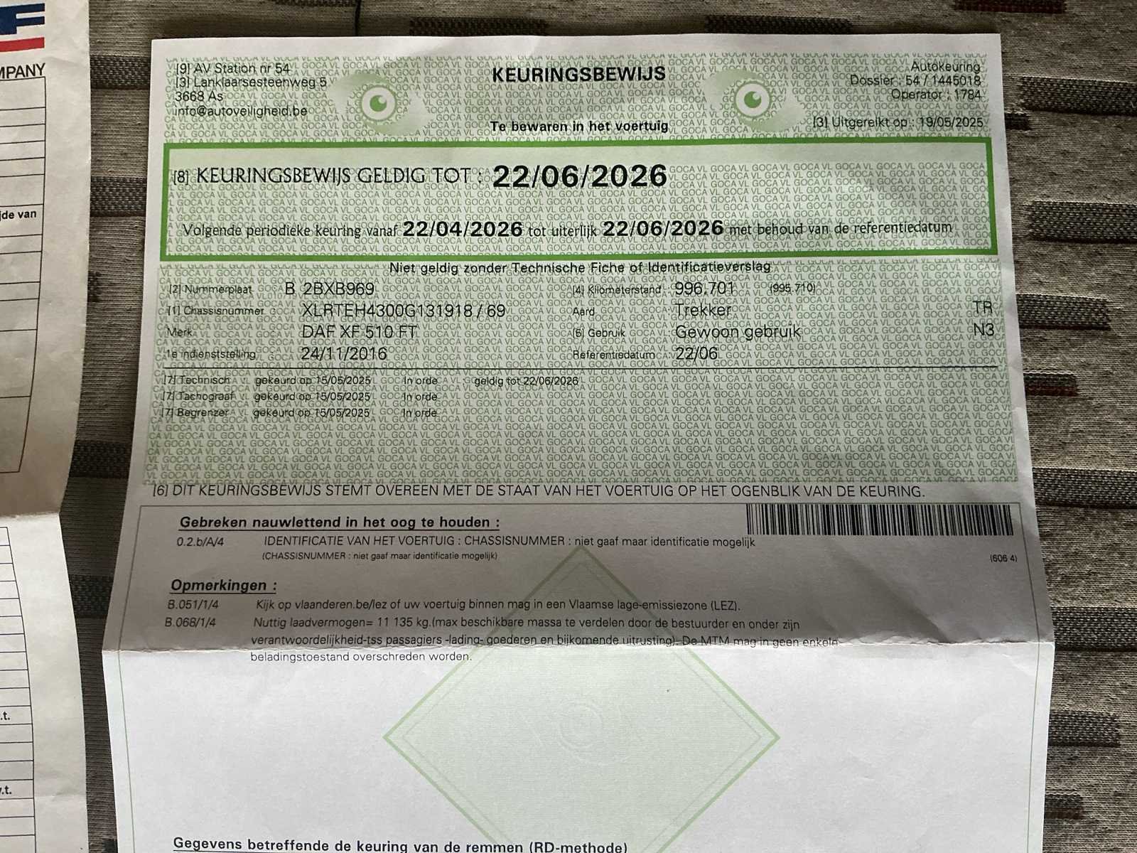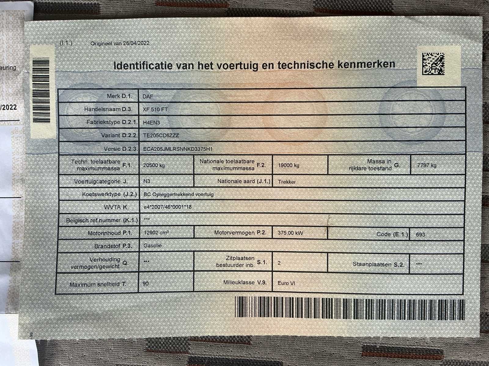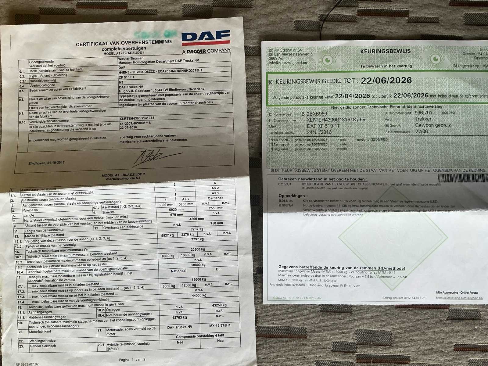 DAF XF 510 FT – 2016 – Euro 6 – Trekker in werkende staat Te koop via veiling: deze krachtige en betrouwbare DAF XF 510 FT trekker uit 2016. Een gekende topper binnen het zware transportsegment, uitgerust met een sterke PACCAR-motor en ontworpen voor lange afstanden en intensief gebruik. Ideaal voor transporteurs, handelaars of export. Merk: DAF Type: XF 510 FT Chassisnummer VIN: ECA205JMLRSNNKD3375H1 Cilinderinhoud: 12902cc Kilometerstand bij opname: 1040326km Datum eerste toelating: 24/11/2016 Type transmissie: Automatisch Fuel Type: Diesel Emissieklasse: Euro 5 Slaapcabine: true Navigatie: true Nationaliteit documenten: Belgisch Aantal zitplaatsen: 2 Zelf rijdend exporteren: Mogelijk Automaat: true Diesel: true