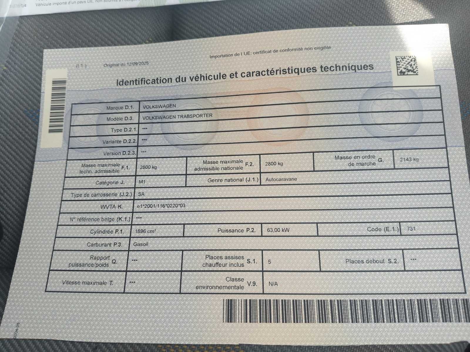 Elektrische ramen Afstandsbediening centrale vergrendeling Stuurbekrachtiging Origineel opvouwbaar dak 2 sleutels; Volledige artikelen 4 plaatsen plus 1 goedgekeurd in een camper, dus geen wegbelasting Verkoopvoorwaarden: Deze auto is een tweedehands voertuig dat zonder garantie of mogelijkheid tot claim wordt geleverd. Door leeftijd en kilometerstand kunnen er sporen van gebruik of (technische) defecten aanwezig zijn. De verkoper aanvaardt geen verantwoordelijkheid voor gebreken, fouten of afwijkingen. • De koper accepteert het voertuig in de staat waarin het zich op dat moment bevindt. Na aankoop is geen intrekking, compensatie of reparatie mogelijk, ongeacht de aard van de defecten die na levering aan het licht komen. Er is een toilet, een gasfornuis, 1 bed 160/200 cm Merk: Volkswagen Model: Transporter Chassisnummer: WV2ZZZ7HZ4X026205 Aantal zitplaatsen: 4 Aantal sleutels: 2 Transmissie: Handboek Datum eerste toelating: 28/01/2004 Bouwjaar: 2004 Afgelezen kilometerstand: 304168km Vermogen (kW): 63kW Cilinderinhoud: 1896cc Brandstof: Diesel Kleur: WIT Carrosserie: Motorhuis