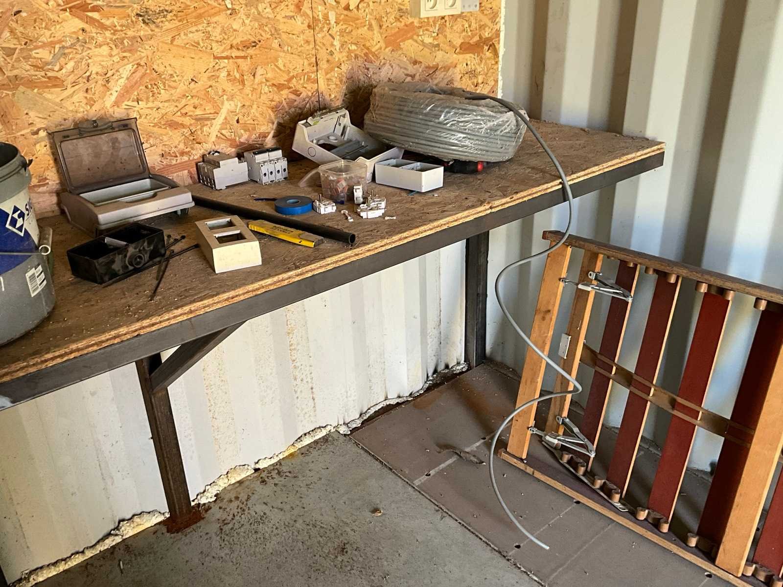 Voorzien van elektra, werkbank Totale afmeting L: 2400mm Totale afmeting Breedte: 4800mm Totale afmeting Hoogte: 2550mm