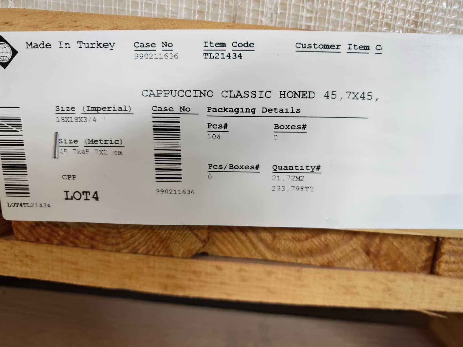 Merk: Natuursteen Kleur: Creme Afwerking: Gezoet Lengte: 457mm Breedte: 457mm Dikte: 20mm Materiaal: Marmer Type: Vloertegel Model: Cappuccino Classic Totaal oppervlakte: 21.72m² Totaal gewicht: 900kg