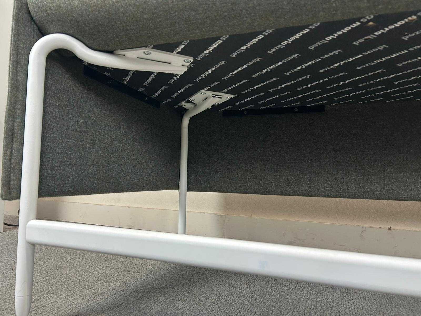 Modulaire hoekbank / zithoek, uitgevoerd in grijze stoffering met wit metalen onderstel. Strak en tijdloos ontwerp, geschikt voor ontvangst-, wacht- of kantoorruimte. Bestaat uit meerdere vaste zitmodules in L-opstelling. Gebruikte staat met lichte gebruikssporen. zithoogte 60 cm Merk: Materia Type: zithoek Kleur: muisgrijs Gewicht: 120kg Lengte: 280cm Breedte: 255cm Hoogte: 105cm