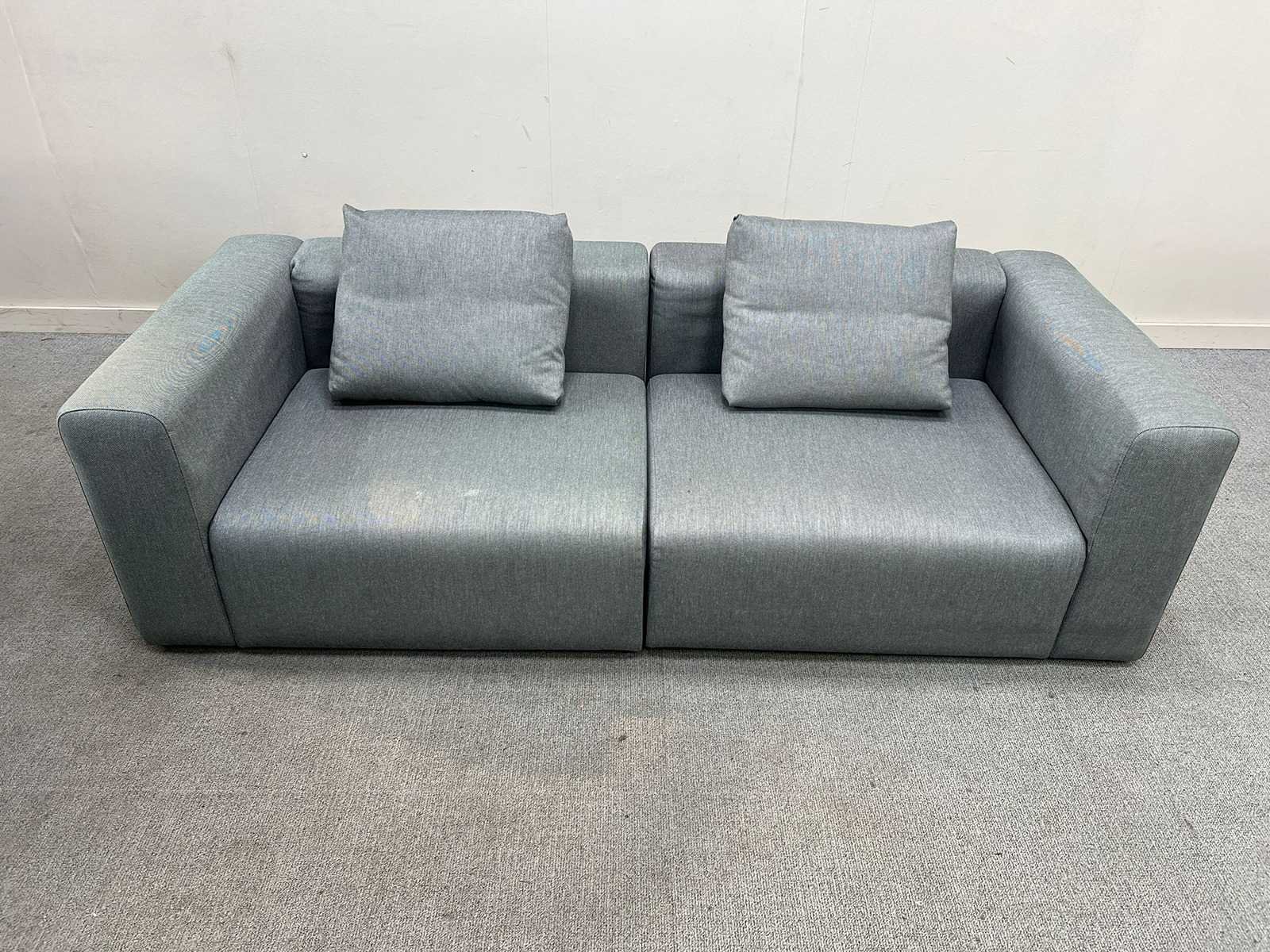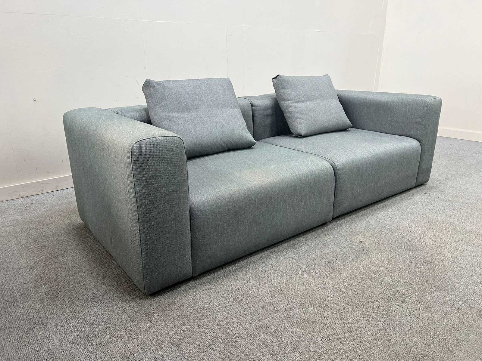 Strakke en comfortabele design 2-zitsbank van HAY, model Mags, uitgevoerd in een tijdloze grijze stof. De Mags-serie staat bekend om zijn minimalistisch Scandinavisch design, diepe zit en hoog zitcomfort. De bank bestaat uit modulaire zitdelen met brede armleuningen en wordt geleverd met 2 bijpassende rugkussens in dezelfde stof. Ideaal voor zowel residentieel gebruik als kantoor- of projectinrichting. De zetel verkeert in goede gebruikte staat met lichte gebruikssporen, zonder opvallende beschadigingen. Merk: HAY Type: Zitbank Model: Mags Kleur: shiny grey Gewicht: 120kg Lengte: 225cm Breedte: 90cm Hoogte: 65cm Materiaal: textiel