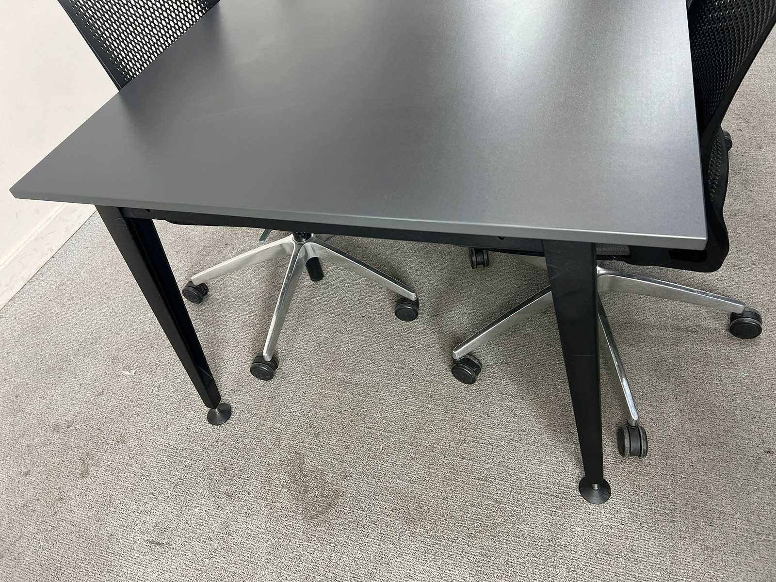 Omschrijving Moderne en representatieve vergaderset bestaande uit een Sedus Mastermind vergadertafel met 4 stuks Sedus Motion vergaderstoel. De tafel heeft een strak antraciet blad met geïntegreerde elektrificatie en staat op een zwart metalen onderstel. Ideaal voor grotere vergaderruimtes, boardrooms of projectruimtes. De bijhorende Sedus Motion stoelen hebben een ergonomische kunststof/mesh rugleuning en een verrijdbaar onderstel, wat zorgt voor comfortabel zitten tijdens langere vergaderingen. Afmetingen tafel Breedte: 180 cm Diepte: 90 cm Hoogte: ca. 75 cm Staat Gebruikt – in goede algemene staat met normale gebruikssporen. Merk: SEDUS Model: Vergadertafel + 4 SEDUS SE:Motion vergaderstoelen Kleur: antraciet Lengte: 180cm Breedte: 90cm Hoogte: 75cm