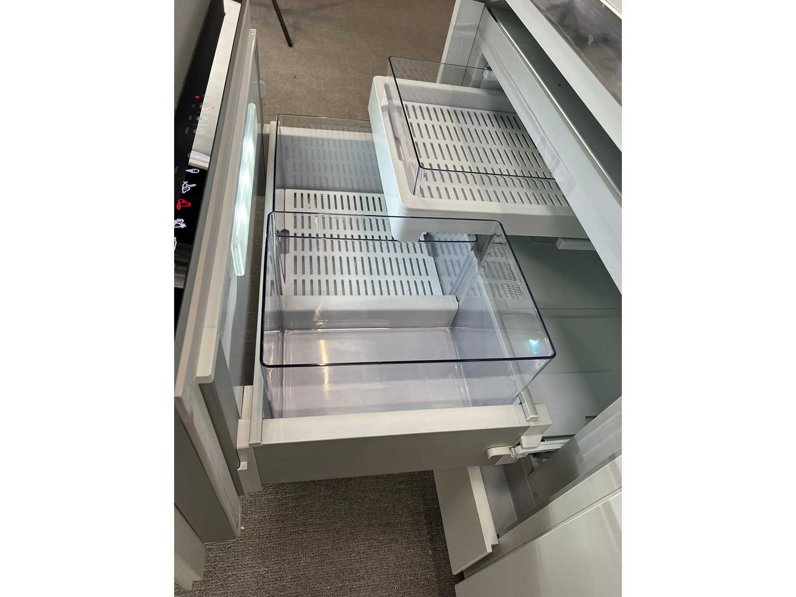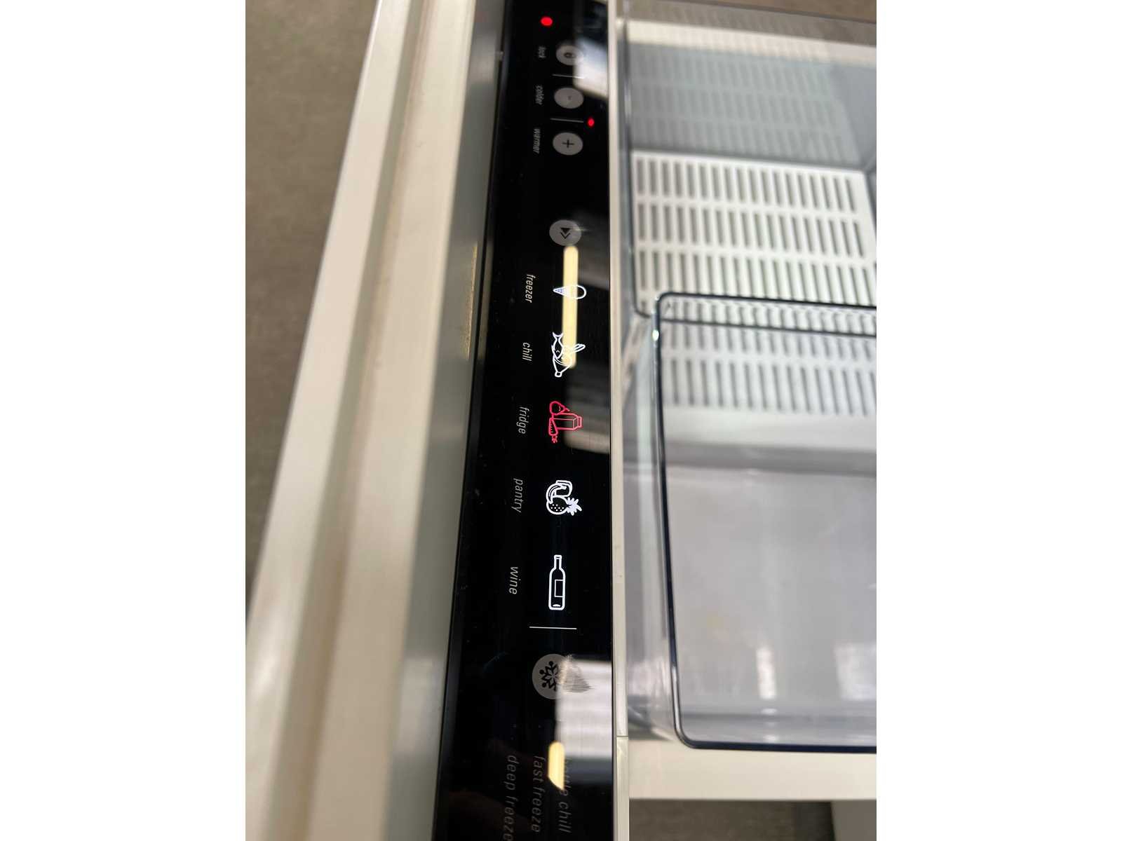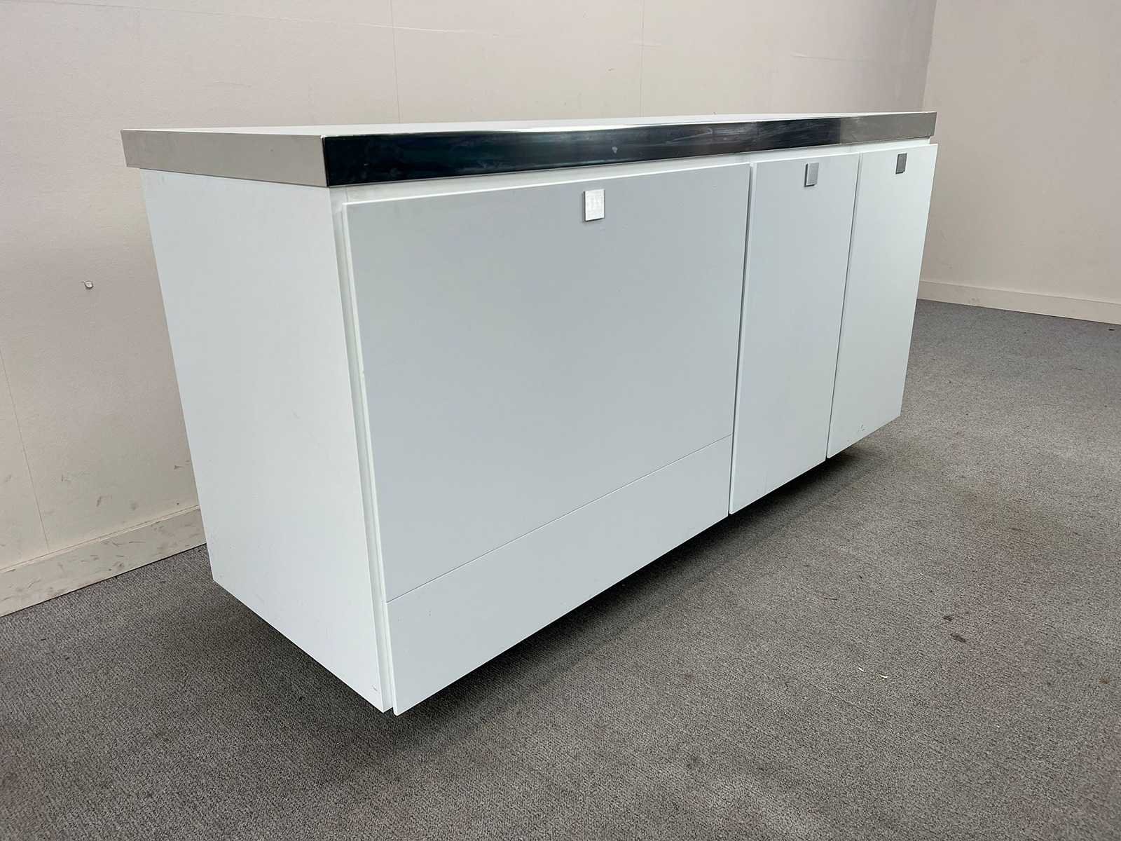 Multifunctioneel design meubel met geïntegreerde koel-/vrieslade – Fisher & Paykel Hoogwaardig multifunctioneel meubel met een strak wit glazen blad en inox afwerking. Dit designstuk combineert opbergruimte met een geïntegreerde koel-/vriesoplossing, waardoor het ideaal is voor gebruik in vergaderruimtes, kantoren, keukens of hospitality-omgevingen. Het meubel is uitgerust met twee ruime lades voor afvalsortering en een praktische schuiflade met ingebouwde koelkast/diepvries van het merk Fisher & Paykel, instelbaar naar wens. Dankzij deze combinatie is het meubel zowel functioneel als esthetisch een meerwaarde. Afmetingen: L183 x D62,5 x H85 cm Kenmerken: Wit glazen blad met inox randafwerking Ingebouwde koel-/vrieslade (Fisher & Paykel) 2 lades geschikt voor afvalsortering 1 schuiflade met koel-/vriesfunctie (instelbaar) Strak en modern design Geschikt voor diverse toepassingen (kantoor, keuken, vergaderruimte, …) Staat: Gebruikte staat met lichte gebruikssporen (zie foto’s) Model: Multifunctioneel dressoir met ingebouwde Fisher&Paykel frigo Kleur: wit Gewicht: 150kg Lengte: 183cm Hoogte: 85cm Diepte: 62,5cm