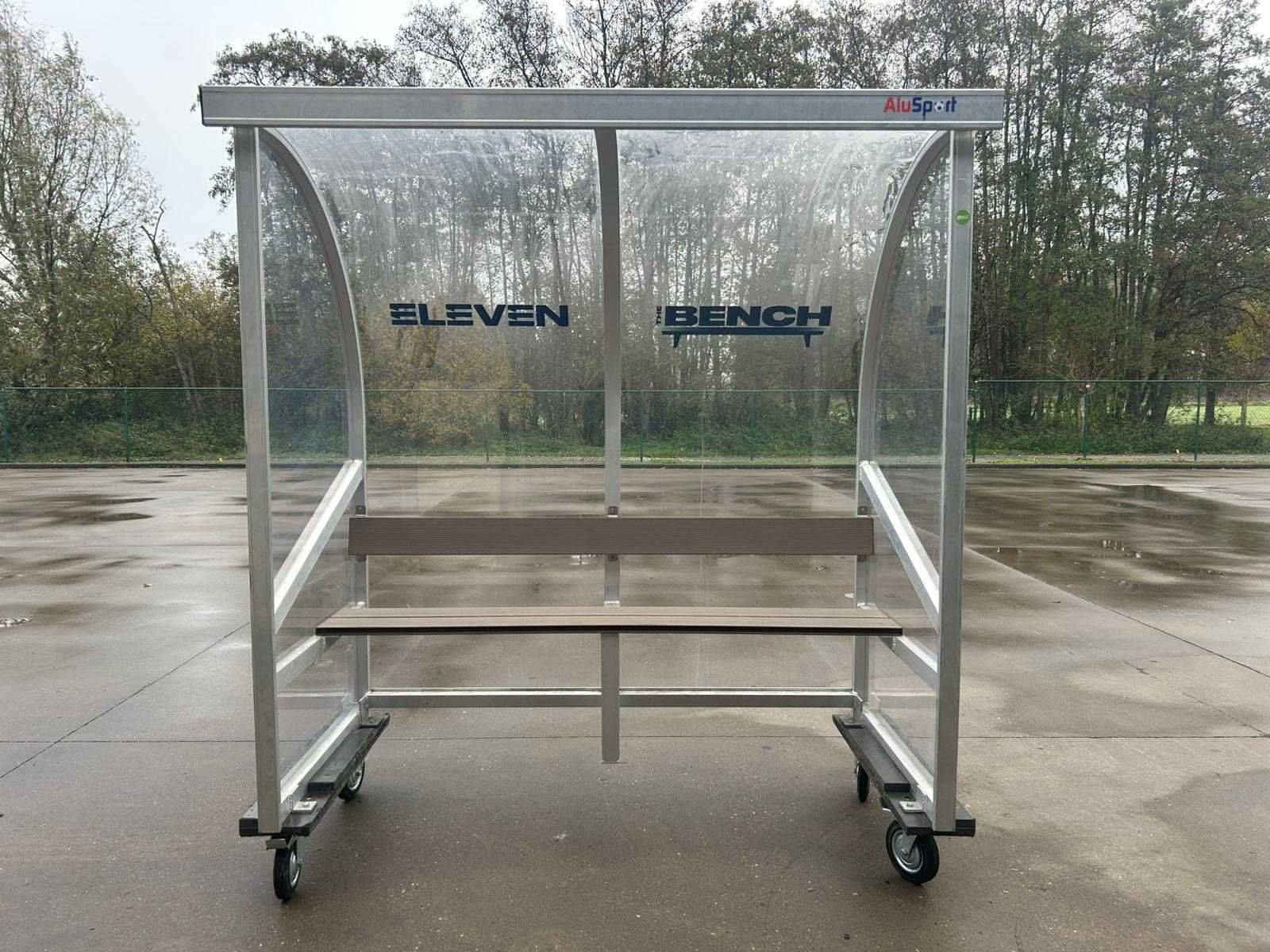 Omschrijving Verrijdbare overdekte zitbank, geschikt als spelersbank of wachtruimte (bv. sportterrein, bedrijfssite of evenement). Uitgevoerd met gegalvaniseerd metalen frame, transparante gebogen zij- en achterpanelen en geïntegreerde zitbank. Voorzien van wielen voor eenvoudige verplaatsing. Afmetingen (±) Hoogte: 240 cm Breedte: 200 cm Diepte: 100 cm Type: Dug-out Model: wachtbank Lengte: 200cm Breedte: 100cm Hoogte: 240cm