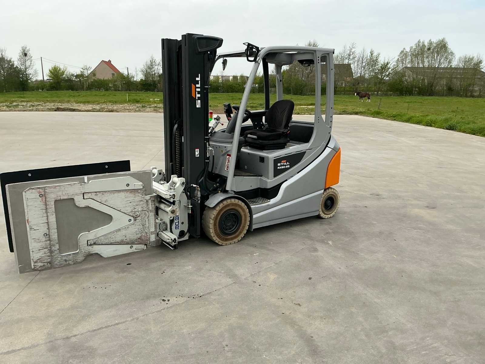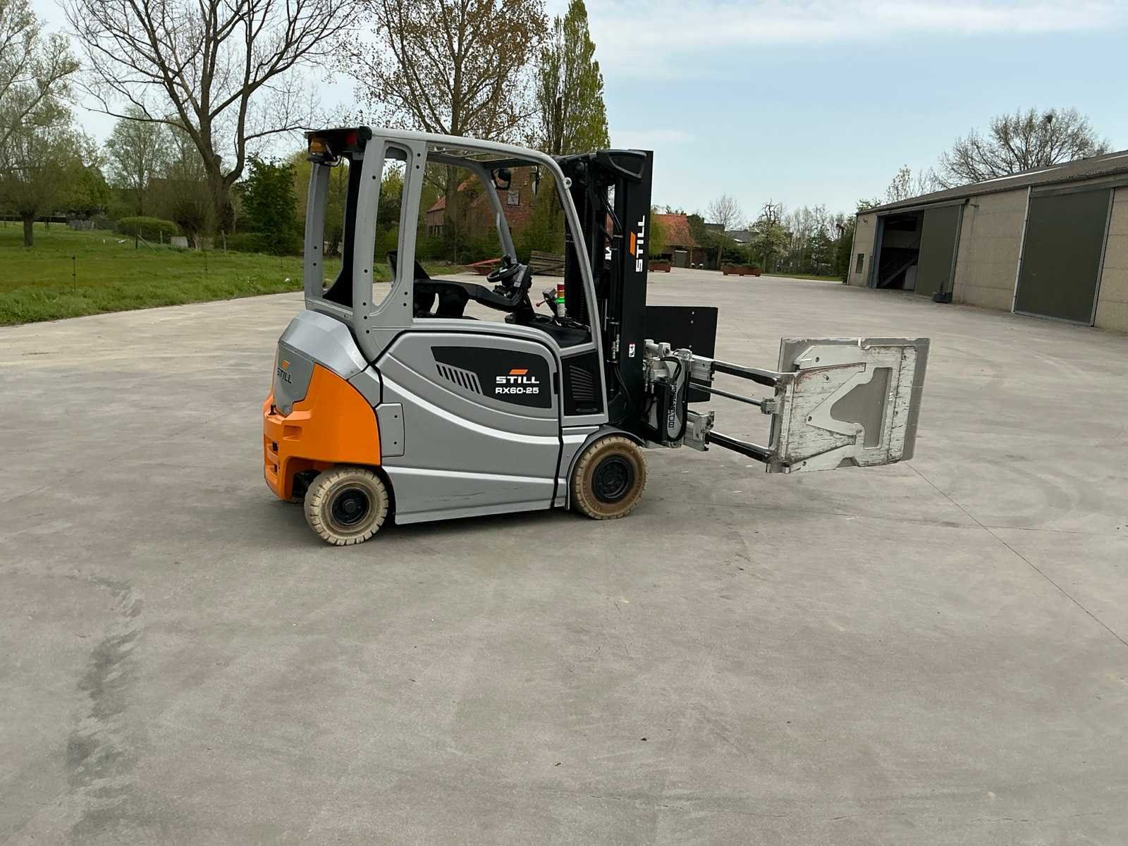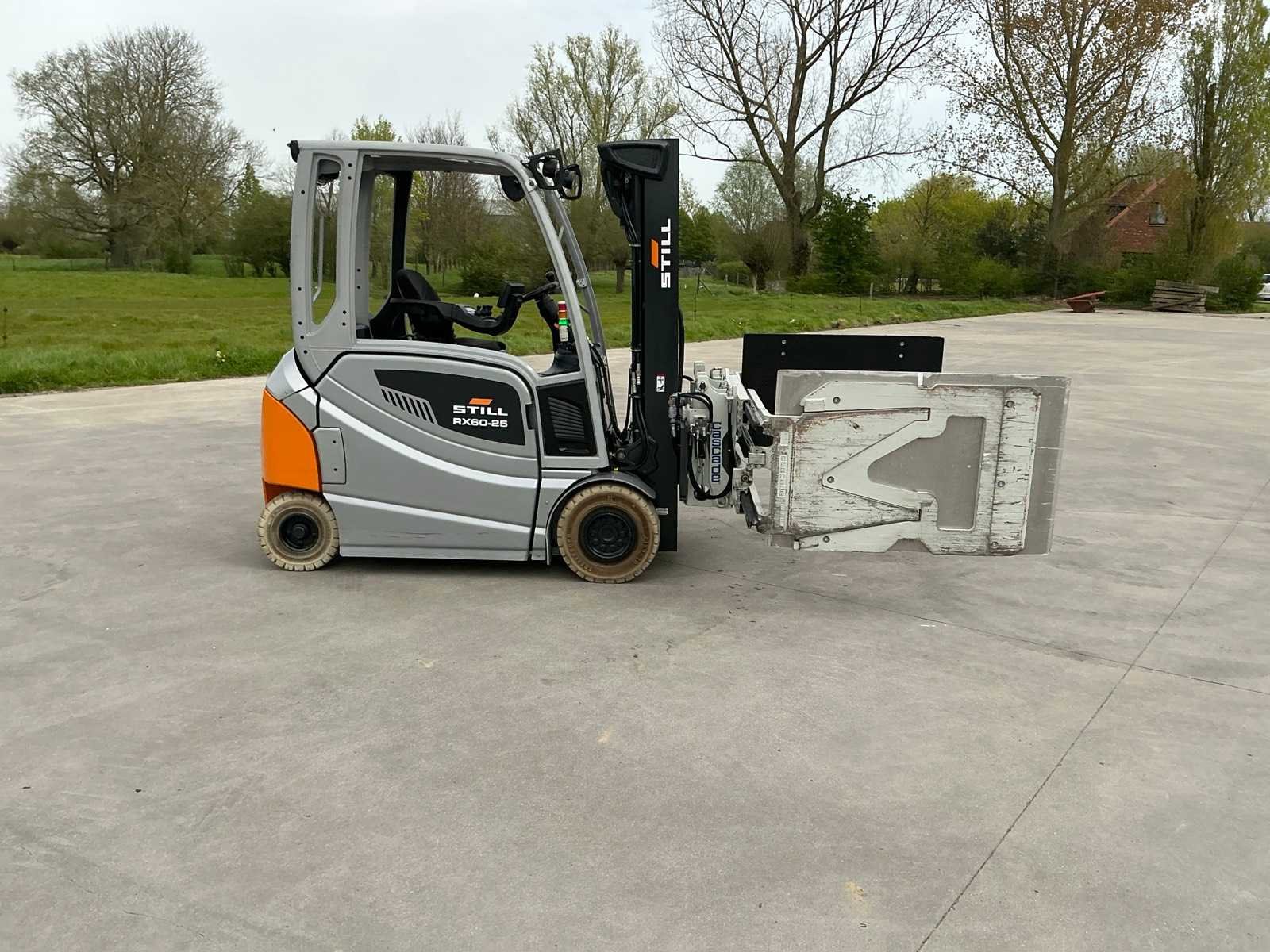 Cascade Klem met druk regeling en voorover kippen , 5 valven , led werklichten , blue spot , flash light , hoppecke trac air accu met passende lader Merk: Still Type: RX60-25 Bouwjaar: 2020 Serienummer: 516301X00726 Brandstof: Elektrisch Mast: Triple Soort band: Volrubber banden Aantal wielen: 4 Afgelezen urenstand: 6500 Accu lader: true Side-shift: true Roterend vorkenbord: true Hydraulisch verstelbare lepels: true Triple mast: true Eigen gewicht: 5000kg Hefvermogen: 2500kg Lepellengte: 1400mm Min. hefhoogte: 0mm Max. hefhoogte: 4890mm Vol rubber banden: true Totale afmeting L: 3000mm Totale afmeting Breedte: 1150mm Totale afmeting Hoogte: 2250mm