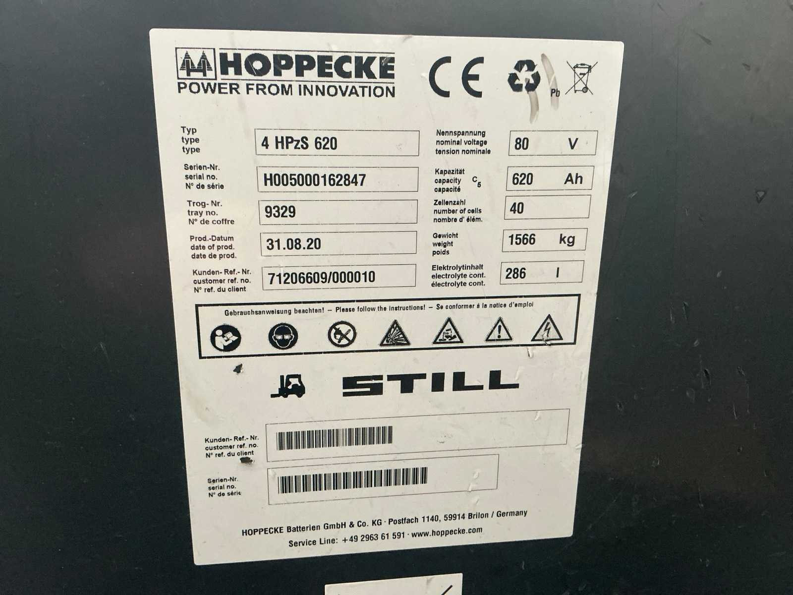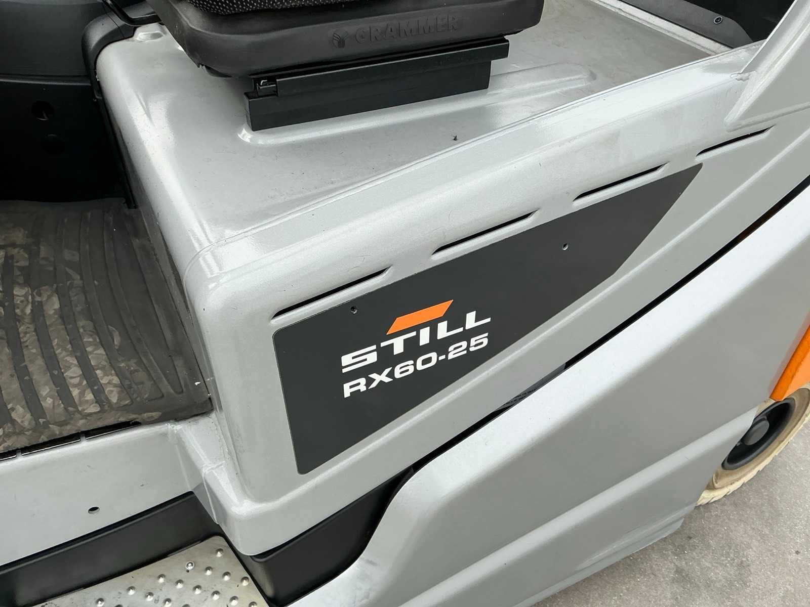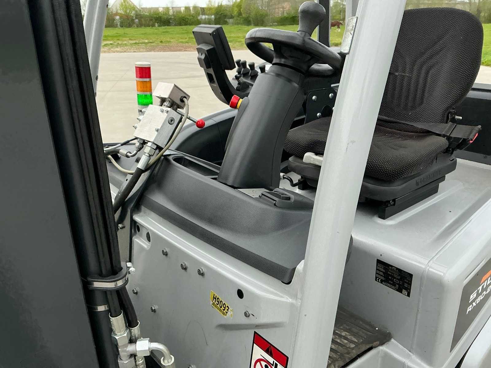 Cascade Klem met druk regeling en voorover kippen , 5 valven , led werklichten , blue spot , flash light , hoppecke trac air accu met passende lader Merk: Still Type: RX60-25 Bouwjaar: 2020 Serienummer: 516301X00726 Brandstof: Elektrisch Mast: Triple Soort band: Volrubber banden Aantal wielen: 4 Afgelezen urenstand: 6500 Accu lader: true Side-shift: true Roterend vorkenbord: true Hydraulisch verstelbare lepels: true Triple mast: true Eigen gewicht: 5000kg Hefvermogen: 2500kg Lepellengte: 1400mm Min. hefhoogte: 0mm Max. hefhoogte: 4890mm Vol rubber banden: true Totale afmeting L: 3000mm Totale afmeting Breedte: 1150mm Totale afmeting Hoogte: 2250mm