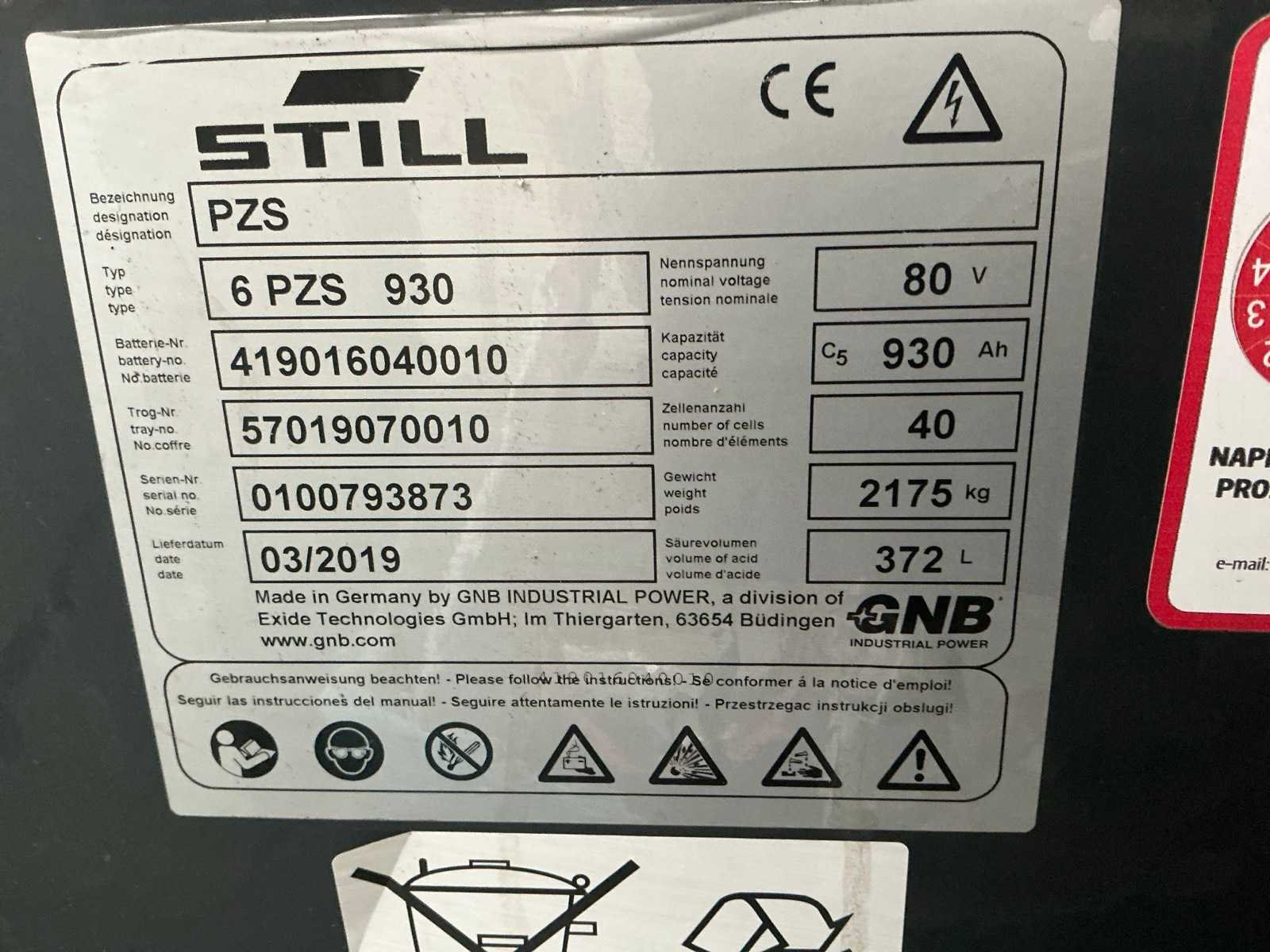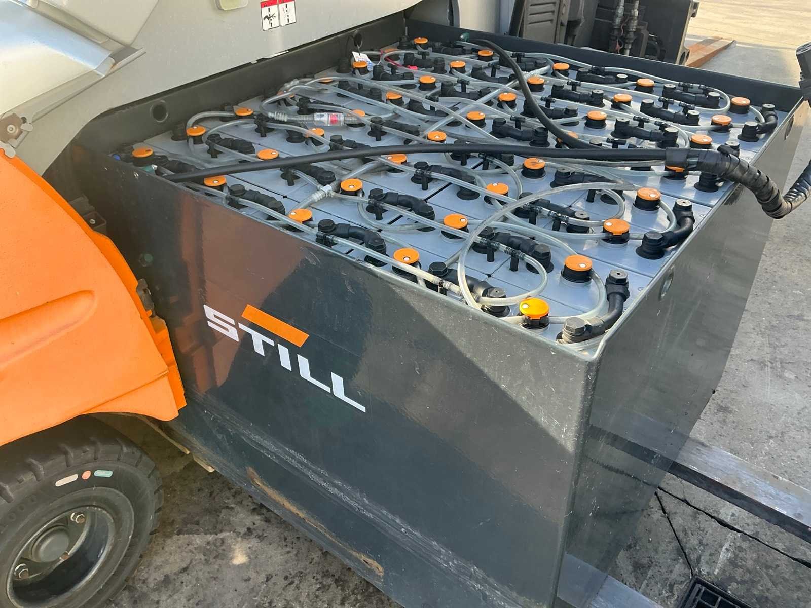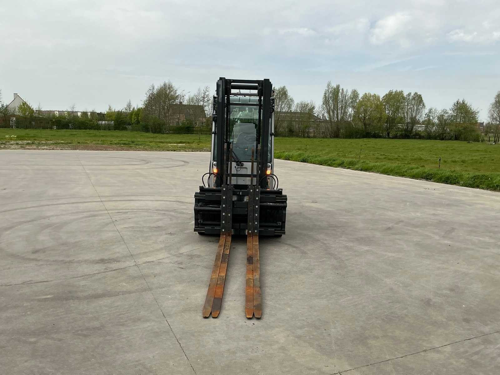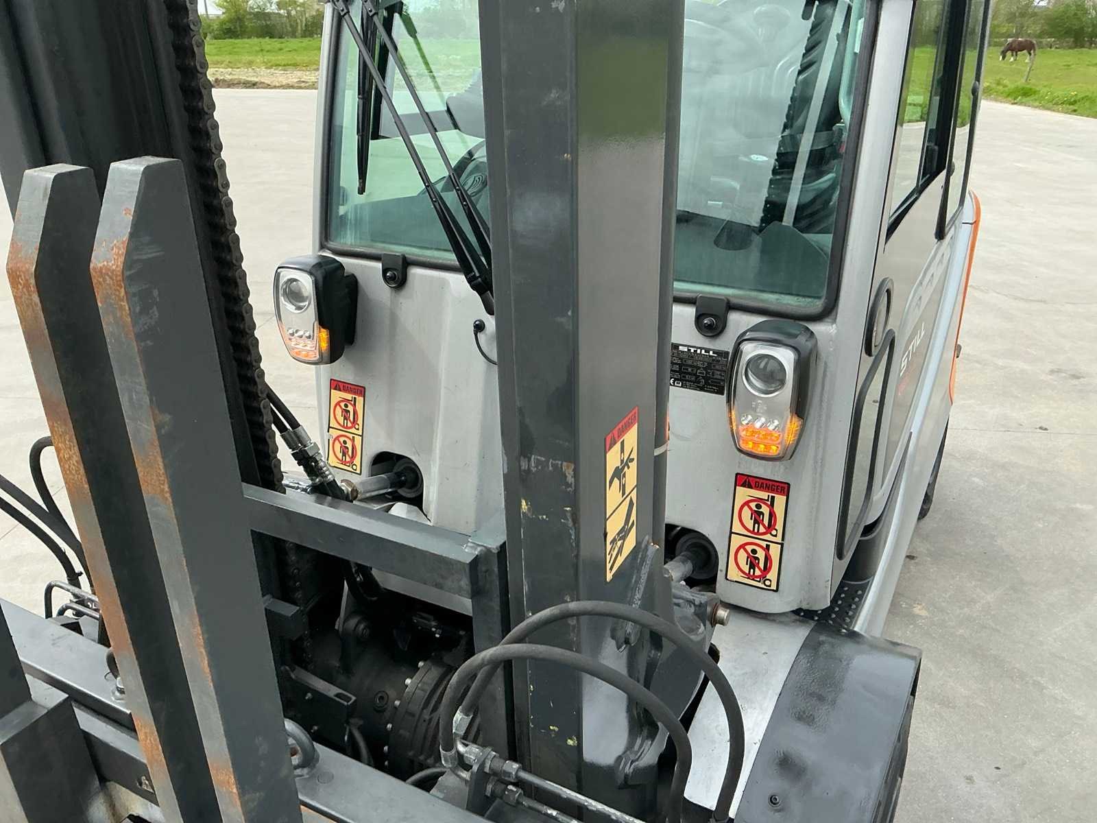 Led werklichten voor en achter , blue spot, flash light , verwarmde gesloten cabine , breedte gevaar lichten , side shift met 4 vorken systeem Merk: Still Type: RX60-40/600 Bouwjaar: 2019 Serienummer: 516368V00013 Brandstof: Elektrisch Mast: Duplex Soort band: Volrubber banden Aantal wielen: 4 Afgelezen urenstand: 3500 Side-shift: true Hydraulisch verstelbare lepels: true Duplex mast: true Eigen gewicht: 6750kg Hefvermogen: 4000kg Lepellengte: 2400mm Min. hefhoogte: 0mm Hefhoogte: 3500mm Vol rubber banden: true Totale afmeting L: 3200mm Totale afmeting Breedte: 1400mm Totale afmeting Hoogte: 2500mm Leveringsvoorwaarden: Gratis op vrachtwagen