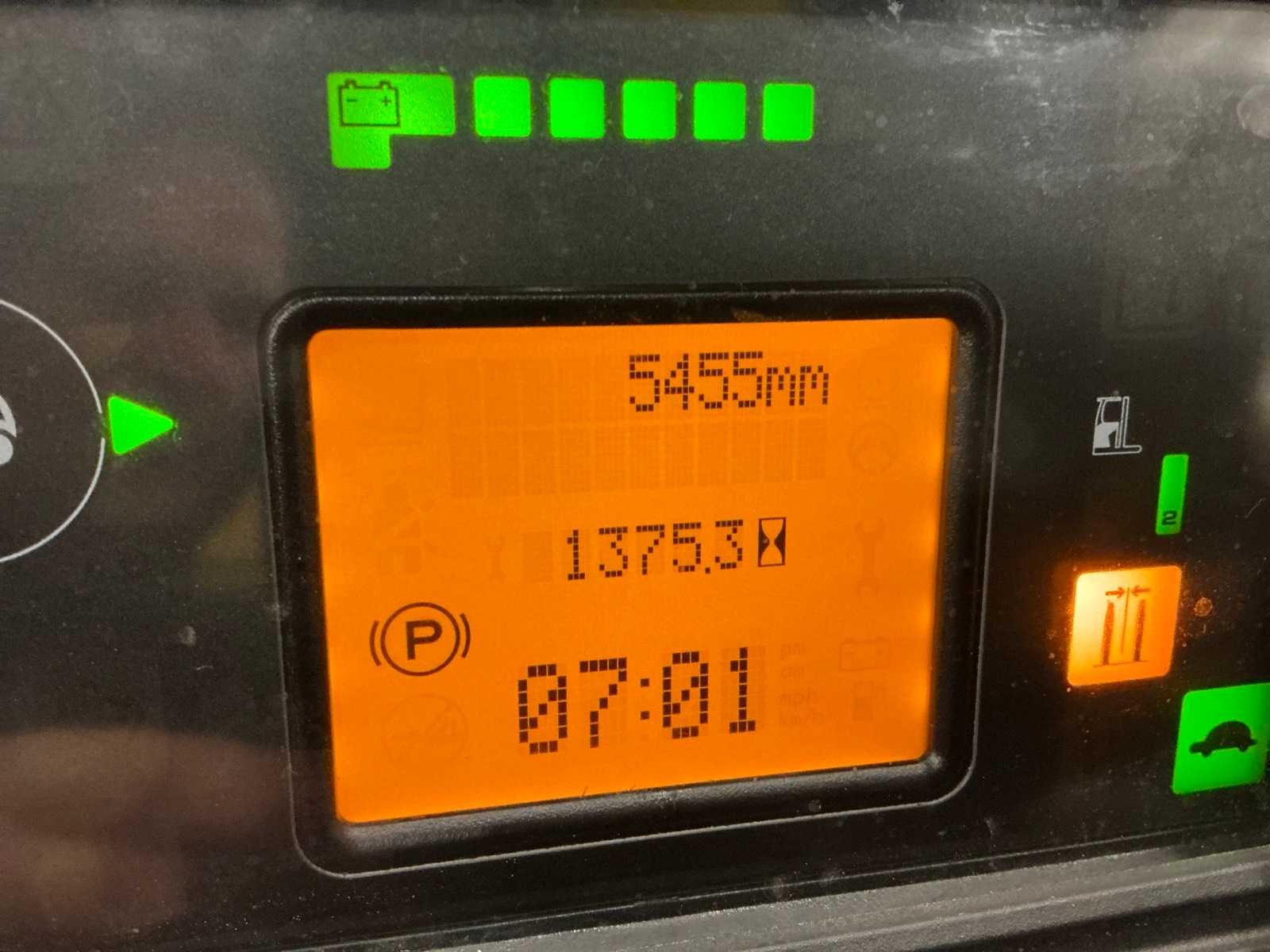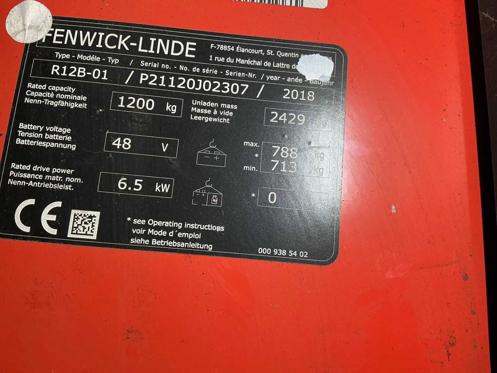 Accu met automatische vulling , blue spot , flash light Merk: Linde Type: R12B-01 Bouwjaar: 2018 Serienummer: P21120J02307 Afgelezen urenstand: 1400 Side-shift: true Triple mast: true Eigen gewicht: 3289kg Hefvermogen: 1200kg Lepellengte: 1150mm Max. hefhoogte: 5450mm Totale afmeting L: 2200mm Totale afmeting Breedte: 1270mm Totale afmeting Hoogte: 2420mm Elektrisch: true Vol rubber banden: true Leveringsvoorwaarden: Gratis op vrachtwagen
