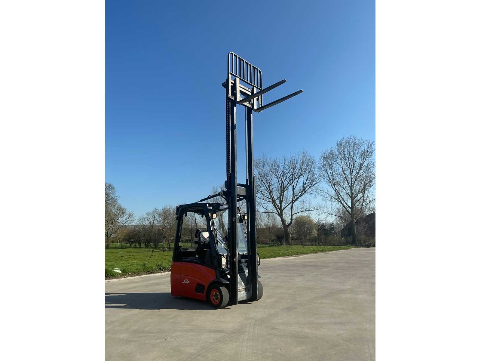 Triathlon 2019 Accu met automatische vulling , werklichten voor en achter , kit verlichting openbare weg , mast rek Merk: Linde Type: E16-01 Bouwjaar: 2010 Serienummer: H2X386A05025 Brandstof: Elektrisch Mast: Duplex Soort band: Volrubber banden Aantal wielen: 4 Afgelezen urenstand: 5600 Eigen gewicht: 3600kg Hefvermogen: 1600kg Lepellengte: 1150mm Min. hefhoogte: 0mm Max. hefhoogte: 3850mm Vol rubber banden: true Totale afmeting L: 2000mm Totale afmeting Breedte: 1080mm Totale afmeting Hoogte: 2450mm Leveringsvoorwaarden: Gratis op vrachtwagen