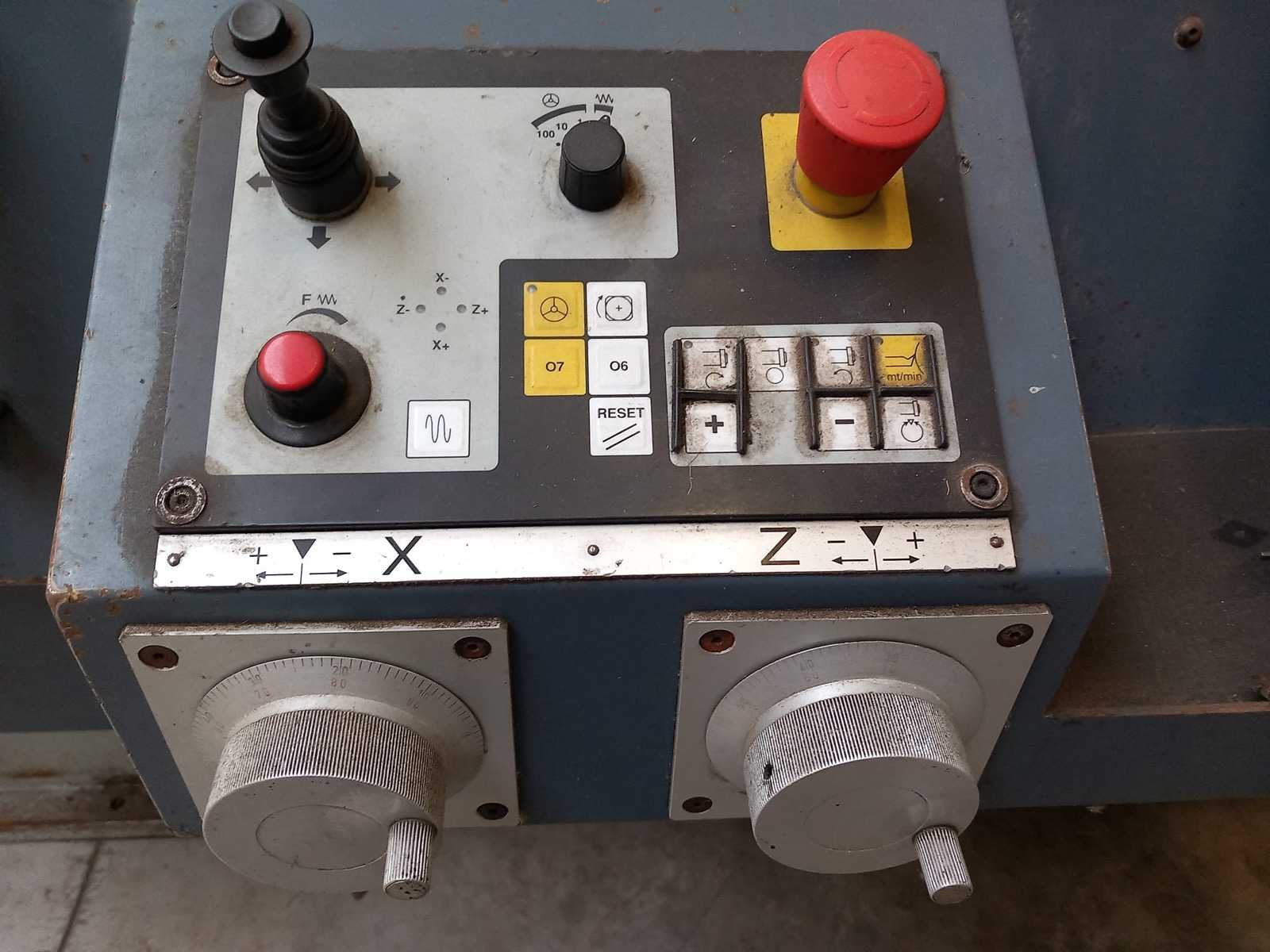 Merk: Padovani Type: Labor E2555 x 1500 Bouwjaar: 1998 Draailengte: 1500mm Draai: 500mm Holle spil Ø: 62mm Snelheid van n =: 20rpm Snelheid tot n =: 2000rpm Aantal gereedschapwisselstations: 4 Koelmiddelpomp: true Besturing, merk, type: EMCO teach-in cnc Aansluiting: 380V