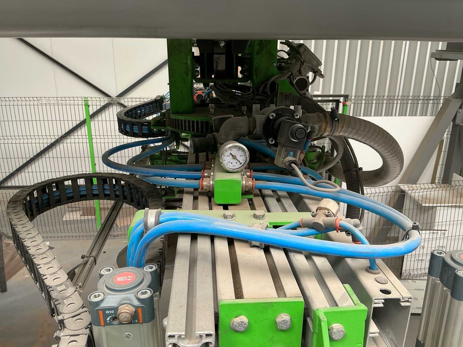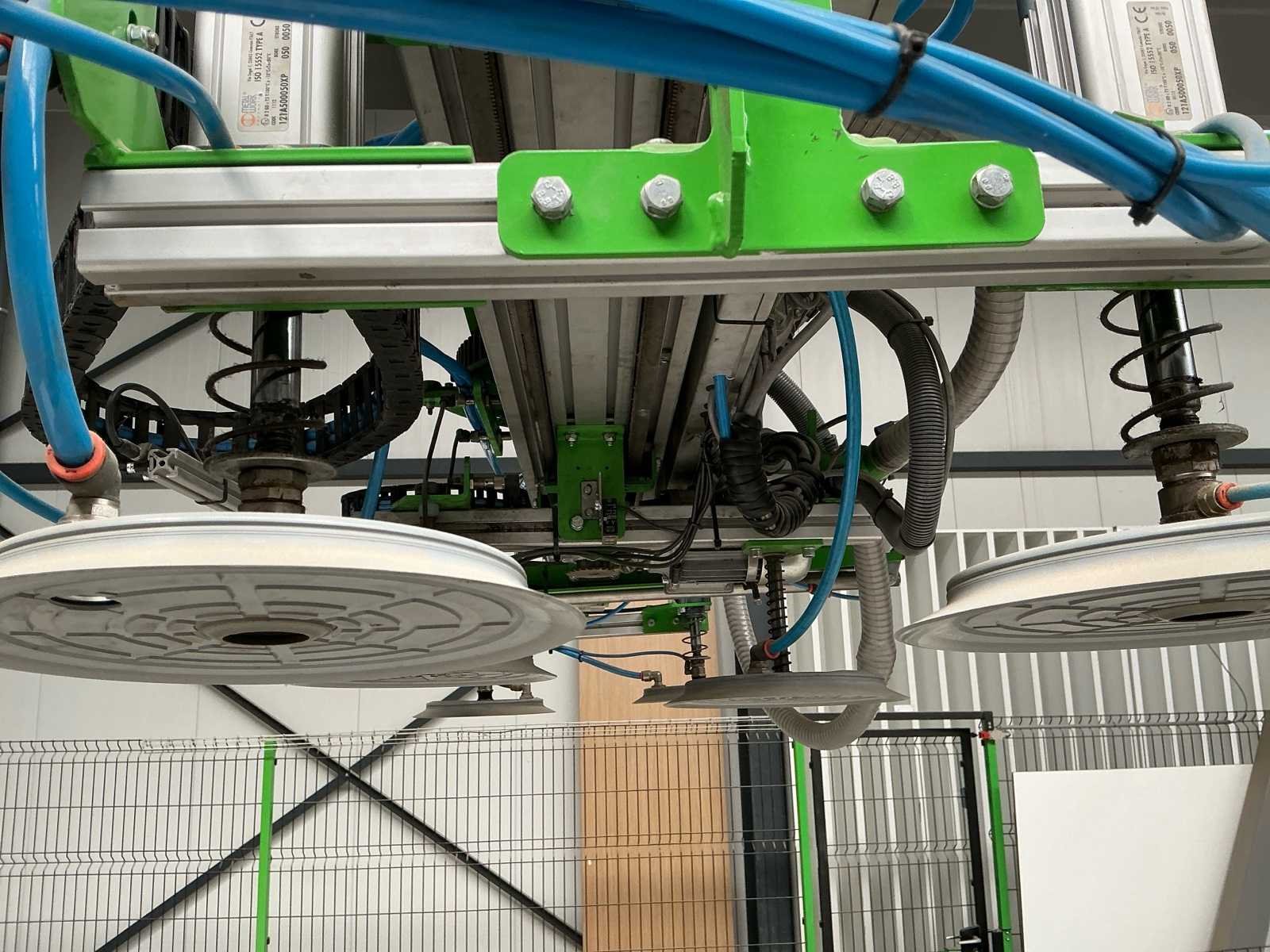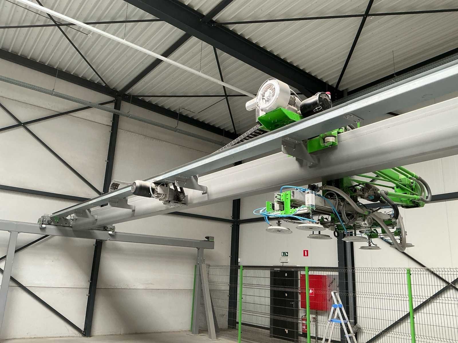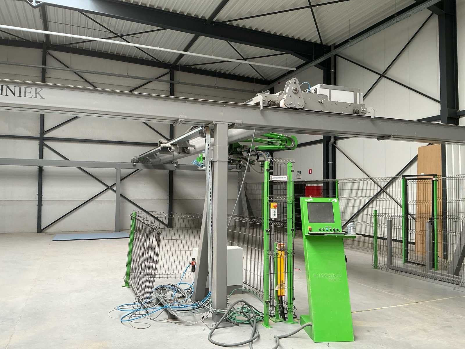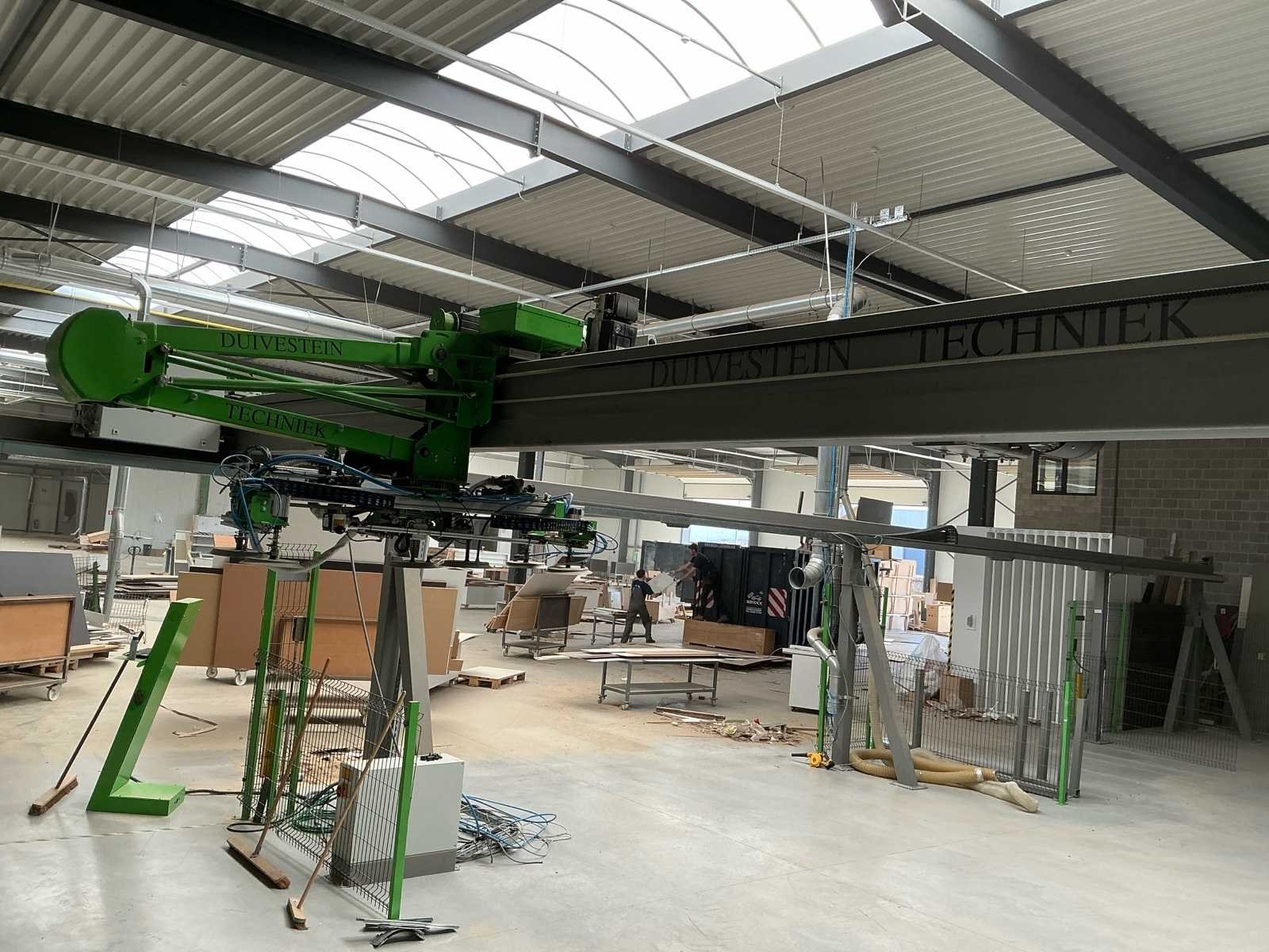 Zware industriële Duivestein Techniek portaalrobot type MD12000 (bouwjaar 2014), ontworpen voor het automatisch verplaatsen en positioneren van plaatmateriaal binnen productie- en magazijnomgevingen. De installatie is uitgevoerd als gantry systeem (X/Y/Z beweging) en voorzien van een vacuümgrijper met meerdere zuignappen, geschikt voor handling van o.a. hout-, MDF-, HPL- en kunststofplaten. Ideaal voor toepassingen zoals platenmagazijnen, CNC-aanvoer en interne logistieke automatisering. Machine wordt aangeboden compleet zoals opgesteld, inclusief: • portaalconstructie • vacuümgrijper • bedieningszuil • veiligheidshekwerk (inbegrepen) Belangrijke informatie • ⚠️ Demontage volledig door koper (geen materiaal aanwezig op locatie) • ⚠️ Demontage en afvoer op eigen risico • ⚠️ Installatie is buiten gebruik / werking onbekend • ❌ Zonder persluchtvoorzieningen (blijft achter op locatie) • ❌ Zonder stofafzuiging (blijft achter op locatie) Merk: Duivenstein Techniek Type: MD1200 Bouwjaar: 2014