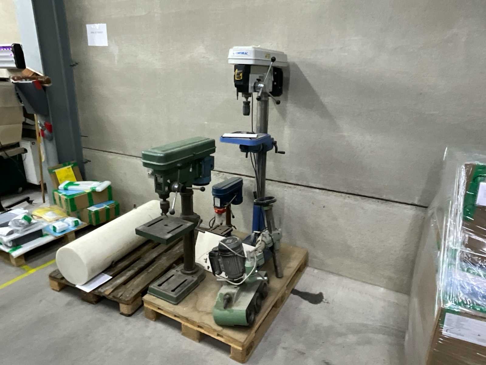 Boorinstallatie - 3 Stukken. Contimac CH18F - Technische kenmerken: Voeding: 230 V enkelfasig Motorvermogen: 1 pk Boorcapaciteit: 20 mm Morse-tapering: MK2 Aantal snelheden: 12 Snelheidsbereik: 280 tot 2300 tpm Spilslag: 82 mm Machinehoogte: ± 1625 mm Gewicht: ± 72,5 kg - Apparatuur en kenmerken Hoogteverstelbare tafel via tandheugel en tandwiel Kanteltafel (-45° tot +45°) en 360° draaibaar Tafel met groeven + oliedruppelbak Boordieptestop Zelfaandraaiende boorkop 3–16 mm inbegrepen Massieve basis met T-sleuven voor het bevestigen van onderdelen En de anderen: Rhino en Asea Verkocht zoals het is - zie foto's Merk: Contimac - Rhino - Asea