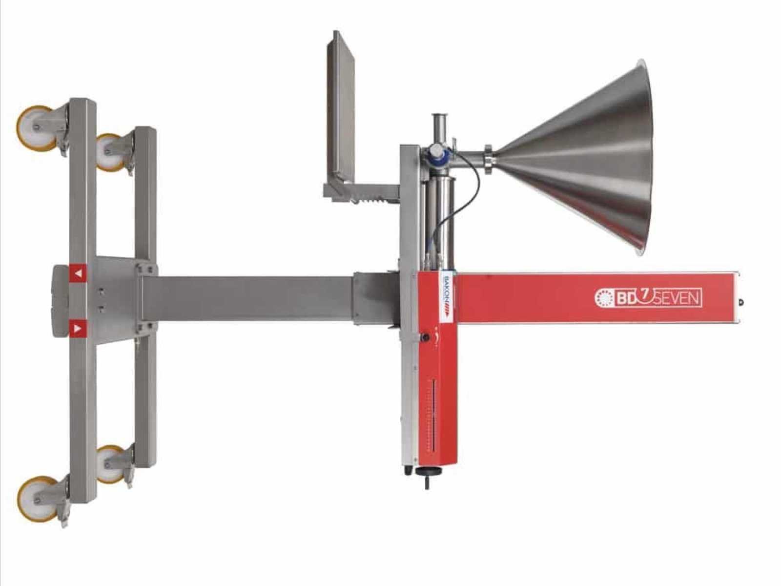 Voeding: 230V / 50Hz - 300W CE-markering Beschrijving: Mobiele volumetrische deponeerder op wielen, ontworpen voor de precieze dosering van halfvloeibare producten in de voedingsindustrie: rooms, moussen, cakedeeg, vullingen, coulis, Bavarians, roomkaas, sauzen, enzovoort. Kenmerken: - LCD-scherm met receptmenu (50 opslaanbare programma's) - Instelbaar doseringsvolume van 10 tot 1.100 ml per cyclus - 35-liter roestvrijstalen trechter (65 liter optioneel) - Instelbare doseringssnelheid - Pneumatisch verstelbare werkhoogte - Volledig gemaakt van roestvrij staal en niet-corrosieve materialen - Verwijderbaar zonder gereedschap voor snelle reiniging - Mobiel op 4 draaibare wielen (2 met remmen) - Compatibel met een breed scala aan Bakon-accessoires (doseerkoppen, injectoren, pistool, transportband) Conditie: goede werkstaat, regelmatig onderhouden, klaar voor gebruik Merk: MD Satellite (Multi Depositor Satellite) Type: Bakon B.V. Food Equipment (Pays-Bas) Bouwjaar: 2014 Serienummer: 4-70-01-14-0187 Totale afmeting L: 1300mm Totale afmeting Breedte: 710mm Totale afmeting Hoogte: 2250mm