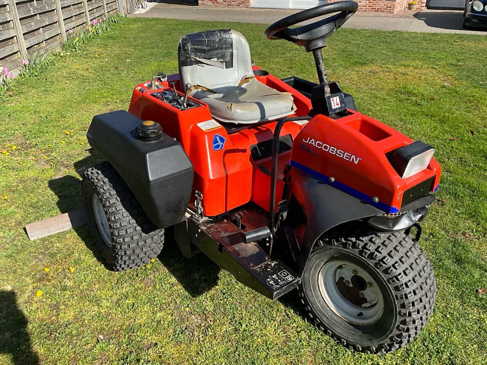 Volledig functioneel - 3 wielen- paardensleep - diesel- sterke 3cilinder Kubota-motor - trekt op 3 wielen waardoor je niet vast rijdt - hydrostaat - kantelt hydraulisch - trekhaak - sleepbalk kan je verwijderen - zetel beschadigd - sleepbalk van 200cm Merk: Jacobsen Type: Textron Type motor: Kubota Brandstof: diesel