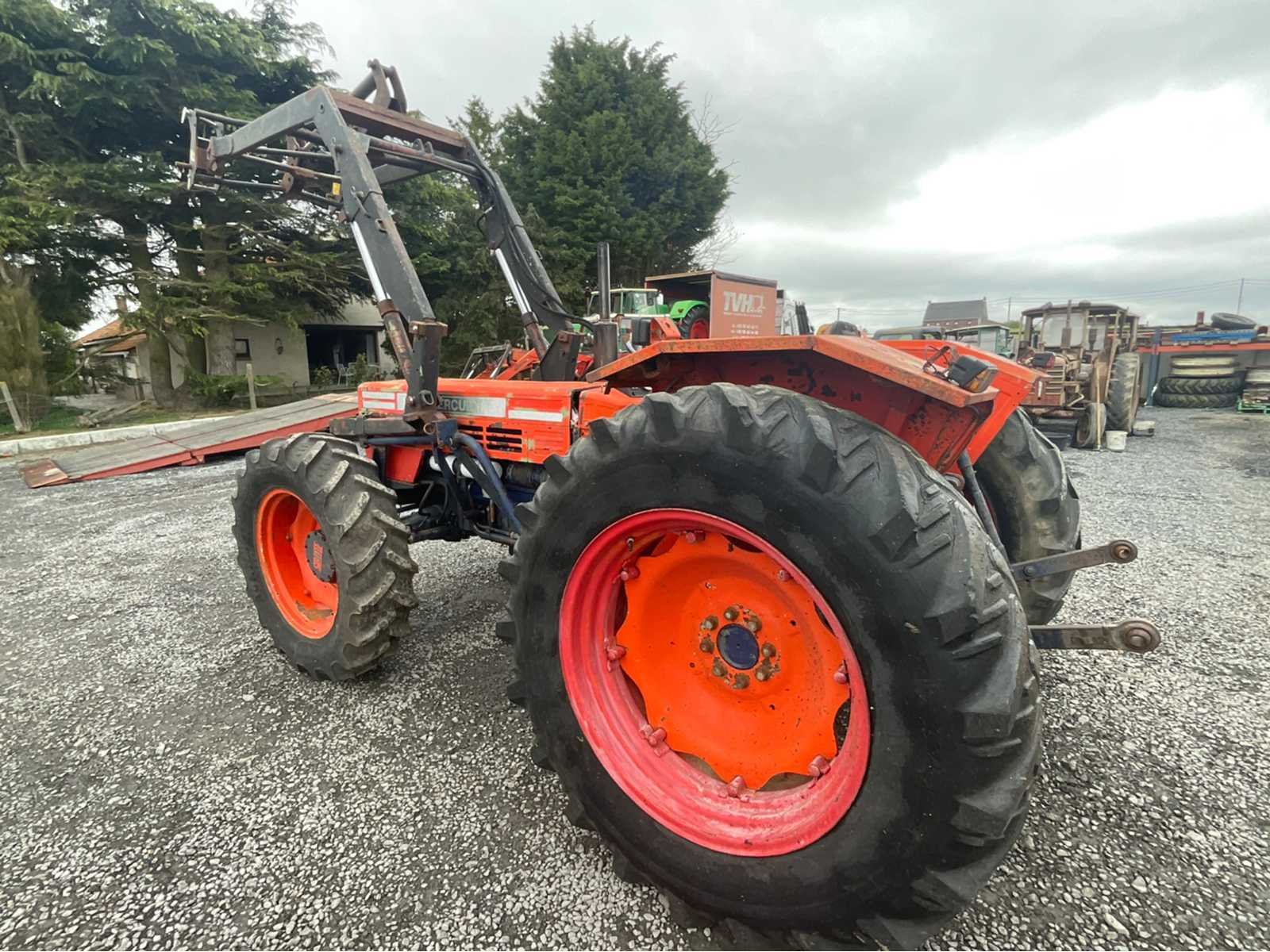 SAME Mercury 85 Special DT landbouwtractor in 4x4-configuratie, uitgerust met een voorlader. Machine, geschikt voor landbouwwerk, hantering en veelzijdig gebruik. Kenmerken: Merk: HETZELFDE Model: Mercury 85 Special DT Vermogen: 62 kW (85 pk) Openingstijden: 4.477,6 uur Transmissie: 4WD (DT) Voorlader gemonteerd Achterste verbinding Achterste hydraulische doppen Vermogensafname (PTO) Status: Tractor in gebruikte staat Zichtbare algemene slijtage (verf, oppervlaktecorrosie) Versleten / vervangend zadel Banden met normale slijtage Huidige hydraulische installatie Geteste werking Administratieve informatie: Voertuig met Belgische papieren Fabrikantplaat aanwezig Serienummer: 11782 (nog te bevestigen – zie foto's) Jaar: ± 1990 (geschat) Non Merk: SAME Type: Mercury 85 Special DT Bouwjaar: 1988 Serienummer: 11782 Motorvermogen (kW): 62kW Afgelezen urenstand: 4478 Voorlader: true