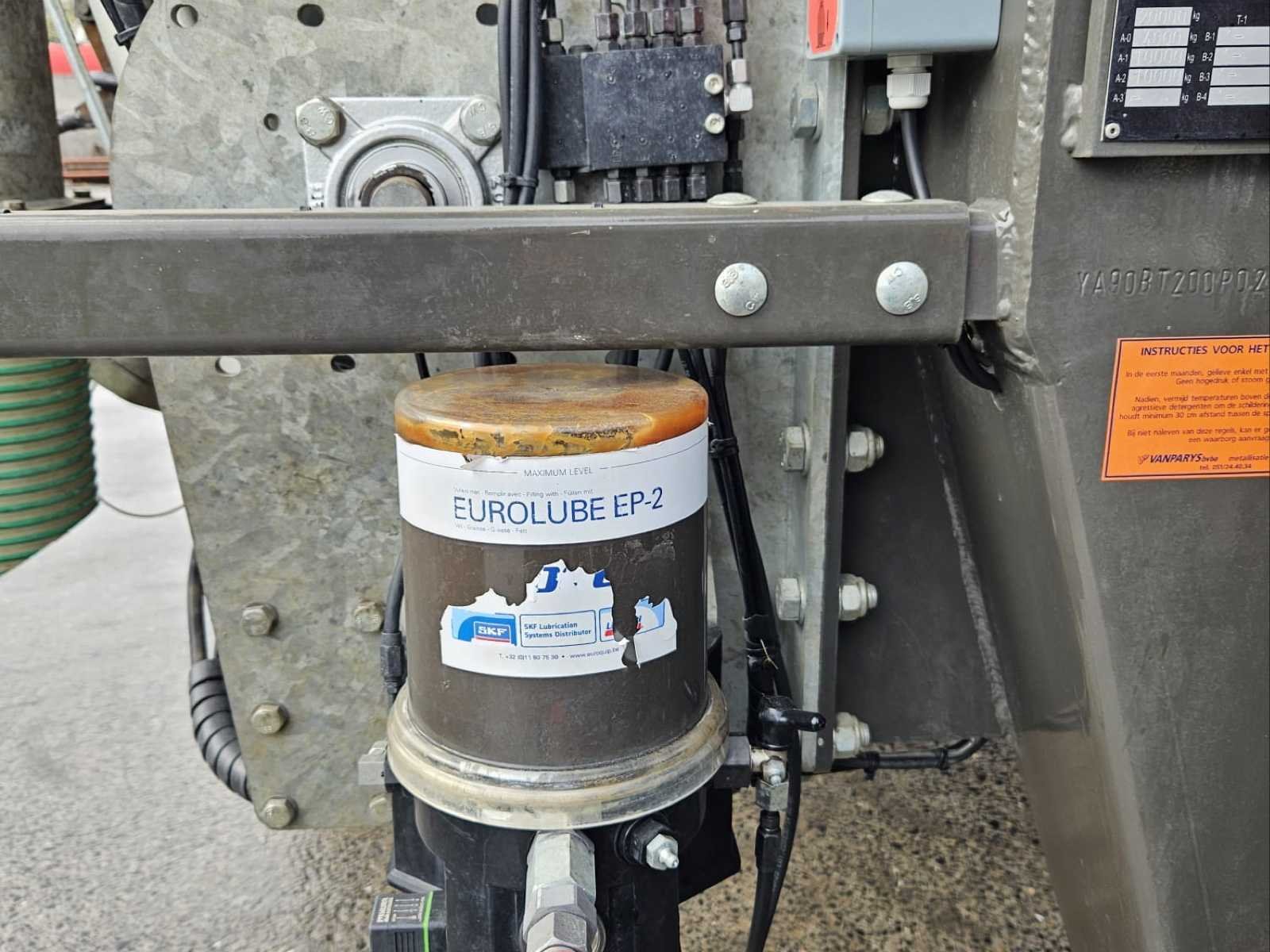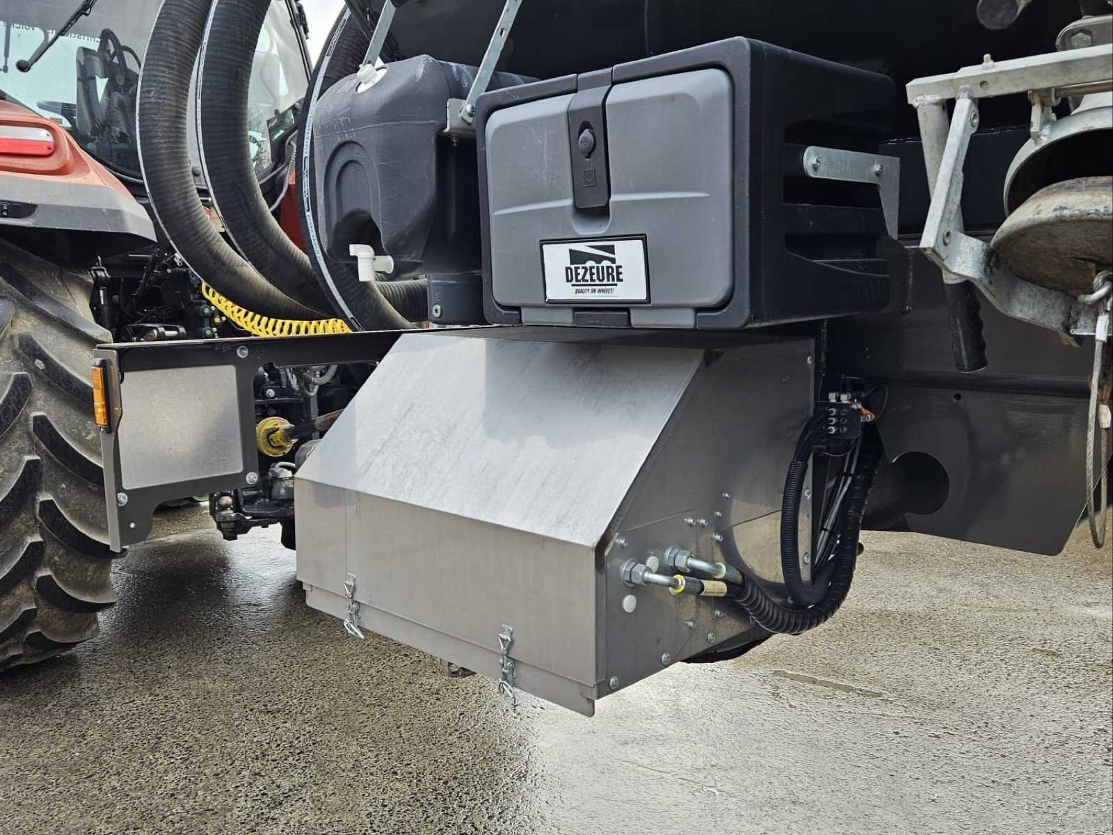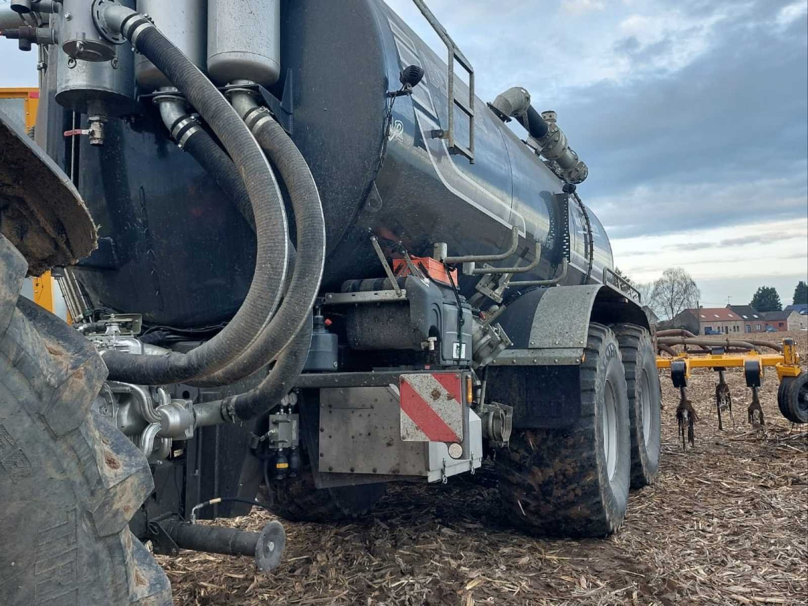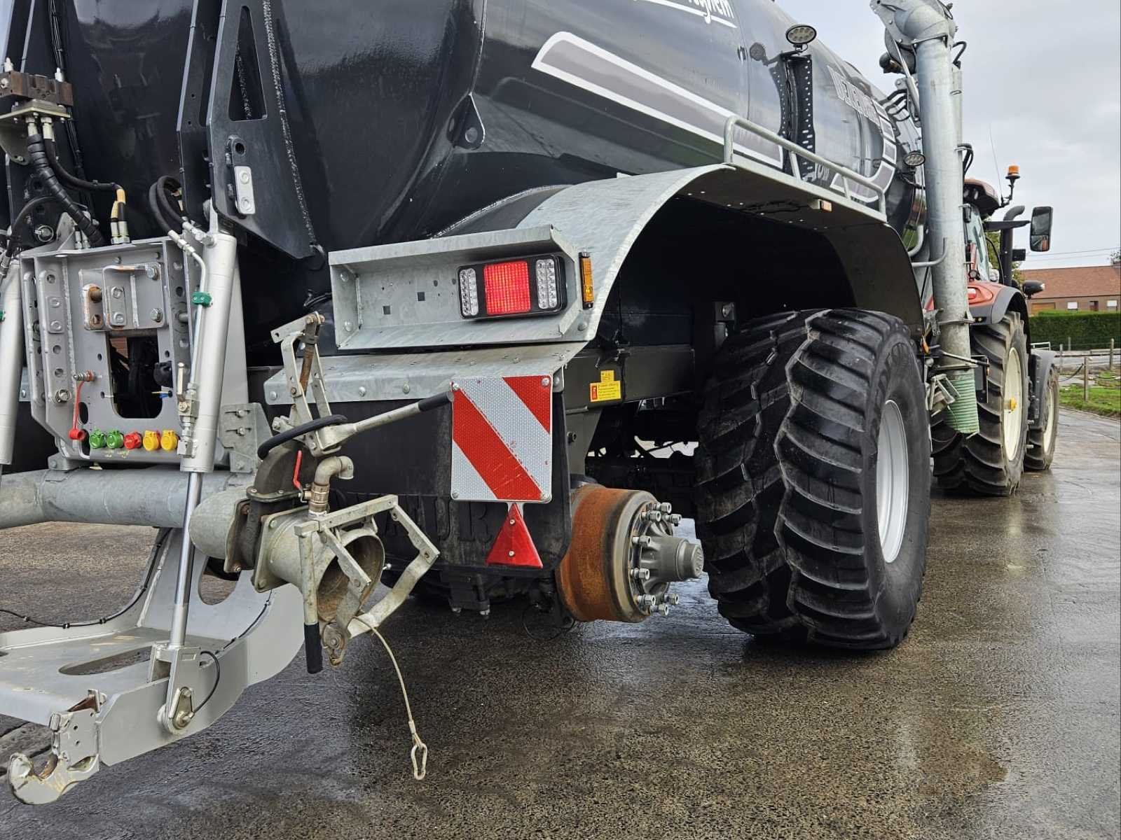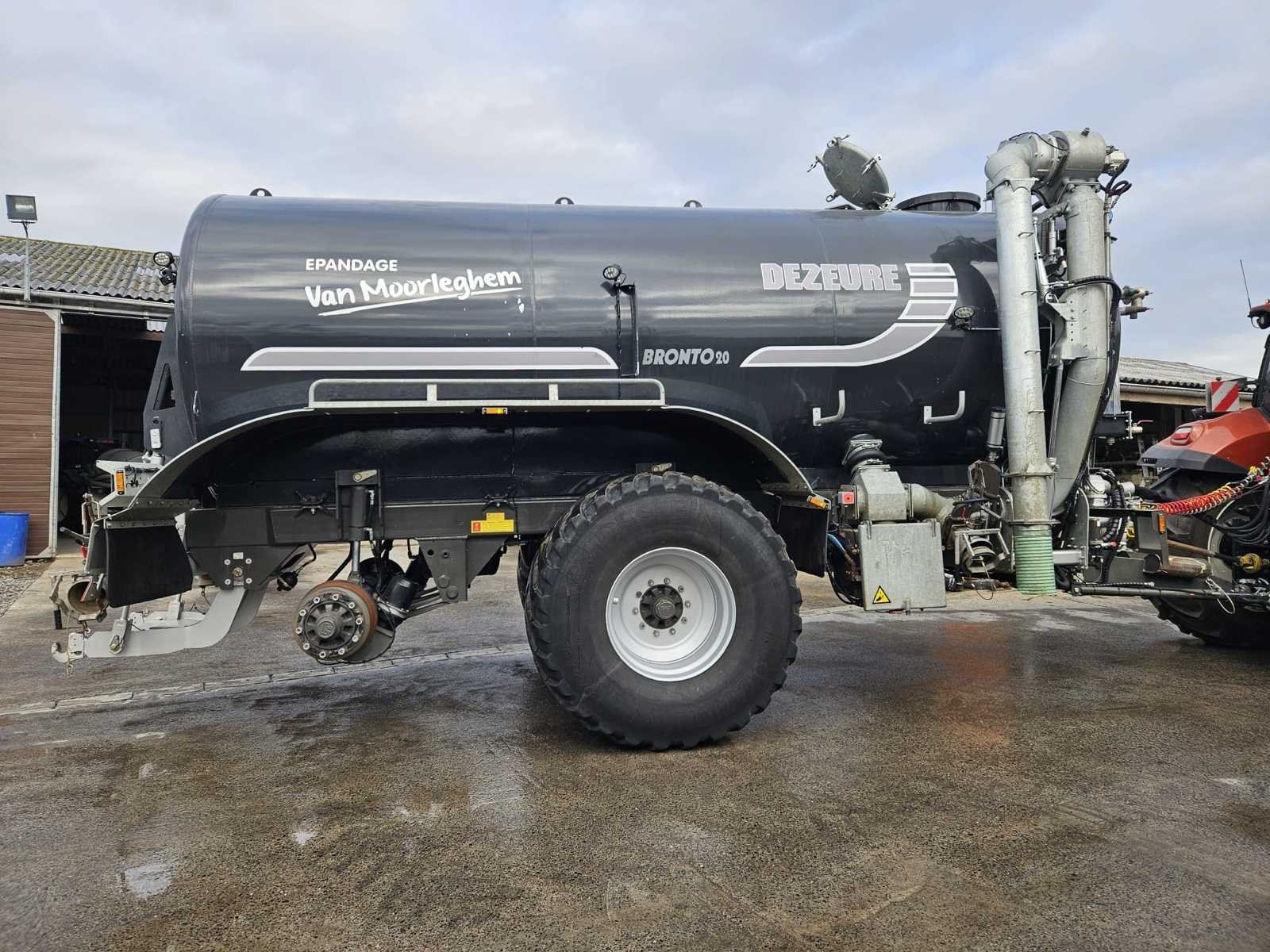 DEZEURE BRONTO 20 slurrytanker (type BT200), jaar 2023, inhoud 20.000 liter. Volledig uitgeruste en werkklare high-end machine, waaronder: * JUROP DL180 vacuümpomp met turbovul * MAMMUT pomparm (200) met trechter en snelle koppeling * Vredo 5200 spreidingsboom (hangers) * Hydraulische vering met stikstofballen * Hydraulische stuuras * Pneumatische remmen evenredig aan de belasting * Zware achterste verbinding * Scharmüller K80 Bevestiging * Gecentraliseerde smering * Michelin VF 750/60R30.5 banden * Werk- en wegverlichting Uitgerust met een DEZEURE SECU TOUCH elektronisch besturingssysteem met SMART FLOW, waardoor volledige en precieze besturing vanuit de cabine mogelijk is. Recente machine (2023), gebruikt op boerderijen en zichtbaar onder werkomstandigheden. Complete set met helling, direct operationeel. **Geteste en functionerende machine.** Over het algemeen in goede staat met normale gebruikstekenen (vuil, slijtage en lichte corrosie op sommige elementen). Belgisch voertuig met CE-markering. Merk: DEZEURE Type: BRONTO 20 Type BT200 Bouwjaar: 2023 Serienummer: P037 Tankinhoud: 20m³ Type pomp: JUROP DL 180 Zuigarm: true Hefinrichting: true Doseercomputer: true