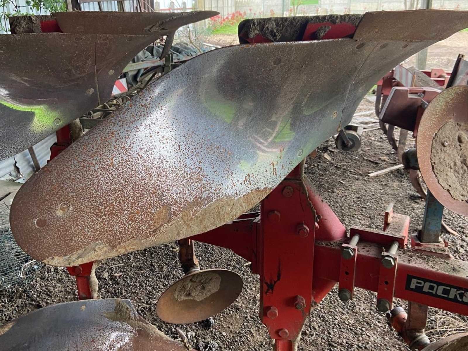 KUHN gemonteerde ploegmachine type QR 65, uitgerust met 5 carrosserieën in 16 inch. Robuuste machine, ideaal voor klassiek landbouwwerk. Uitgerust met een hydraulisch draaisysteem. De algehele staat was correct voor de leeftijd. Aanwezigheid van oppervlakteroest door opslag, maar een goede structuur. Bases en mouldboards zijn nog steeds bruikbaar. Onder dekking opgeslagen. Kenmerken Merk: KUHN Model: QR 65 Aantal lichamen: 5 Breedte: 16" Type: Omkeerbare ploeg Hitch: 3 punten Besturing: Hydraulisch Merk: Kuhn Type: QR 65