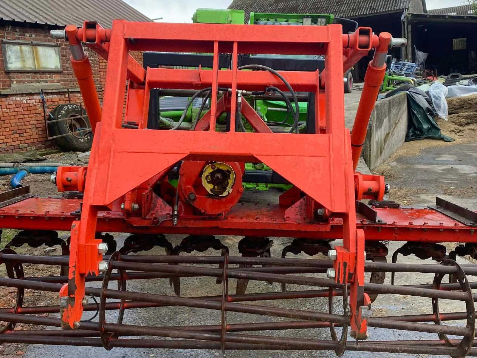 Belrecolt HRB 301 D roterende snijder met hydraulische vouw, jaar 1999. Machine, uitgerust met een Packo / Deldalle vouwframe, ideaal voor grondwerk en wegtransport. Werkbreedte van ongeveer 3 meter. Uitgerust met een kooi-achtige achterrol, PTO en een volledig hydraulisch systeem. De algehele staat is correct, met normale slijtage van de tanden en sporen van oppervlakteroest. Complete machine. Merk: Belrecolt Type: HRB 301 D Bouwjaar: 1999