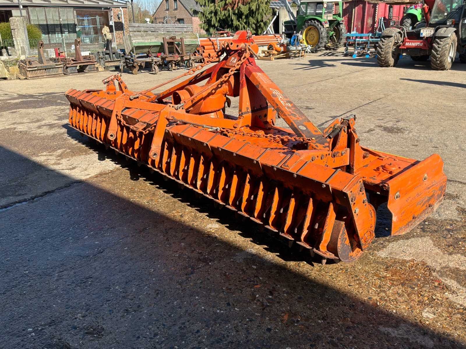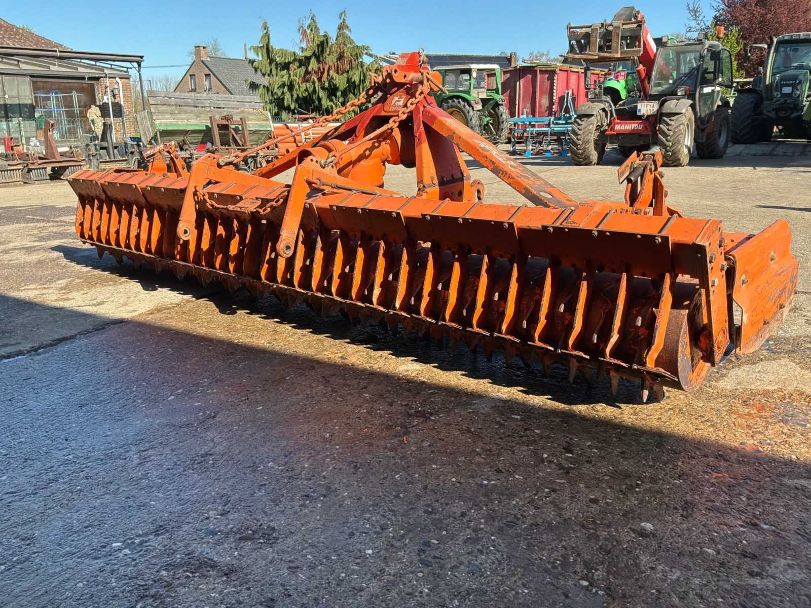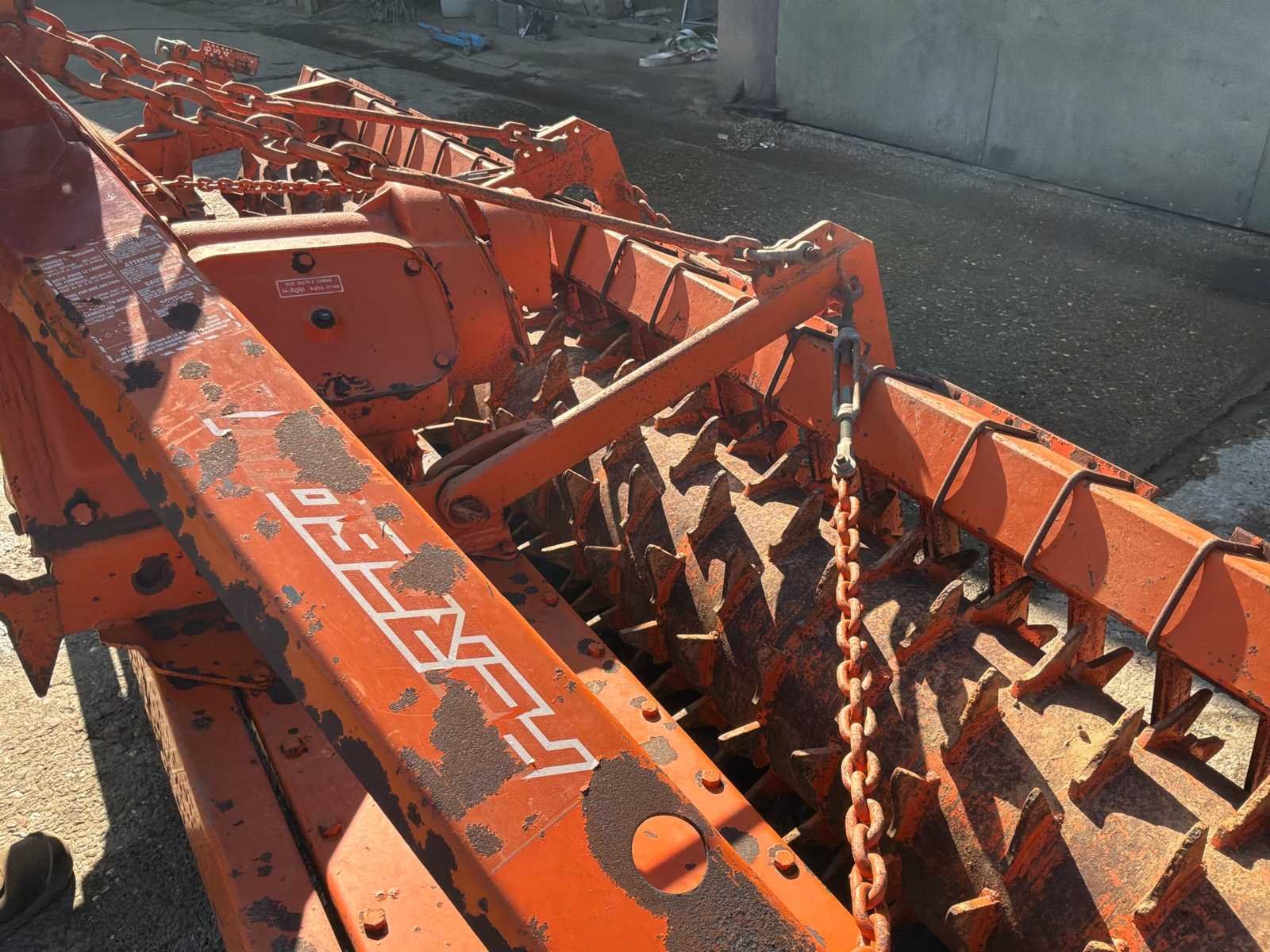 Feraboli merk roterende hef, werkbreedte ongeveer 4 meter. Robuuste en betrouwbare machine, ideaal voor: • Bodemvoorbereiding • Afbrokkelen na ploegen • Aanleg van zaaibedden Uitgerust met een achterwals voor optimale nivellering. 3-punts koppeling PTO-rit Massieve constructie (erkend Italiaans materiaal) Over het algemeen in goede staat, oké operation. Normale slijtage (lak en zichtbare gebruikstekenen), maar de machine is klaar om te werken. Merk: Feraboli Serienummer: 6088 Werkbreedte: 4000mm Eigen gewicht: 1200kg Totale afmeting L: 1800mm Totale afmeting Breedte: 4000mm Totale afmeting Hoogte: 1600mm