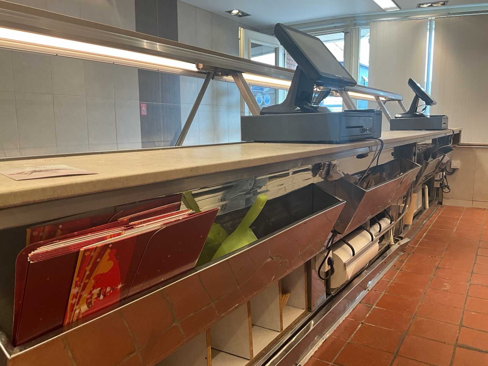 Deel 1 (groot): B - 125cm / L- 480cm / H - 128cm Deel 2 (klein) : B - 100cm / L- 126cm / H-113cm Zonder de kassasystemen!