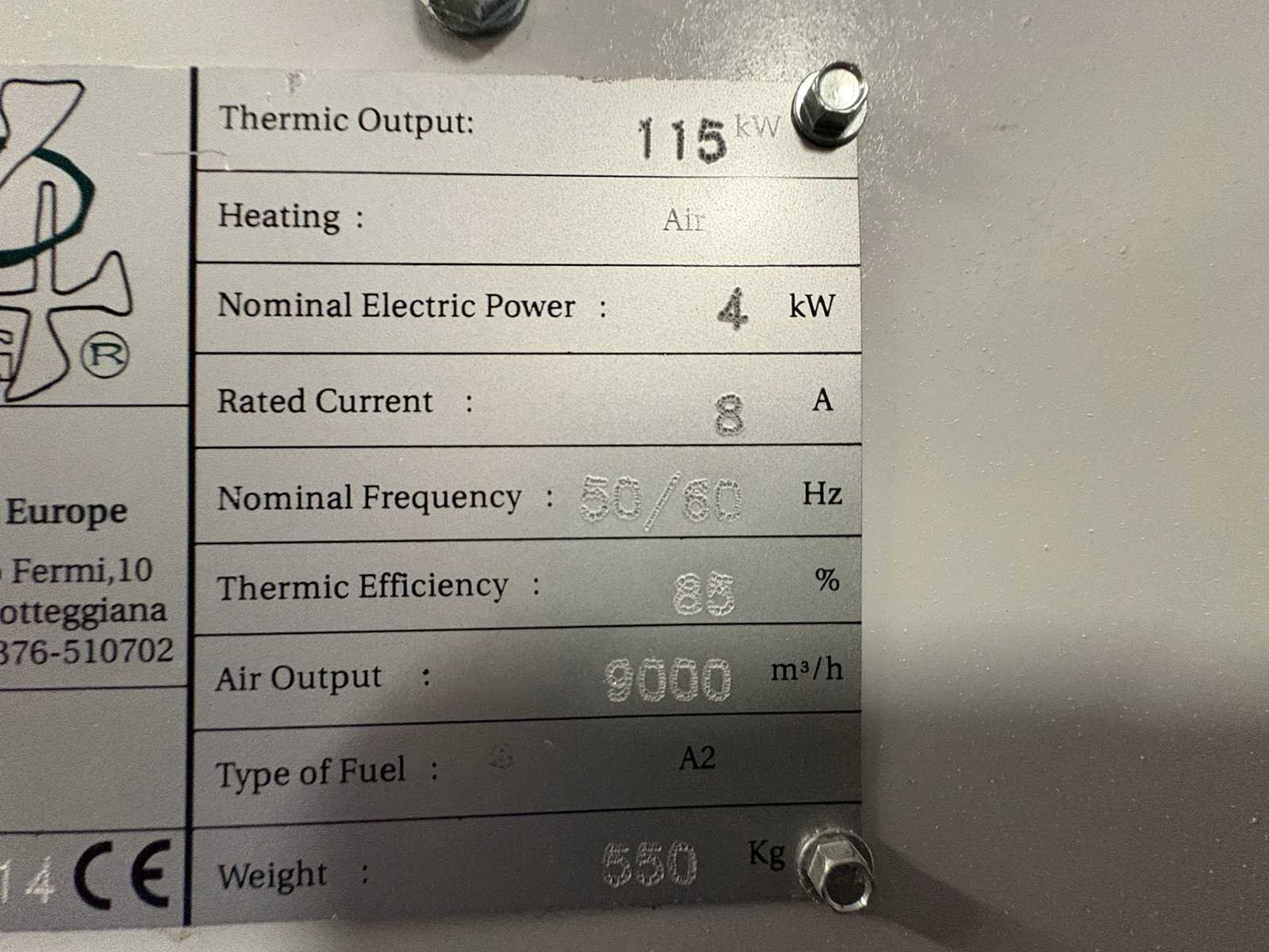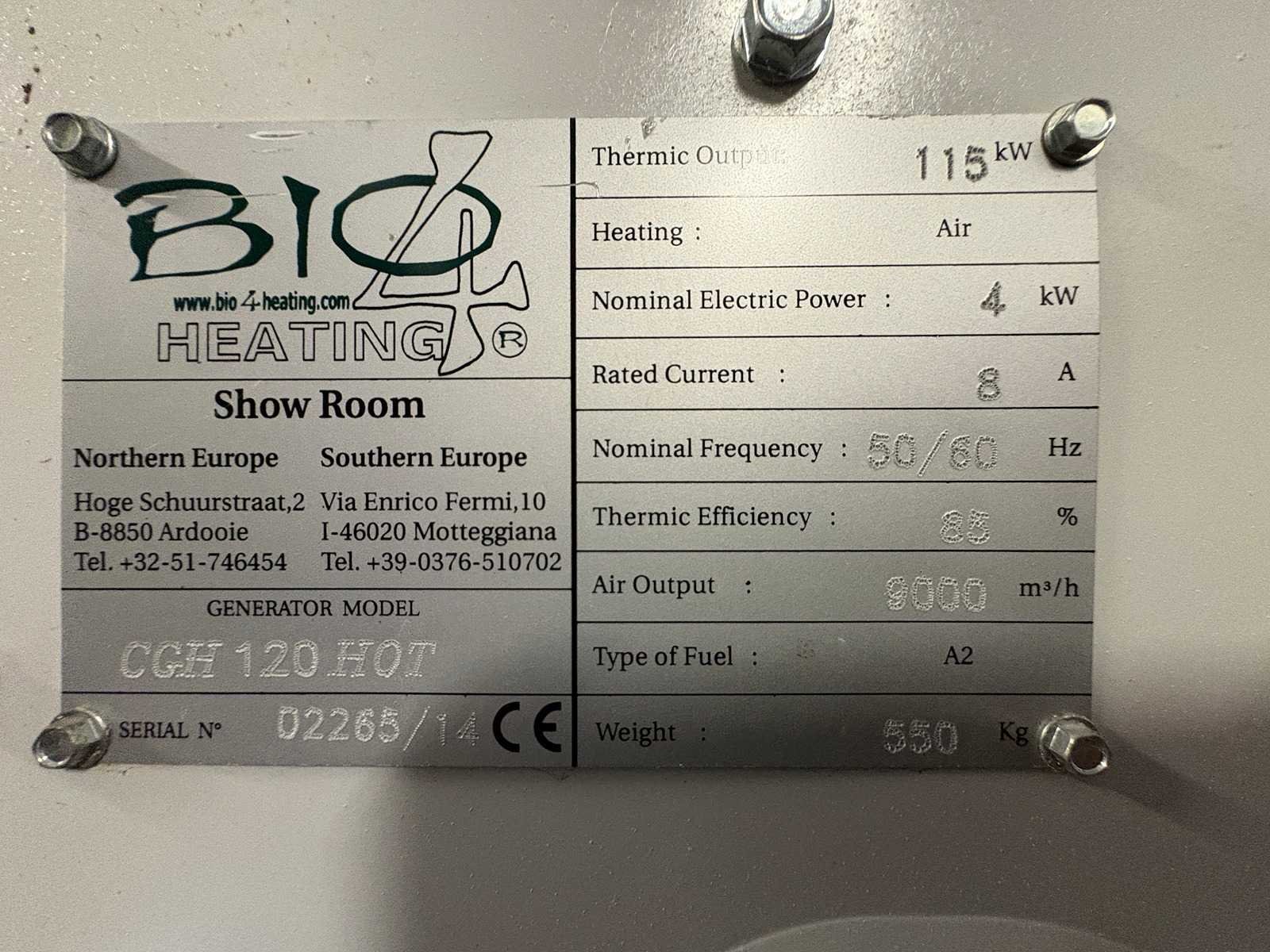 Grote allesbrander lucht kachel 9000 vierkante meter verwarmings opervlakte 115 kw in goede staat slechts 2 maanden gebruikt Merk: Bio 4 Serienummer: D226514 Eigen gewicht: 550kg