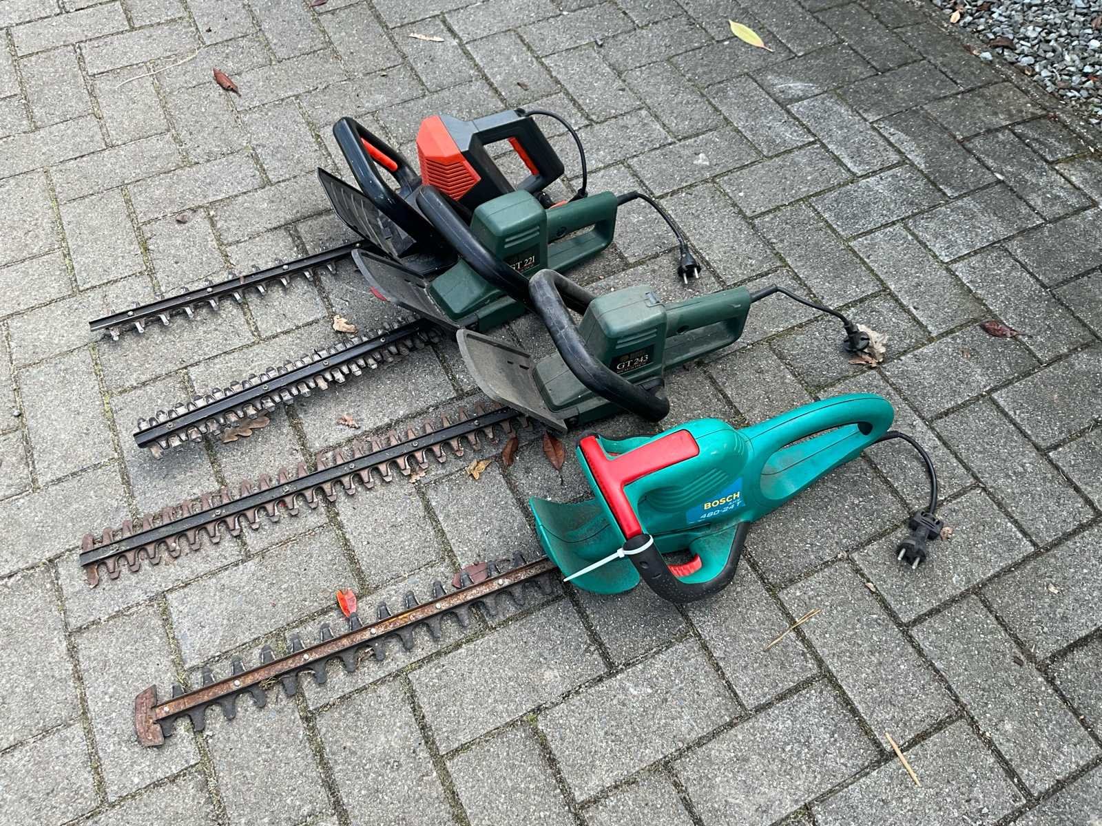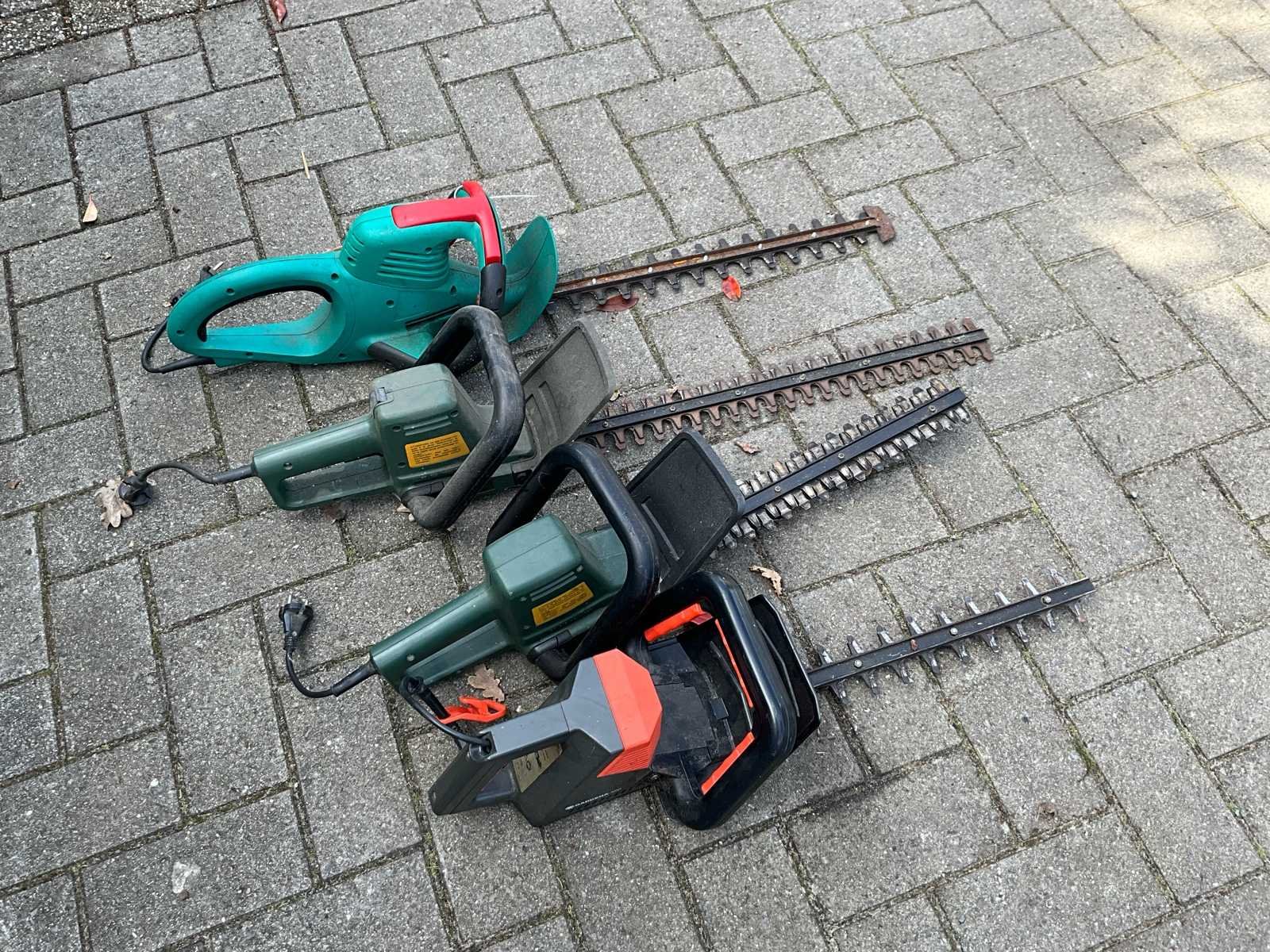 Partij van meerdere elektrische heggenscharen van bekende merken zoals Bosch, Black & Decker en Gardena. Geschikt voor particulier en licht professioneel gebruik in tuinonderhoud. Ideaal kavel voor handel, klusser of particulier die meerdere machines zoekt. Inhoud kavel 1x Bosch AHS 480-24 T 1x Black & Decker GT243 (60 cm) 1x Black & Decker GT221 (40 cm) 1x Gardena Type 400 - GETEST EN WERKEND Merk: Bosch, Black&Decker, Gardena