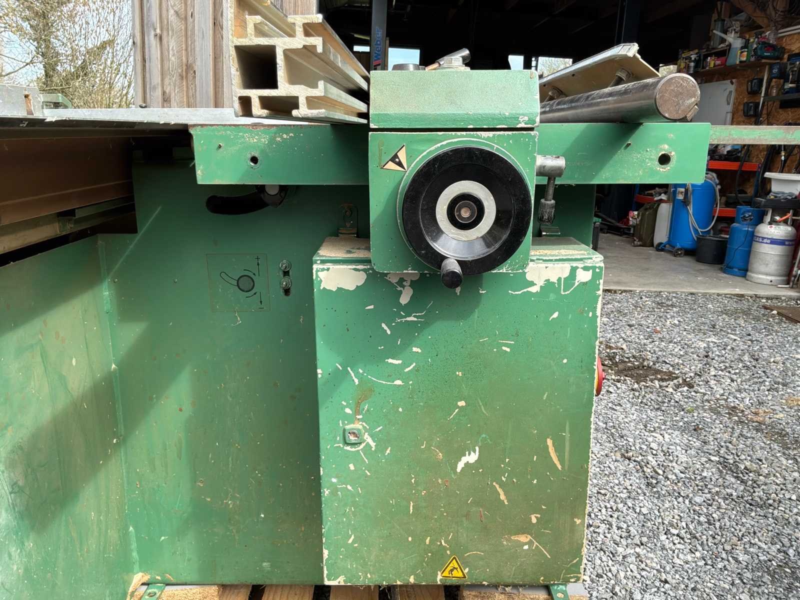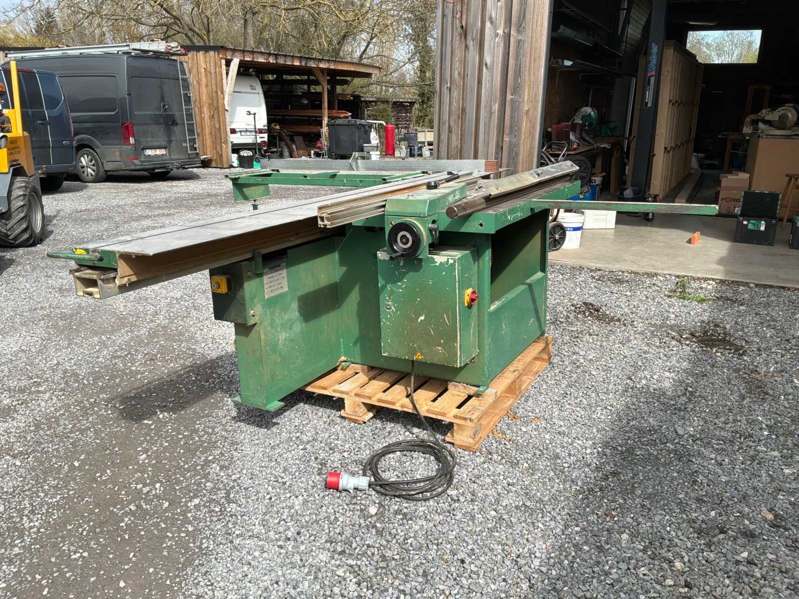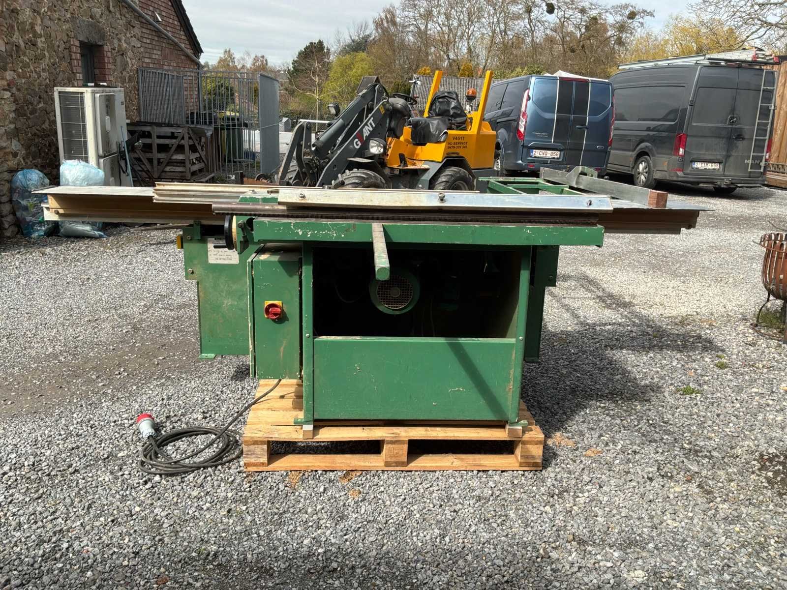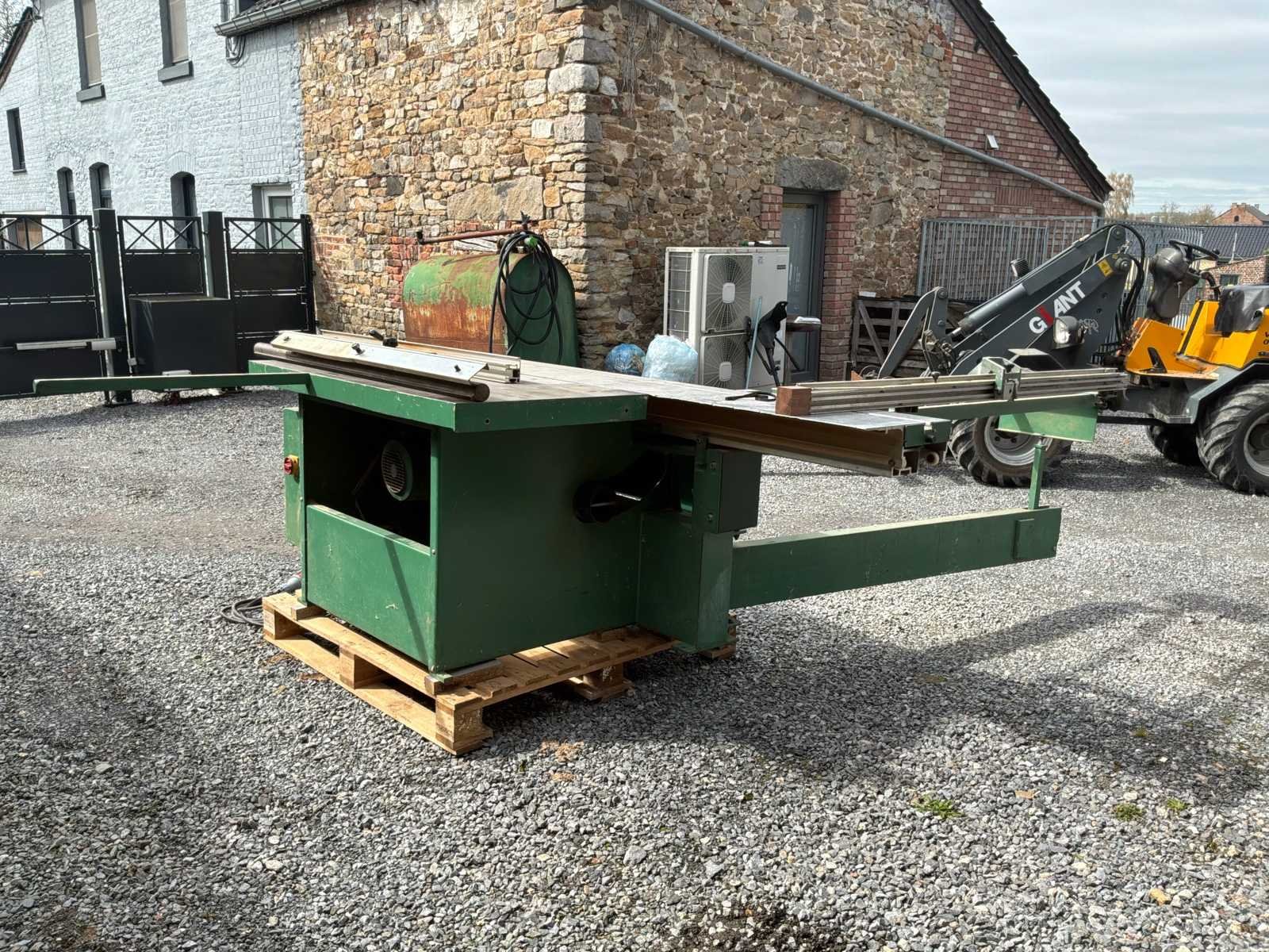 Chambon SF 286 professionele schuiftafelzaag werkt in goede staat. Robuuste en betrouwbare machine, ideaal voor timmerwerk, meubelmaken of houtwerkplaats. ✔️ Schuiftafel voor het snijden van panelen ✔️ Kantelblad (versteksnede) ✔️ Puntenmachine (voorgesneden voor melaminepanelen) ✔️ Meerdere toerentallen (3000 / 4000 / 5000 tpm) ✔️ Riphek en snijliniaal Merk: Chambon Type: SF 286 Zaagblad Ø: 300mm Zaaghoogte: 100mm Tafel afmeting l: 3000mm Tafel afmeting b: 1000mm Motorvermogen (kW): 5.5kW Aansluiting: 380V Machinegewicht: 900kg