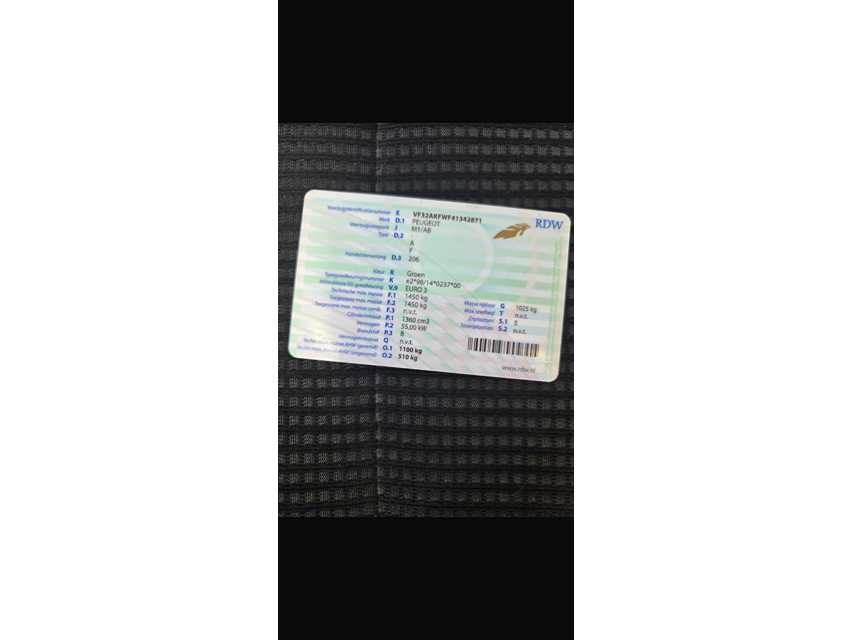 Nederlands kenteken dient overgeschreven te worden kosten koper of export papieren op naam 100 euro Kenteken: 53GKVB Merk: Peugeot Model: 206 Type: 1.4 Gentry Bouwjaar: 2001 Cilinderinhoud: 1360cc Vermogen (kW): 55kW Chassisnummer: PWHDH333566677 Laadvermogen: 0kg Datum eerste toelating: 2001-01-09 Datum eerste toelating (NL): 2001-01-09 APK vervaldatum: 2026-04-10 Vermogen (pk): 75hp Energielabel: C Aandrijving: FWD Aantal zitplaatsen: 5 Maximaal trekgewicht ongeremd: 510kg Maximaal trekgewicht geremd: 1100kg Kleur: groen Transmissie: Handgeschakeld Emissieklasse: 3 Aantal deuren: 4 Aantal sleutels: 1 Ledig gewicht: 925kg Bruto BPM (NL): 2812€ Rest BPM: 0€ Aantal cilinders: 4 Carrosserie: hatchback CO2-uitstoot NEDC: 149 Carfax Link: https://was.carfax.eu/v0/api/ccdid/5100016408/svc/201/vinreg/53GKVB/checksum/eyJhbGciOiJIUzI1NiIsInR5cCI6IkpXVCJ9.eyJleHAiOjE3NjEwMzEyMDd9.g97tkZMautxovzotcH2p_8dRMIItyuEAhcHOL1p11O8 Start en rijdt: nee startinformatie : nee Self drive export possible : true