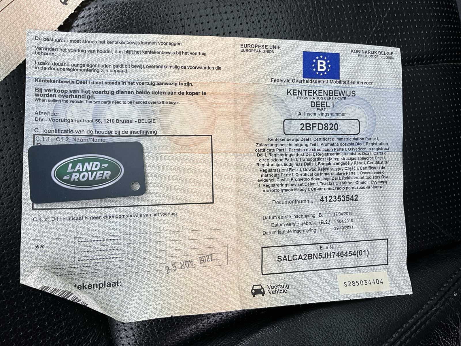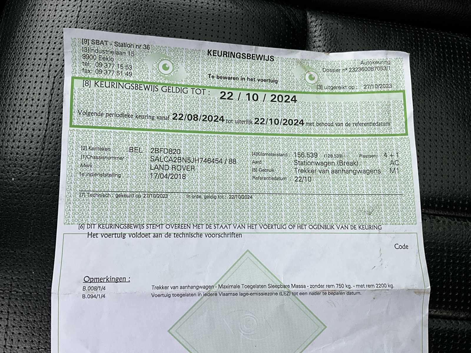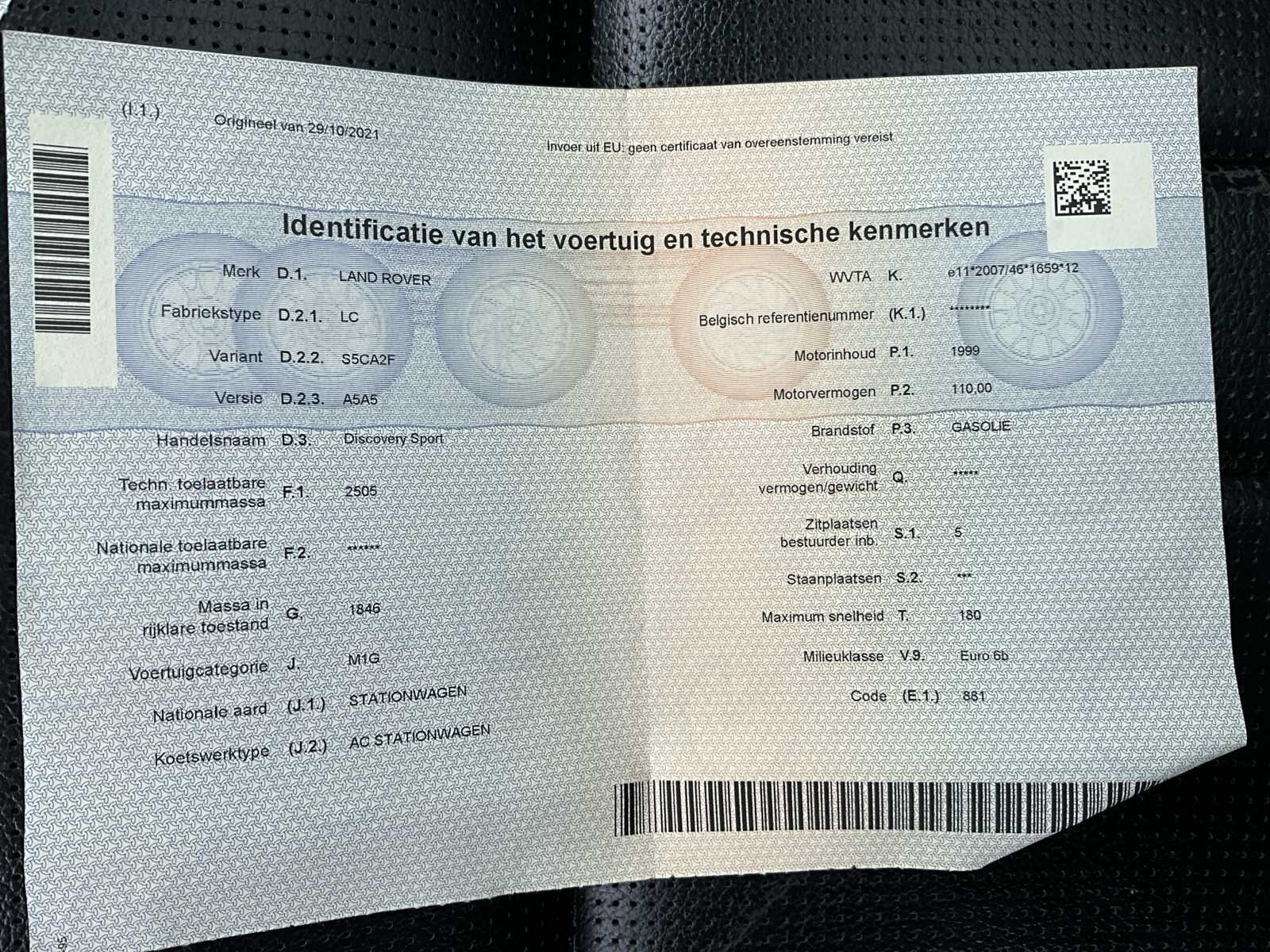 Merk: Land Rover Model: Discovery sport Bouwjaar: 2018 Afgelezen kilometerstand: 169766km Cilinderinhoud: 1999cc Vermogen (kW): 110kW Brandstof: diesel Chassisnummer: SALCA2BN5JH746454 Datum eerste toelating: 17/04/2018 Transmissie: Automaat Emissieklasse: Euro 6b Aantal sleutels: 2 Nationaliteit documenten: Belgisch Start en rijdt: Ja startinformatie : Start en rijdt Inschrijvingsbewijs - deel 1 : Aanwezig Inschrijvingsbewijs - deel 2: Aanwezig