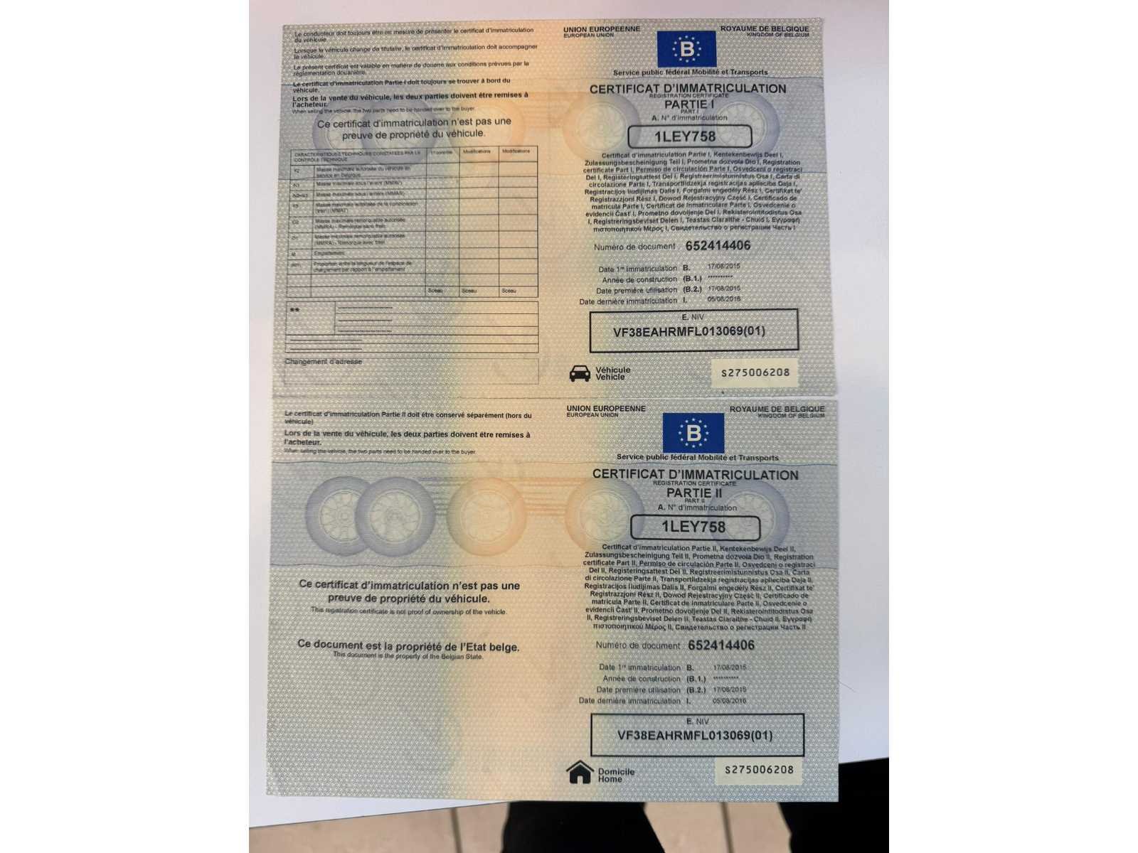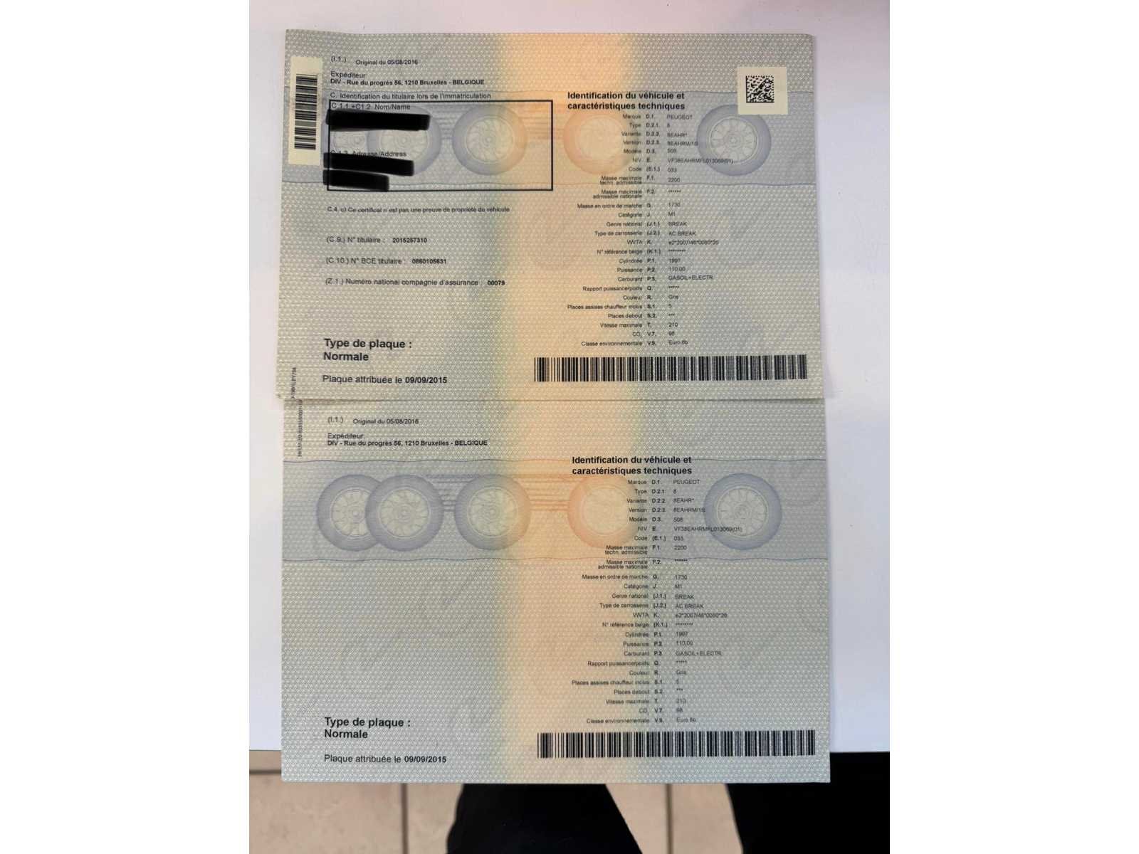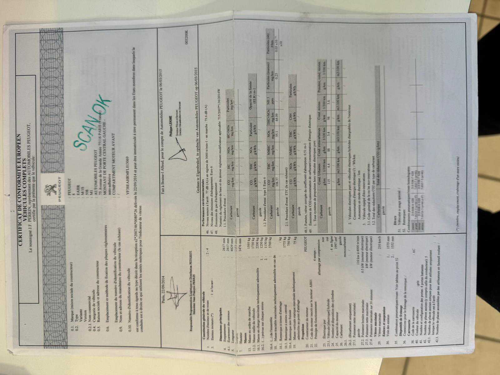 Merk: Peugeot Model: 508 Bouwjaar: 2015 Afgelezen kilometerstand: 215826km Cilinderinhoud: 1997cc Vermogen (kW): 110kW Brandstof: hybride (elektrisch+diesel) Chassisnummer: VF38EAHRMFL013069 Datum eerste toelating: 17/08/2015 Nationaliteit documenten: Belgisch Start en rijdt: Ja startinformatie : Start en rijdt Inschrijvingsbewijs - deel 1 : Aanwezig Inschrijvingsbewijs - deel 2: Aanwezig