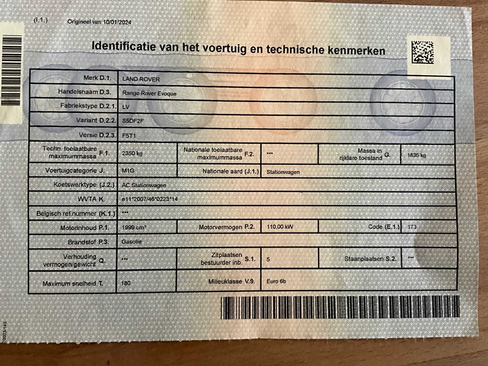 2000km terug groen gekeurd. Merk: Range Rover Model: Evoque Bouwjaar: 2016 Afgelezen kilometerstand: 177727km Cilinderinhoud: 1999cc Vermogen (kW): 110kW Brandstof: diesel Chassisnummer: SALVA2BN3GH1000038 Datum eerste toelating: 29/01/2016 APK vervaldatum: 02/01/2027 Transmissie: Automaat Nationaliteit documenten: Belgisch Start en rijdt: Ja Keuringsrapport geldig tot: 02/01/2027 startinformatie : Start en rijdt Vavato voert geen technische keuring uit.: true Xenon verlichting: true LED-koplampen: true Leder bekleed: true Inschrijvingsbewijs - deel 1 : Aanwezig Inschrijvingsbewijs - deel 2: Aanwezig