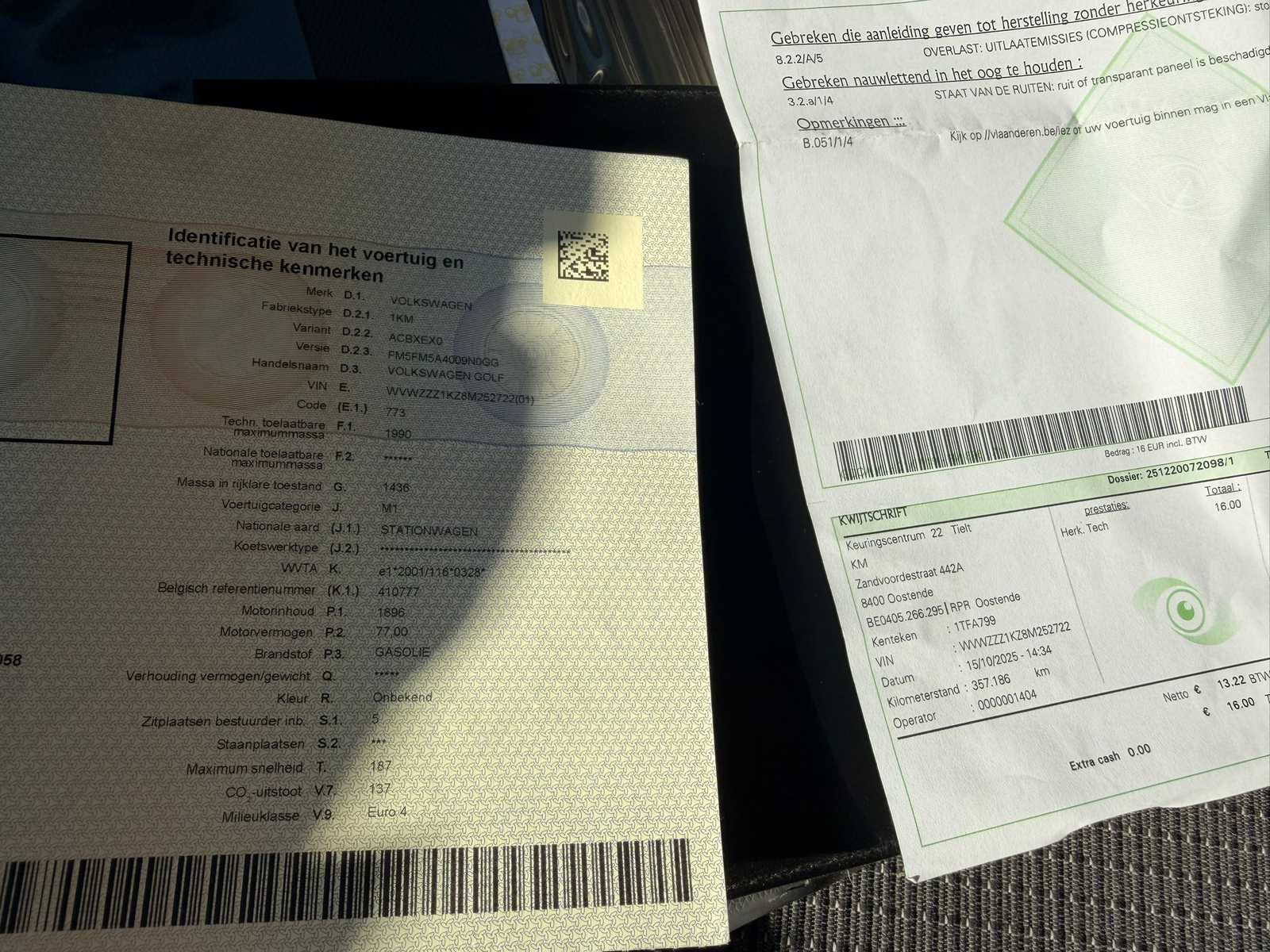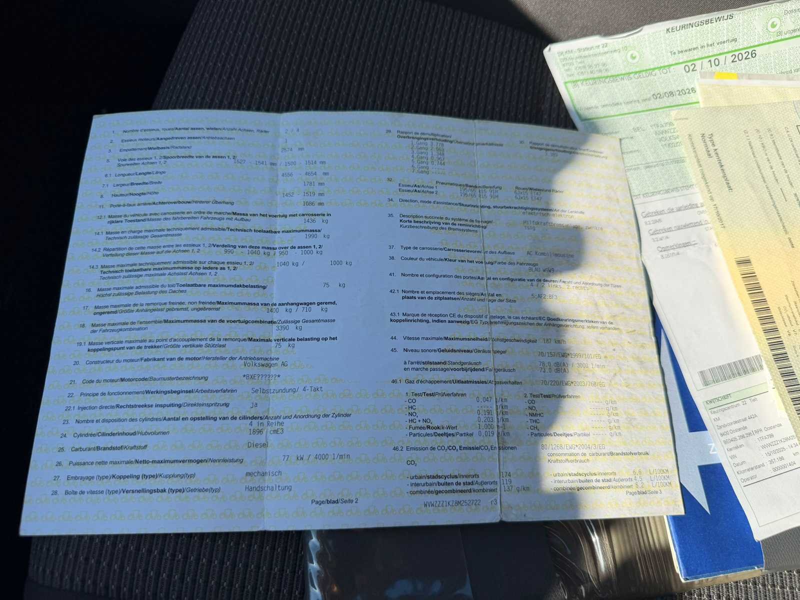 Merk: Volkswagen Model: Jetta Bouwjaar: 2009 Afgelezen kilometerstand: 368623km Cilinderinhoud: 1896cc Vermogen (kW): 77kW Brandstof: diesel Chassisnummer: WVWZZZ1KZ8M252722 Datum eerste toelating: 11/02/2009 Nationaliteit documenten: Belgisch Start en rijdt: Ja startinformatie : Start en rijdt Inschrijvingsbewijs - deel 1 : Aanwezig Inschrijvingsbewijs - deel 2: Niet aanwezig